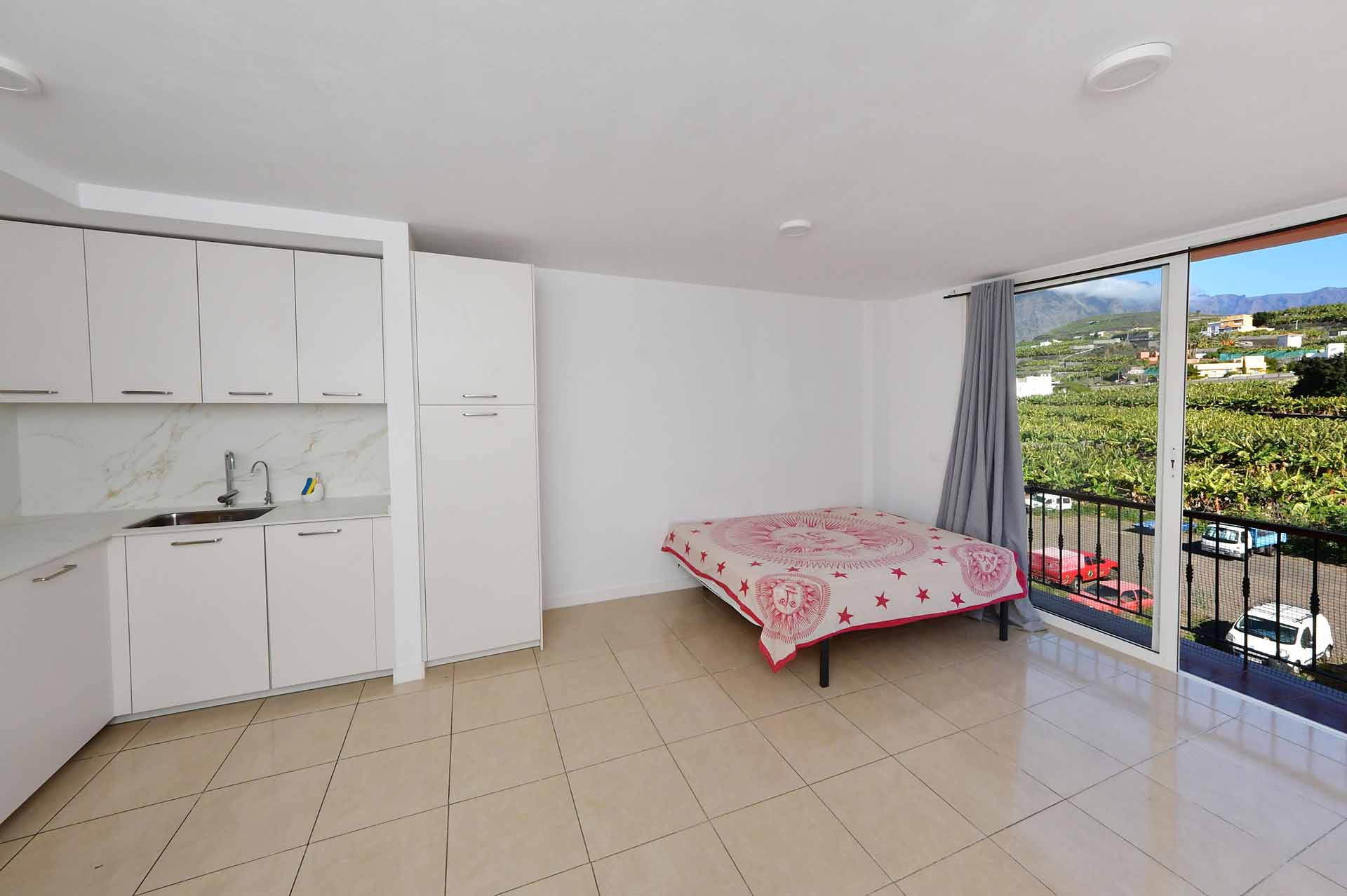 The newly renovated flat is located on the third (top) floor of a residential building in Tazacorte Pueblo in a quiet residential area, slightly above the town centre.