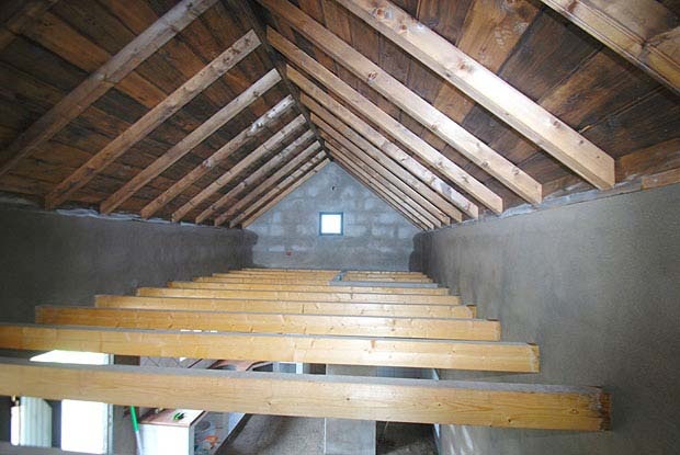 Das Haus beherbergt ein großzügiges Studio mit Kochbereich und Bad im Erdgeschoss und bietet ein bis zwei Schlafzimmer im Obergeschoss. Der Rohbau ist abgeschlossen, den Endausbau würde der Eigentümer noch nach den Wünschen eines Kaufinteressenten fertig stellen.