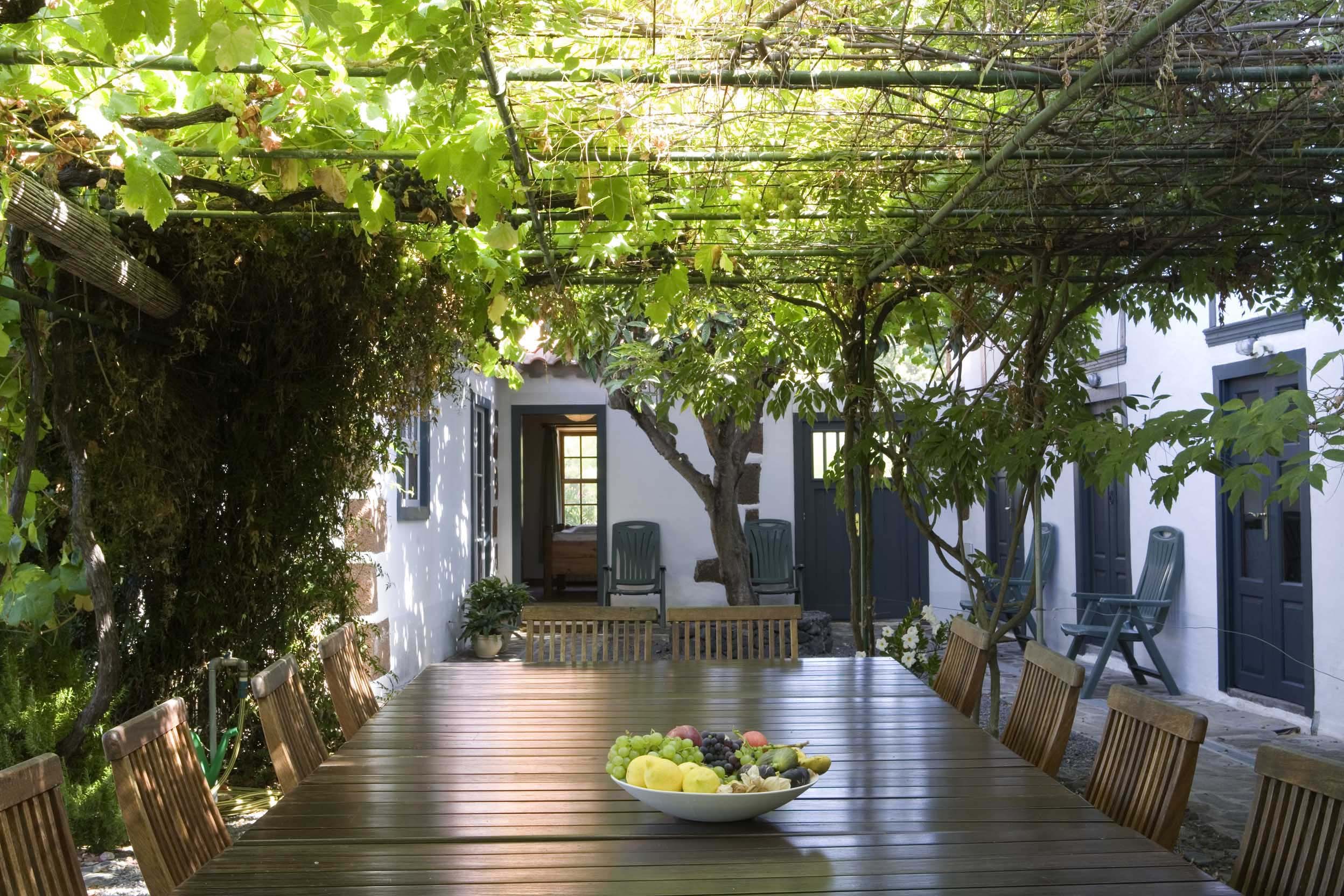Die Terrassen der ursprünglichen Mandelfarm wurden restauriert und neu bepflanzt. Außer Mandelbäumen finden sich nun Zitrusfrüchte, Äpfel, Birnen, Aprikosen, Pfirsiche, Pflaumen, Feigen, Kaki, Granatäpfel, Mispeln, Trauben, Kaktusfeigen und einiges mehr.