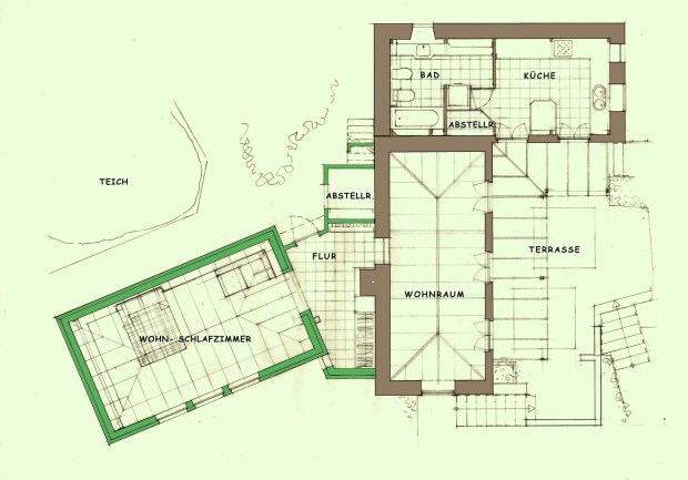 Das Wohnhaus (112 m² Grundfläche) ist mit zwei großen Räumen, Badezimmer und Küche wie ein L um die teilweise überdachte Terrasse geformt. Etwas unterhalb vom Wohnhaus liegt der Pajero mit Werkstatt (33,8 m² Grundfläche) und einem weiteren individuell nutzbaren Raum. Alle Räume sind äußerst liebevoll gestaltet und vermitteln viel kanarischen Charme. Hinter dem Haus am Aljibe (Wassertank) befindet sich die Sauna mit Vorraum.