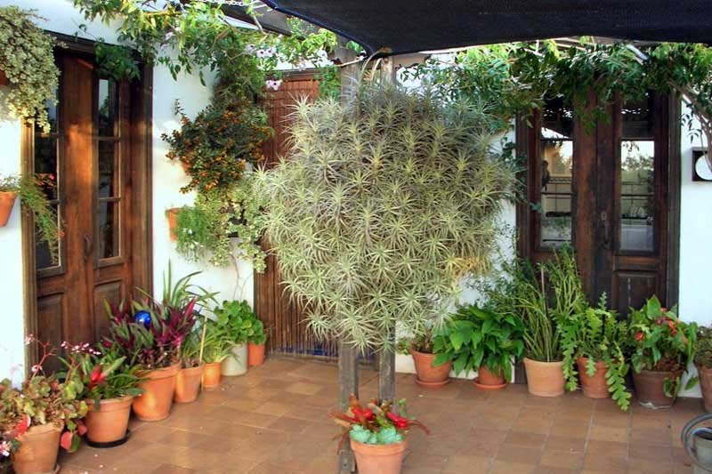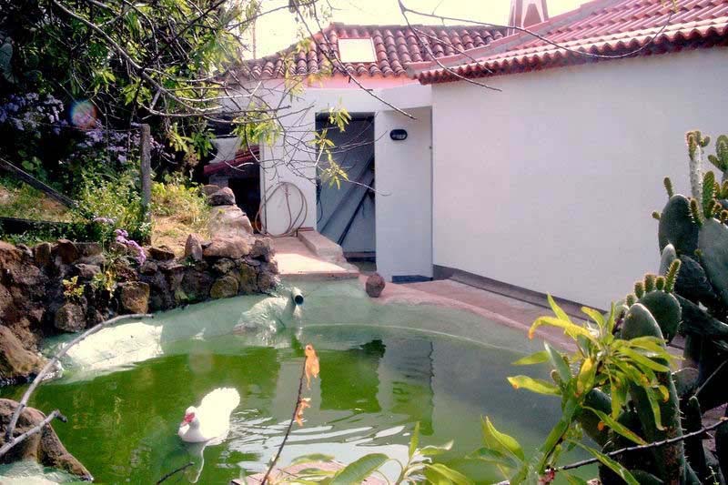 Der größte Teil des Grundstücks ist eingezäunt, was ideale Voraussetzungen für Tierhaltung bietet. Auf dem vollständig terrassierten Gelände gibt es zusätzlich ein Hühnergehege mit Hühnerstall und einen Teich mit Enten. Eine beeindruckende Anzahl von Fruchtbäumen (unter anderem Nispero, Mandarine, Olive, Orange, Zitrone, Feige, Pflaume, Birne) und einheimischen Pflanzen wie Dragos, Mandelbäumen oder Pfefferbäumen bietet idyllische Pflanzenvielfalt, welche ausschließlich ökologisch gepflegt wurde.