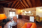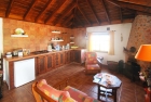 Beide Häuser verfügen über je eine sehr gemütliche Wohnküche mit Kamin, ein Bad und ein Schlafzimmer mit belüfteten Einbauschränken. Die Räume strahlen durch die hohen, original kanarischen Holzdachstühle wohlige Gemütlichkeit aus. Zwischen den Häusern befindet sich ein Lagerraum, der später als Flur genutzt werden kann.