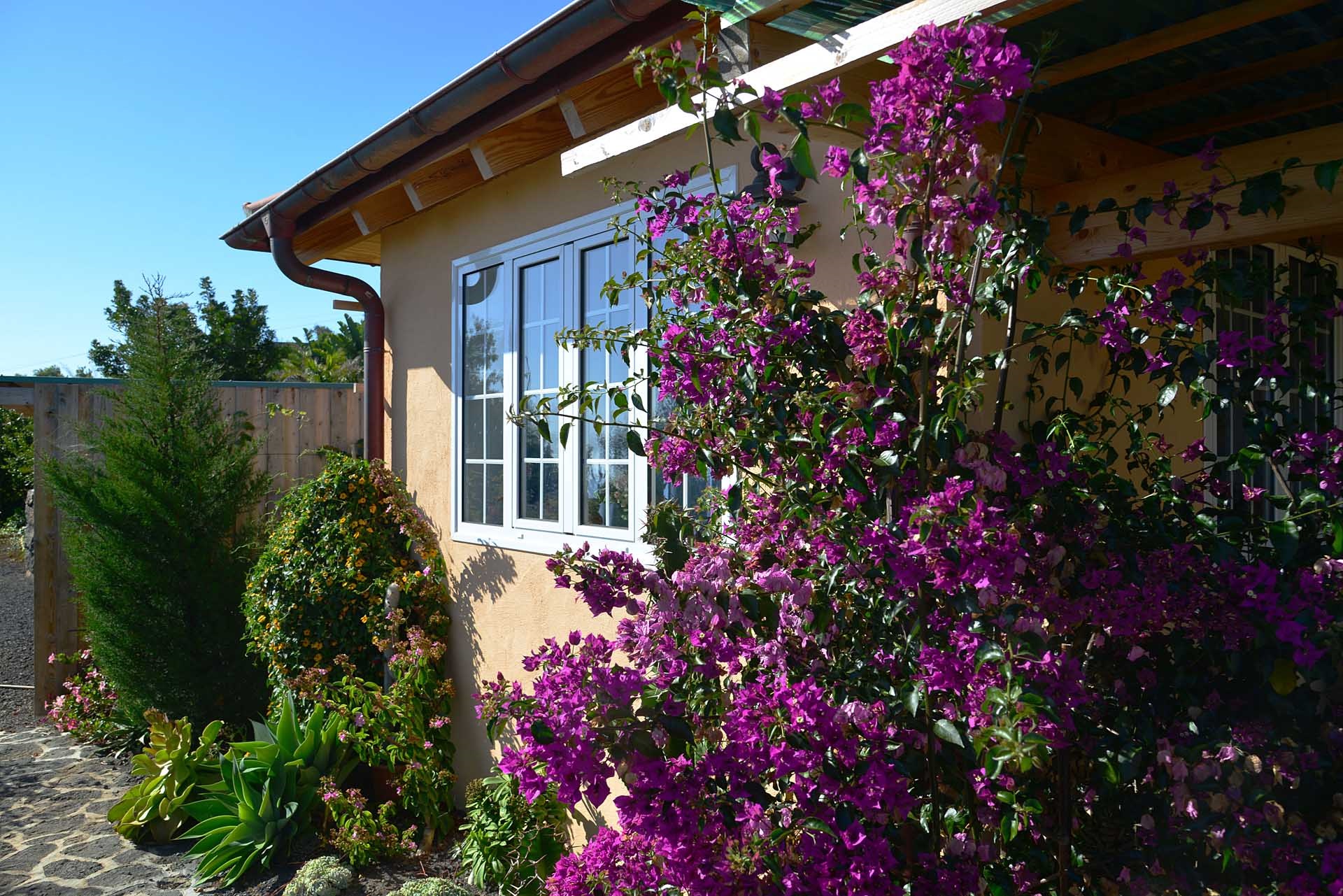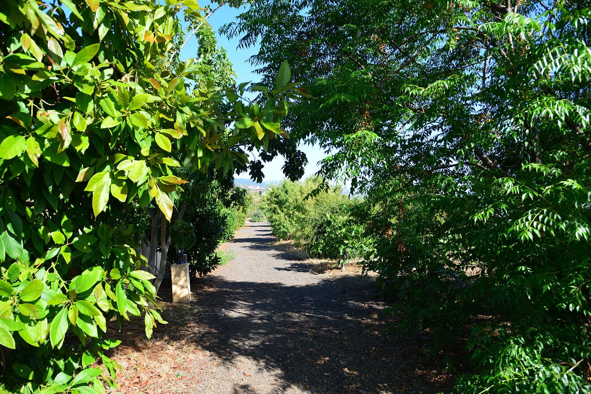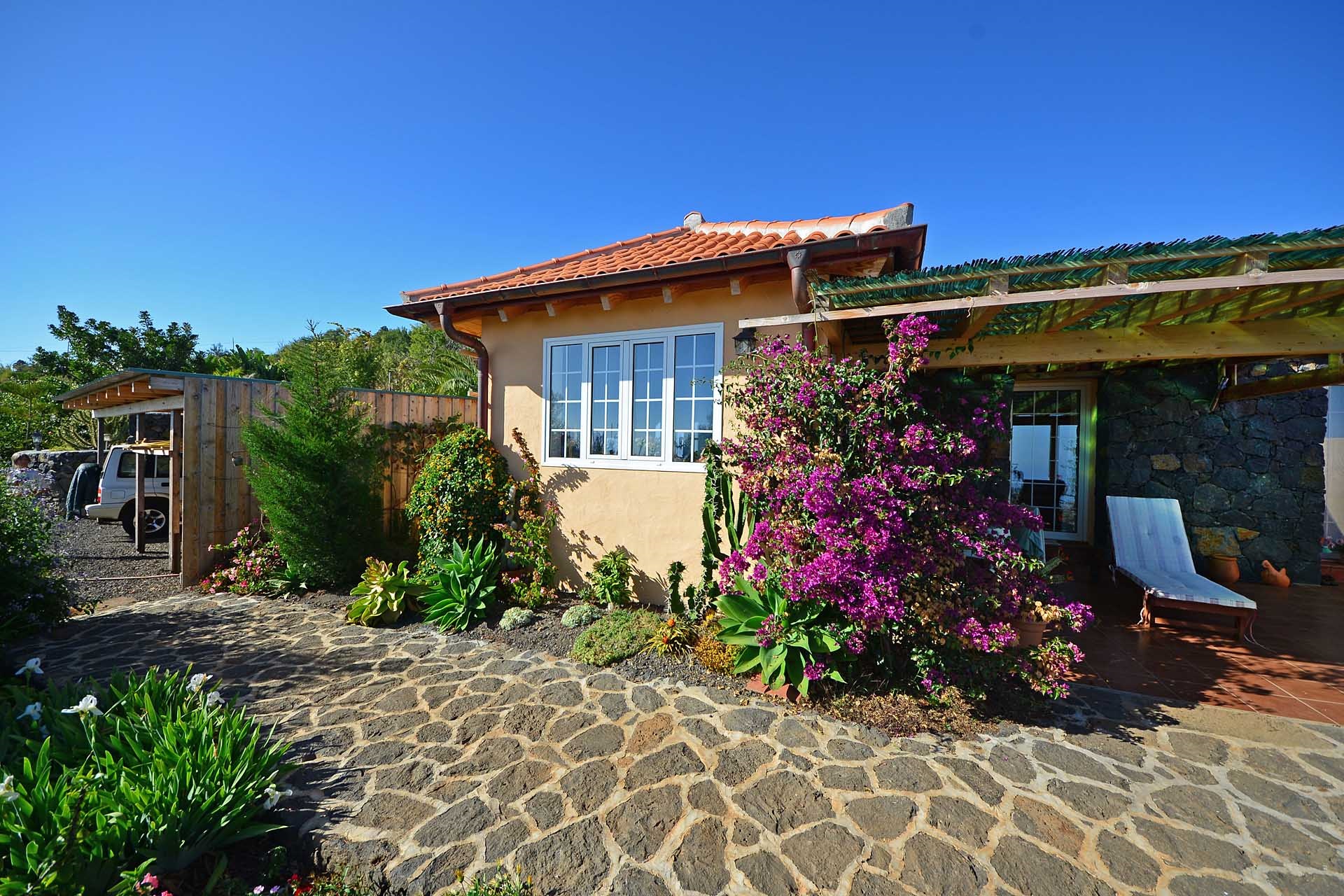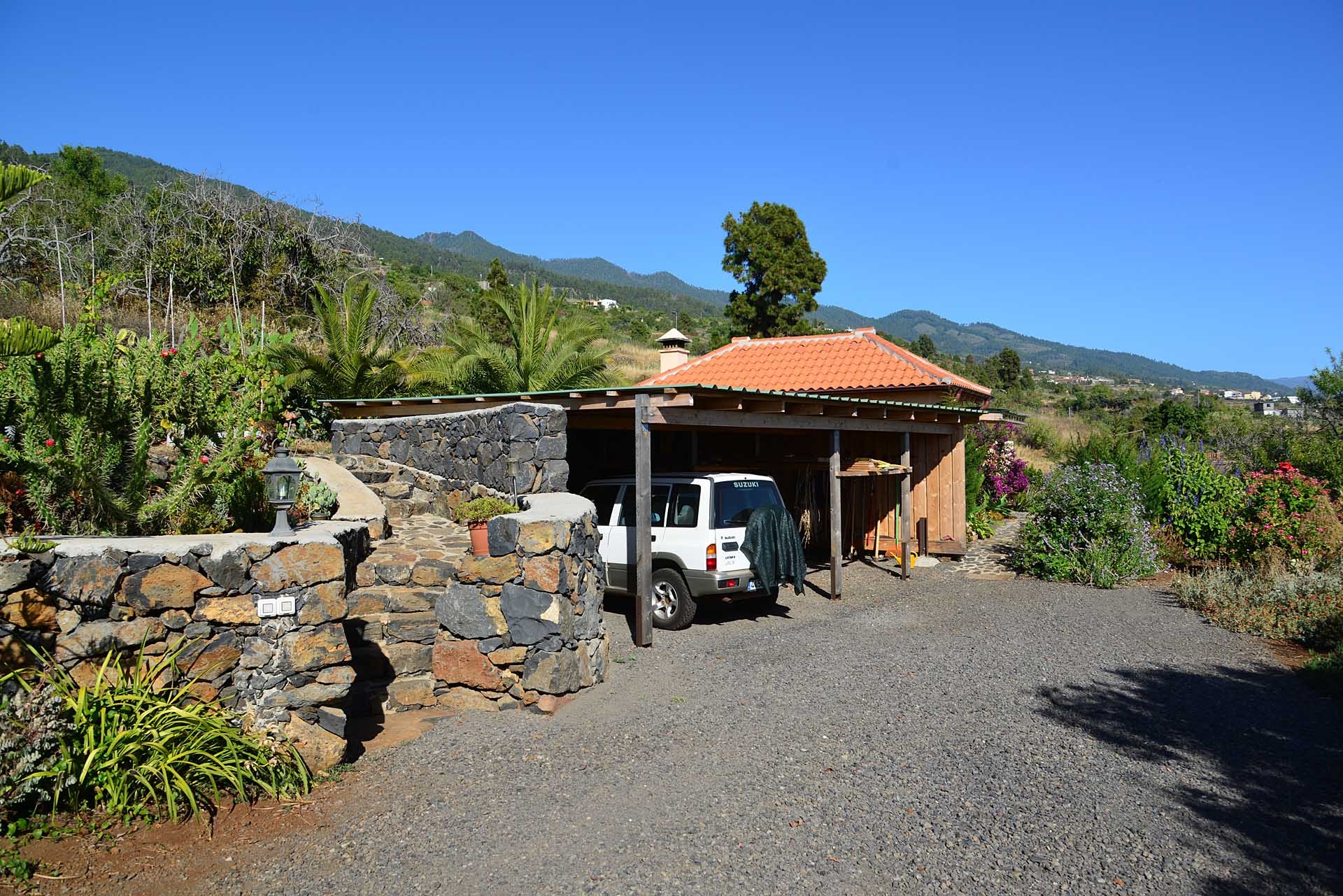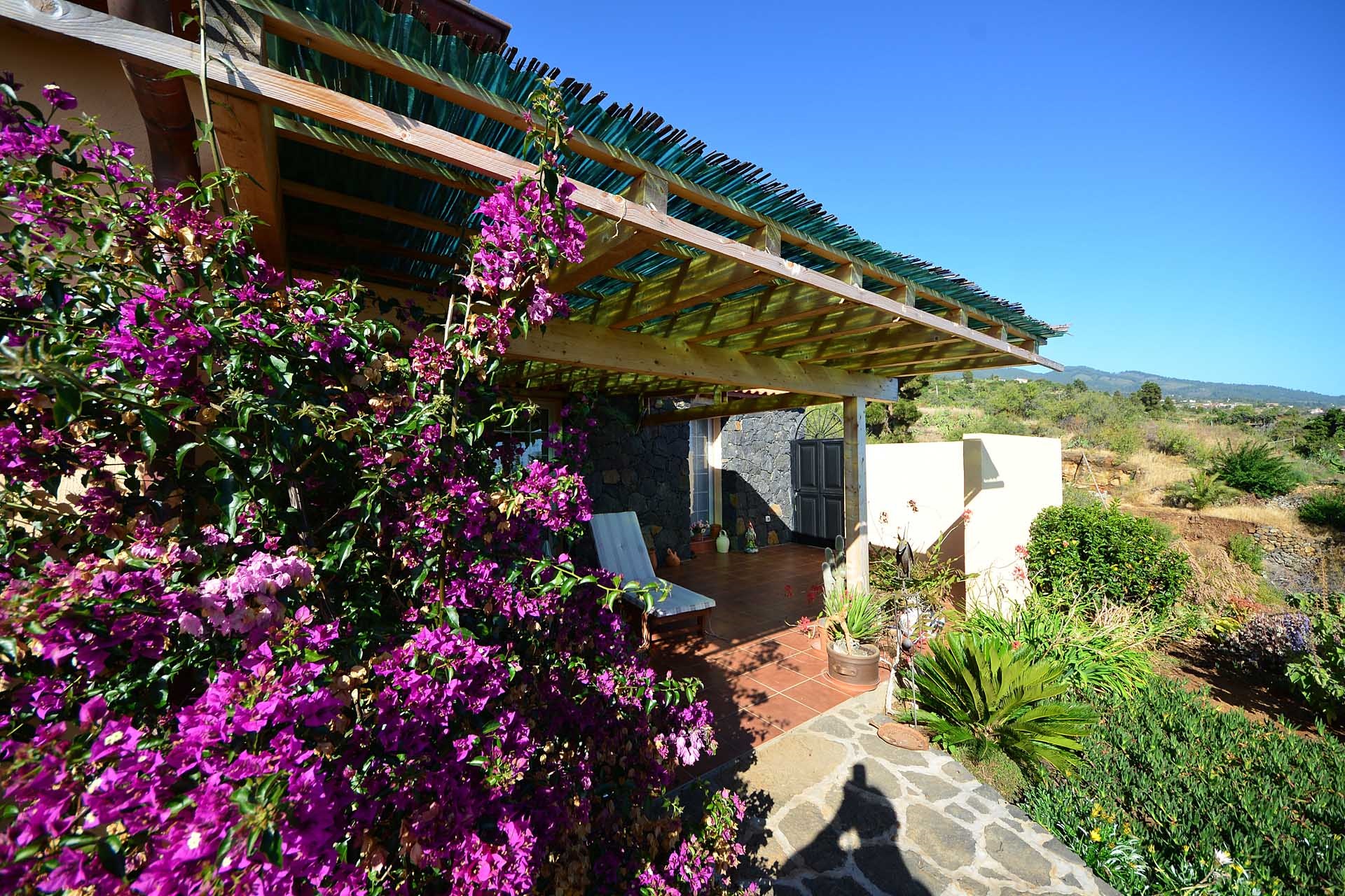 Das Grundstück lässt das Herz eines jeden Gartenfreundes höher schlagen: Der Garten wurde auf wenigen, langgestreckten und ebenen Terrassen angelegt, so dass er einfach zu bewirtschaften ist und von überall einen herrlichen Blick auf den Atlantik bietet. Gehen Sie in ihrem eigenen Garten spazieren, verweilen Sie zwischen subtropischen Obstbäumen, Palmen und botanischen Raritäten aus aller Welt und genießen Sie die Aussicht auf die Insel und das Meer. Der Garten wurde von einem deutschen Landwirt vorbildlich kultiviert und der Boden mit viel Humus besonders fruchtbar gemacht. Für Gemüse und Erdbeeren wurde ein Bereich rundum mit halbdurchlässigem speziellem Beschattungsgewebe gegen allzu harte Sonneneinstrahlung und Fressfeinde wie Amseln, Eidechsen und Kaninchen geschützt. Selbstverständlich wurde und wird er ausschließlich ökologisch bewirtschaftet. Wer möchte, kann sich von diesem Grundstück gut selbst versorgen.