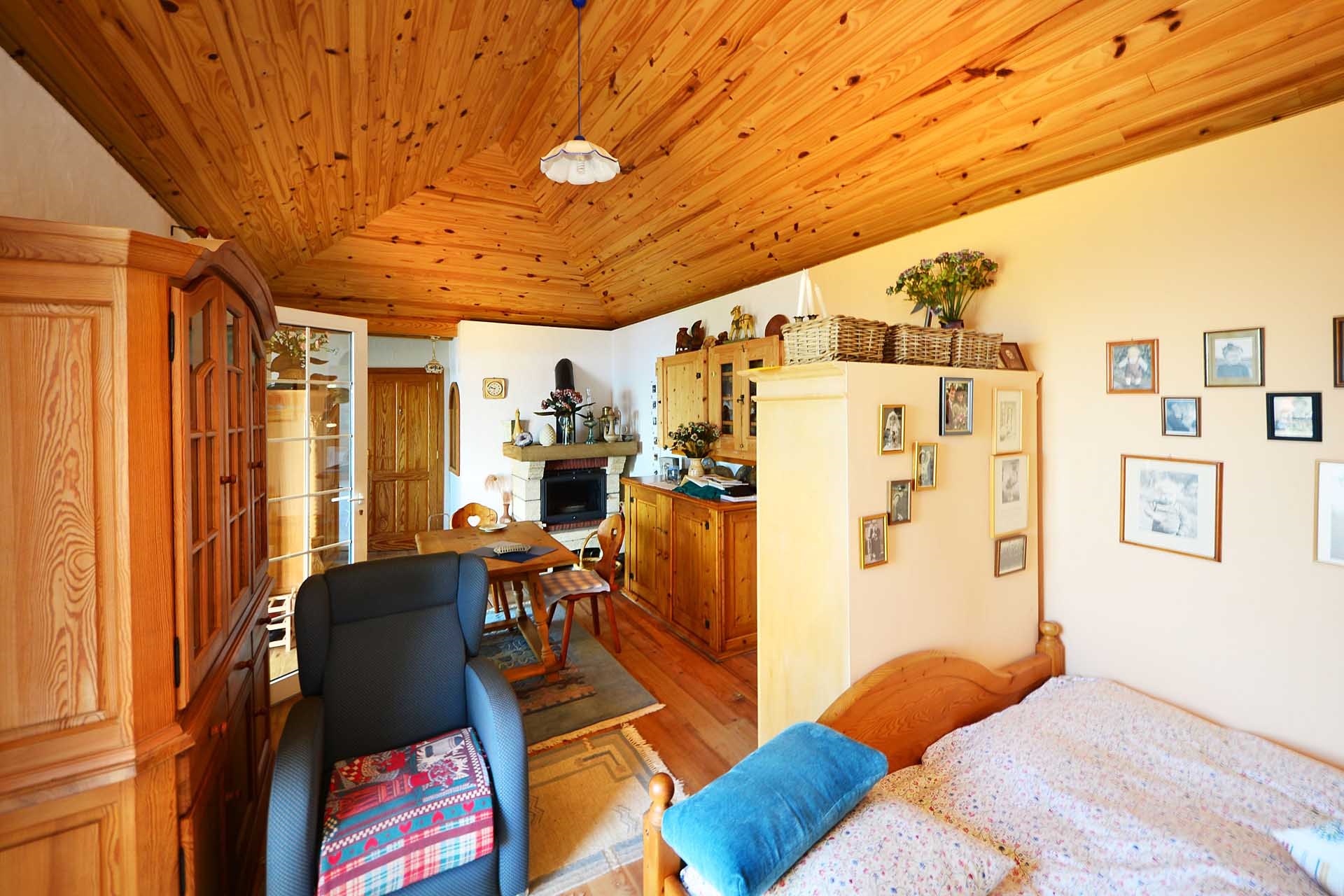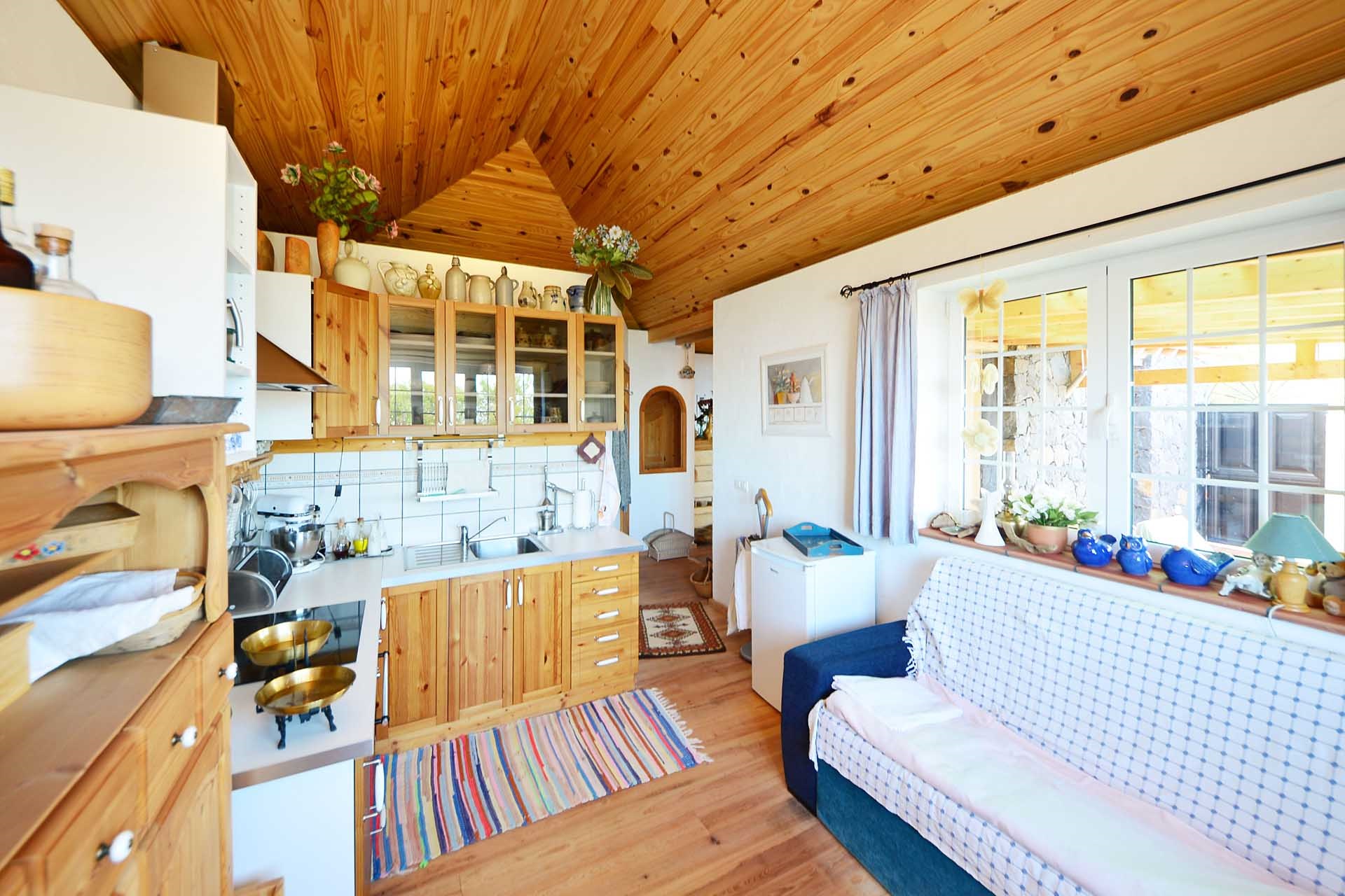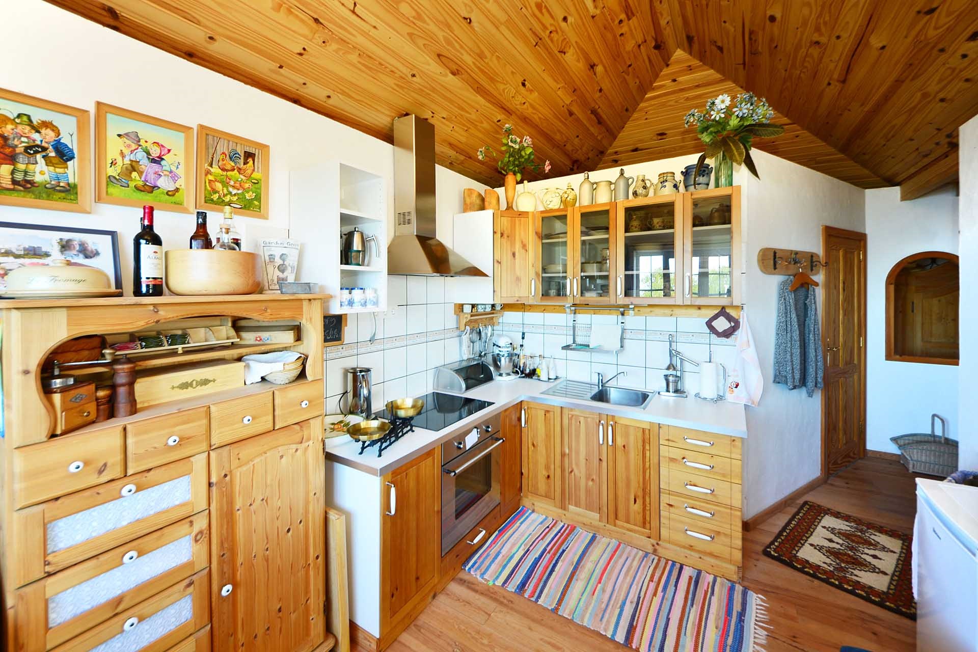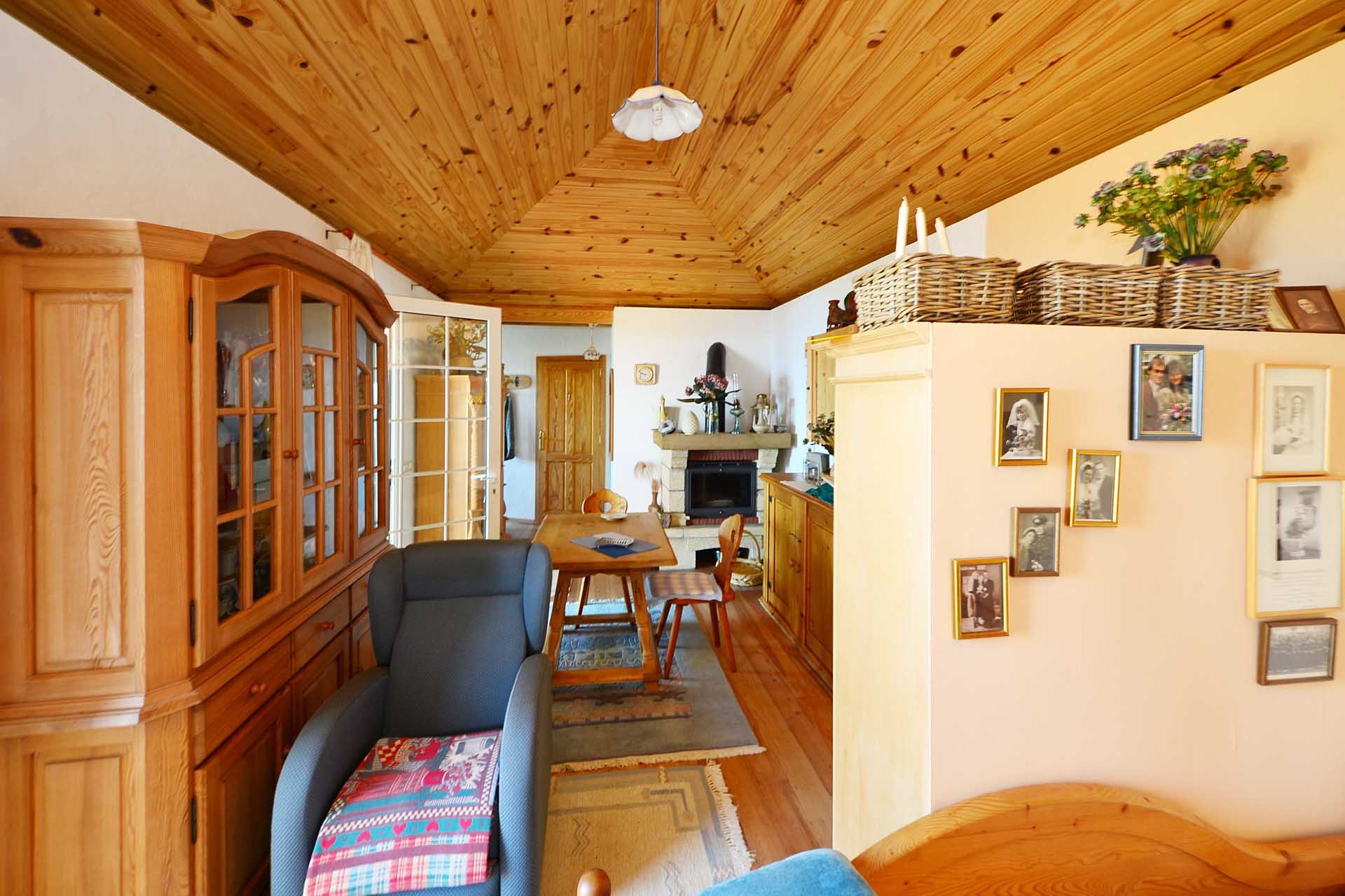 Die Kanarischen Dachstühle wurden mit Sichtholzverkleidung ausgebildet, der Fußboden in Küche und Wohnzimmer mit Massivholzboden belegt.