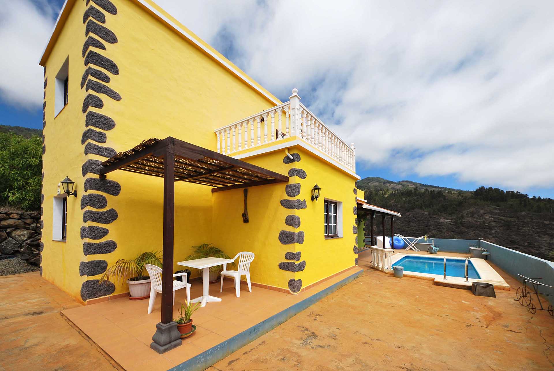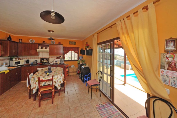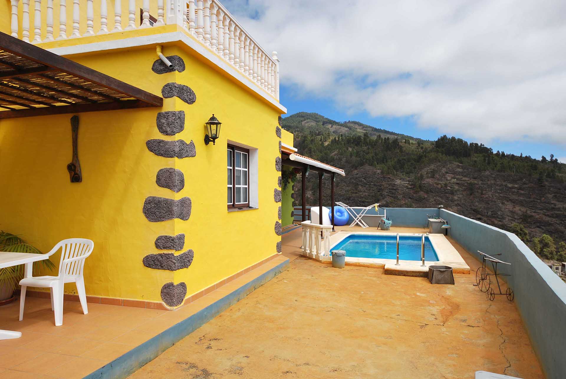 Das erst in 2007 neu gebaute Wohnhaus mit drei Schlafzimmern, zwei Bädern, Wohnküche, Speisekammer, Werkstatt und Pool befindet sich oberhalb des Ortes Tijarafe in sehr ruhiger Lage.