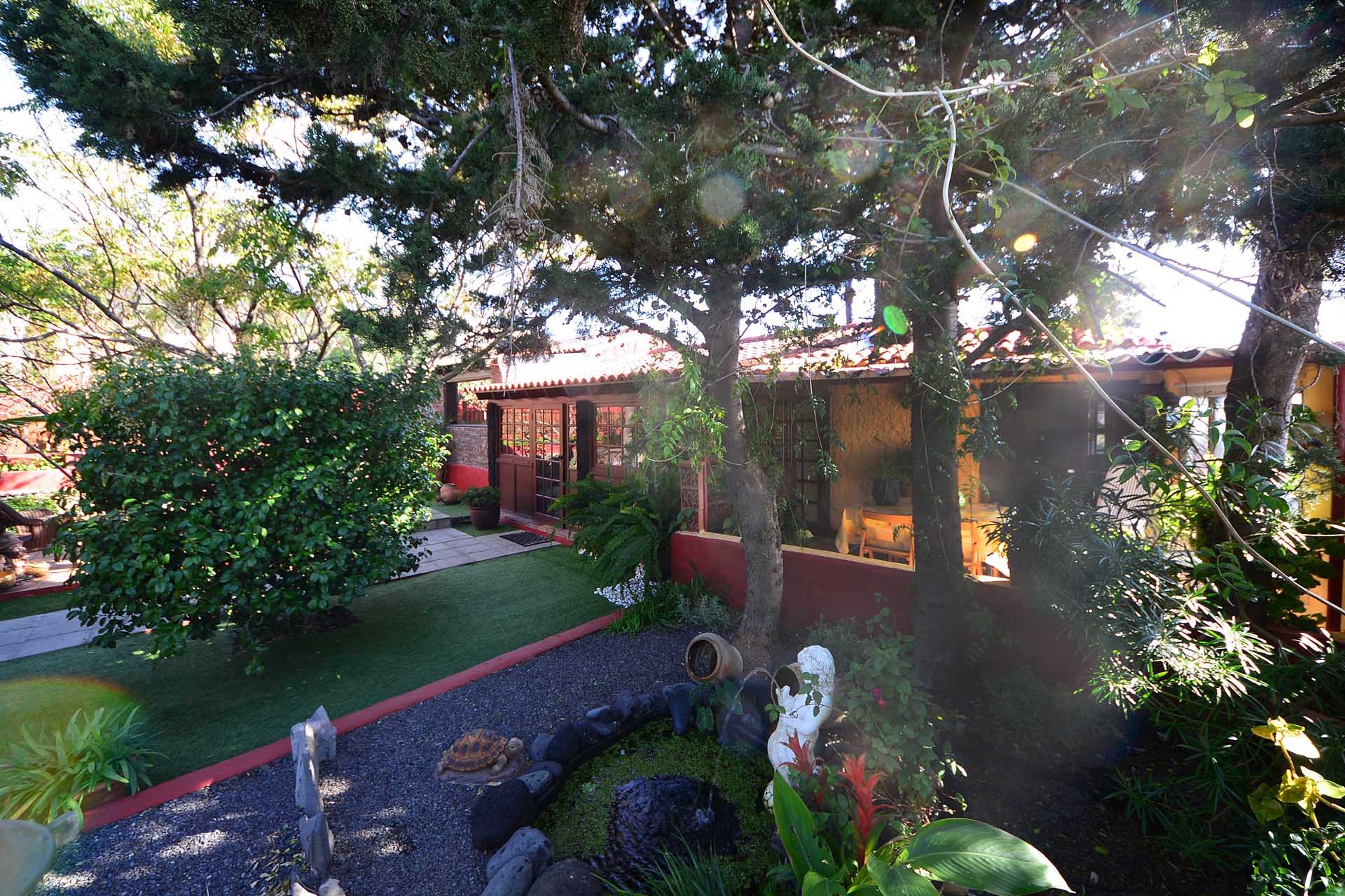 Der Garten ist schön angelegt und beherbergt neben Sukkulenten eine befestigte Sonnenterrasse.