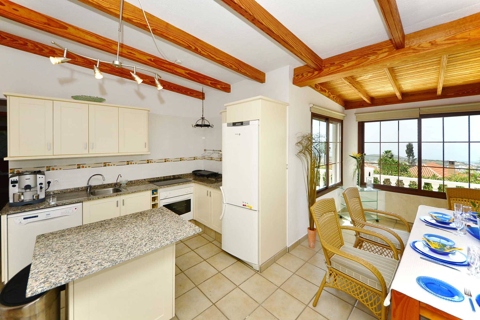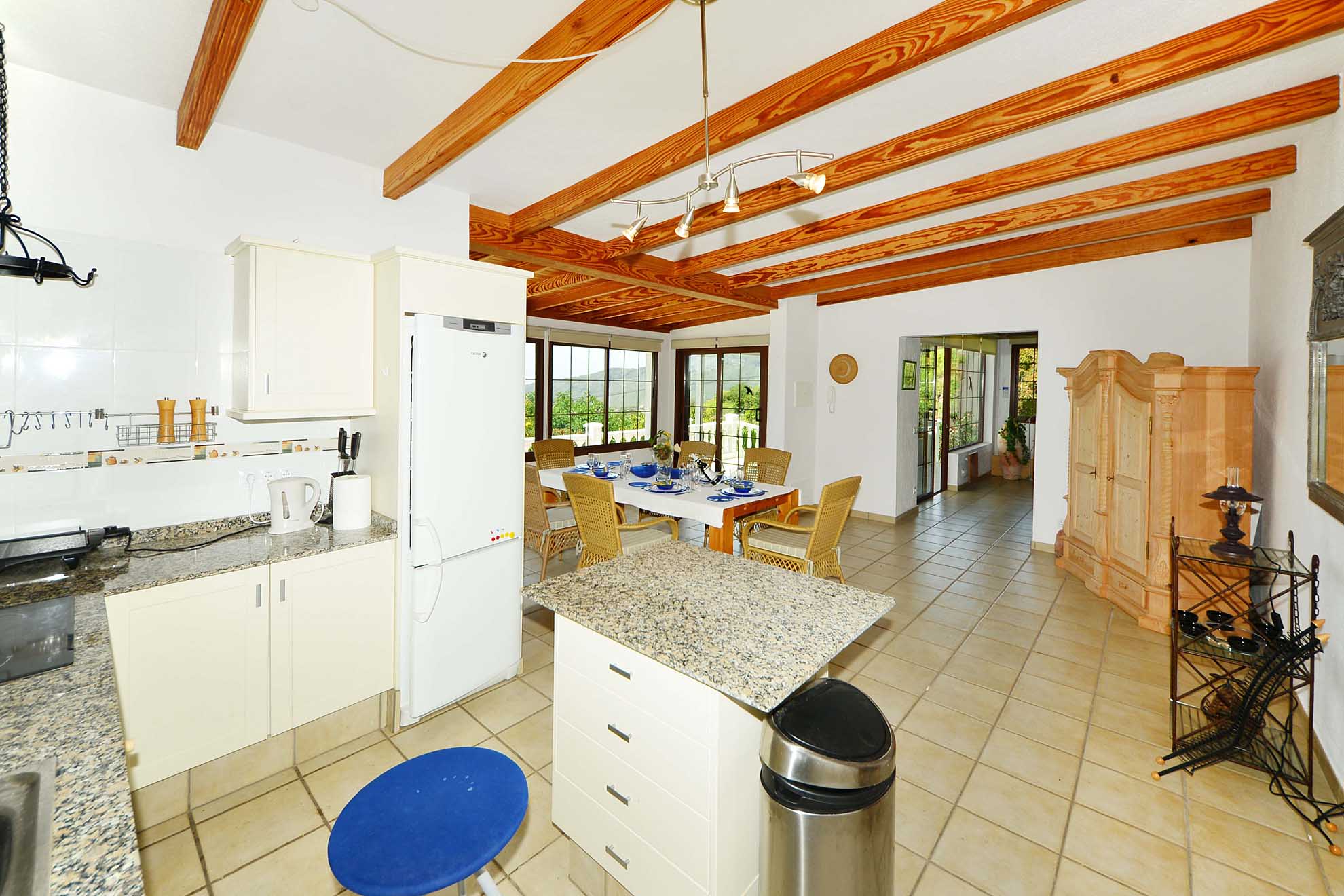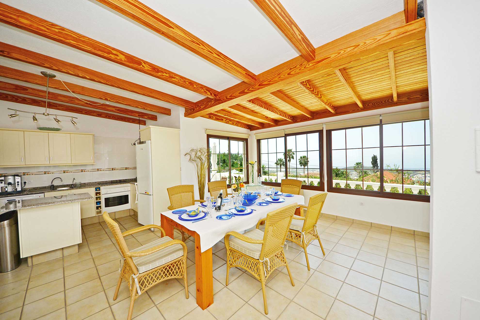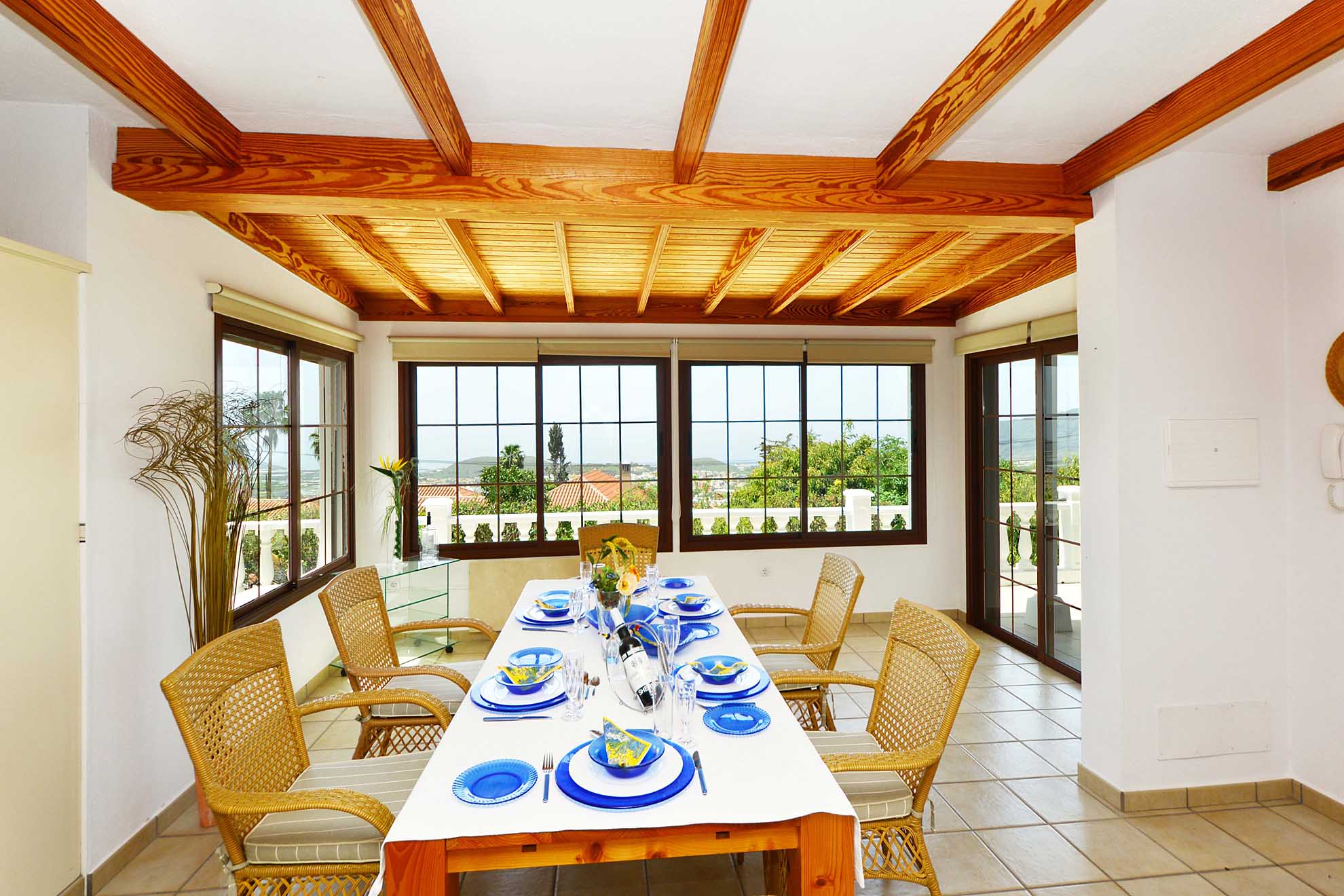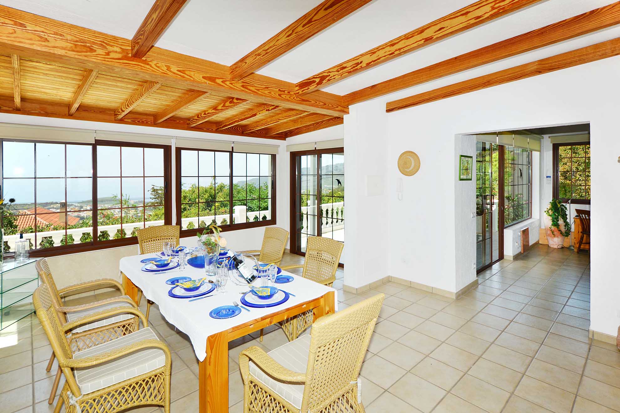 Die Villa (145 m²) wurde perfekt geplant und realisiert: Neben einem großen und hellen Wohnzimmer befindet sich ein großzügiger Essbereich der in einen Kochbereich übergeht. Alle Räume sind mit großen, doppelverglasten Aluminiumfenstern ausgestattet, die durch Dachüberstände bzw. überdachte Terrassen vor direkter Sonneneinstrahlung weitgehend geschützt sind.