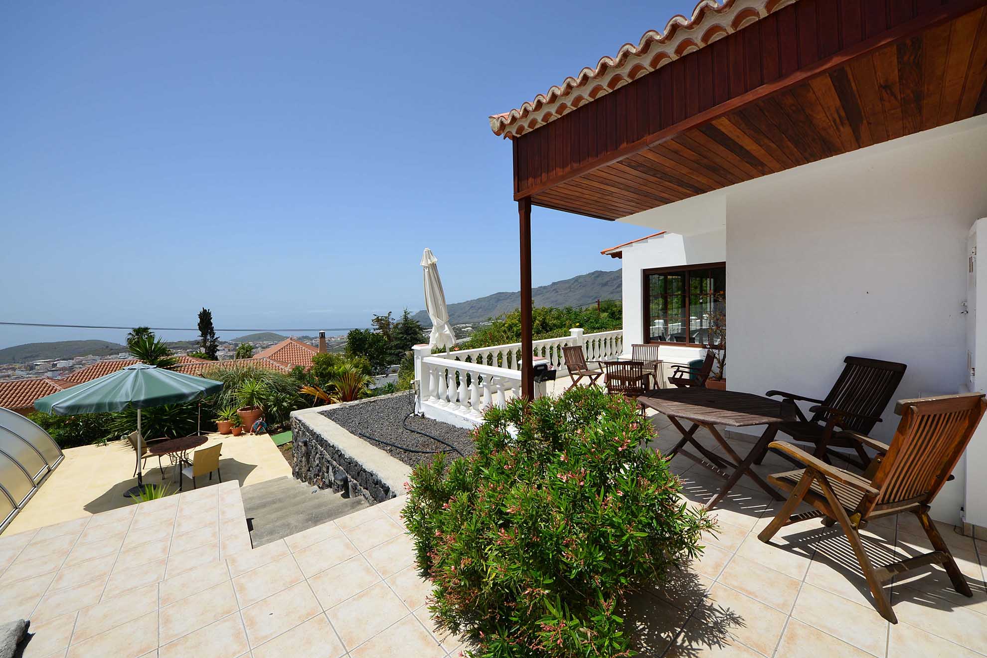 Für eine angenehme Temperierung bei allen Wetterlagen sorgen drei Klimaanlagen mit Wärmepumpen-Heizfunktion im ganzen Haus. Drei Terrassen in unterschiedliche Himmelsrichtungen, von denen eine ganz, und die zweite teilweise überdacht sind, lassen Sie den herrlichen Blick zu allen Tageszeiten je nach Wunsch in der Sonne oder im Schatten genießen.
