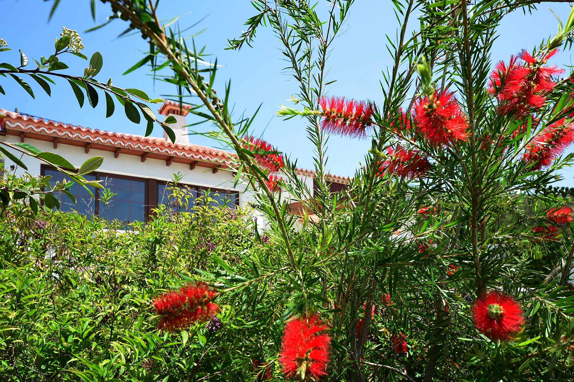 Der Garten wurde mit tropischen Zierpflanzen pflegeleicht angelegt und ist mit einer automatischen Bewässerung versorgt.