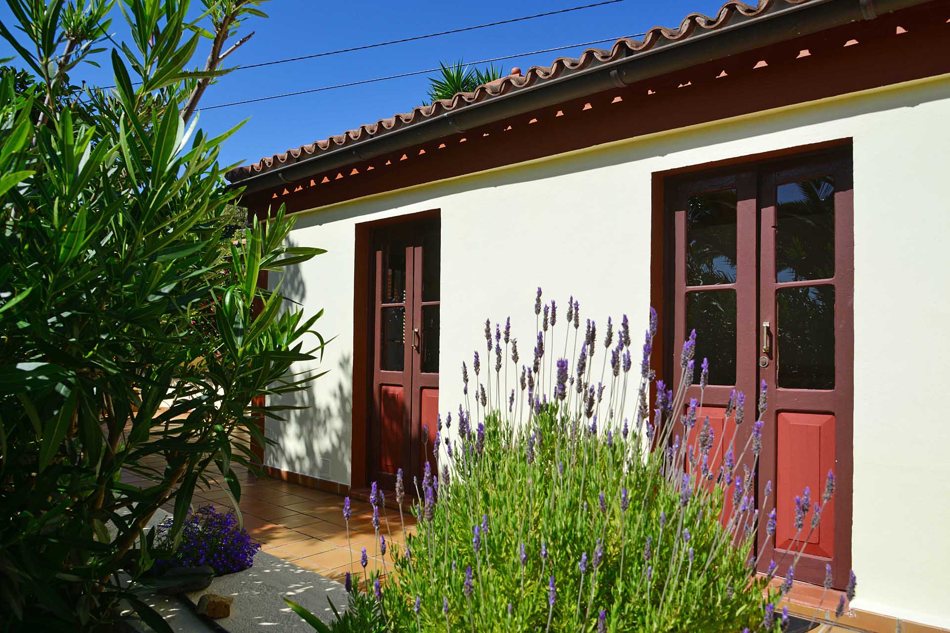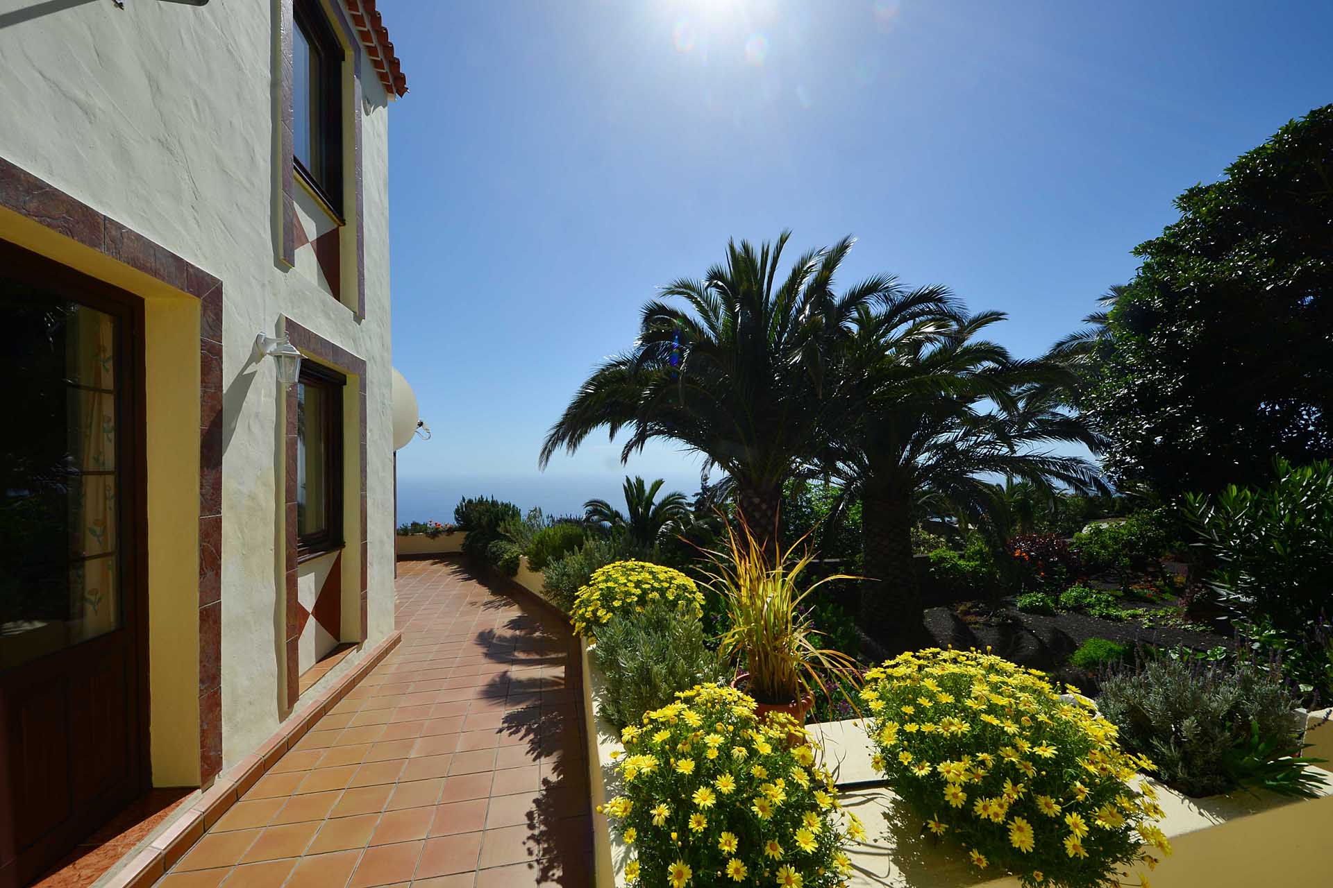 Der Garten ist von hohen Palmen und Zierbäumen beschattet und beherbergt viele Blumen und Zitrusbäume sowie einen Schuppen der früher als Hühnerstall diente. Er ist pflegeleicht angelegt und wird mit drei Bewässerungscomputern automatisch aus der eigenen Zisterne mit preisgünstigem Calderawasser bewässert.