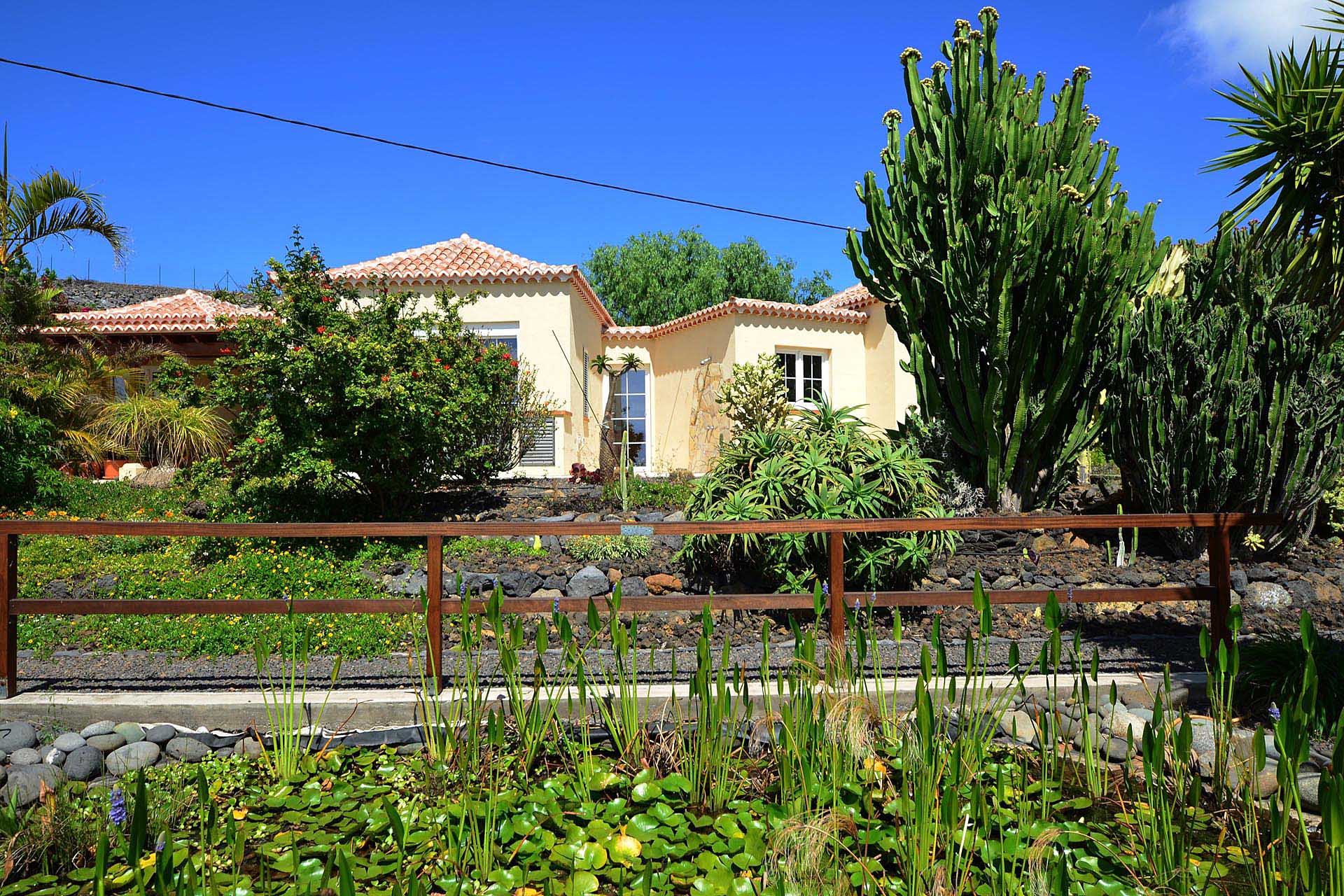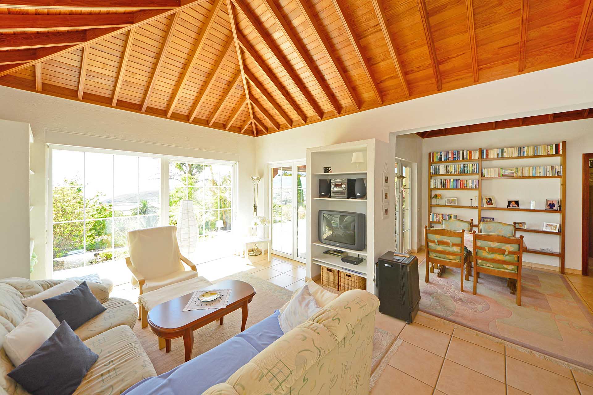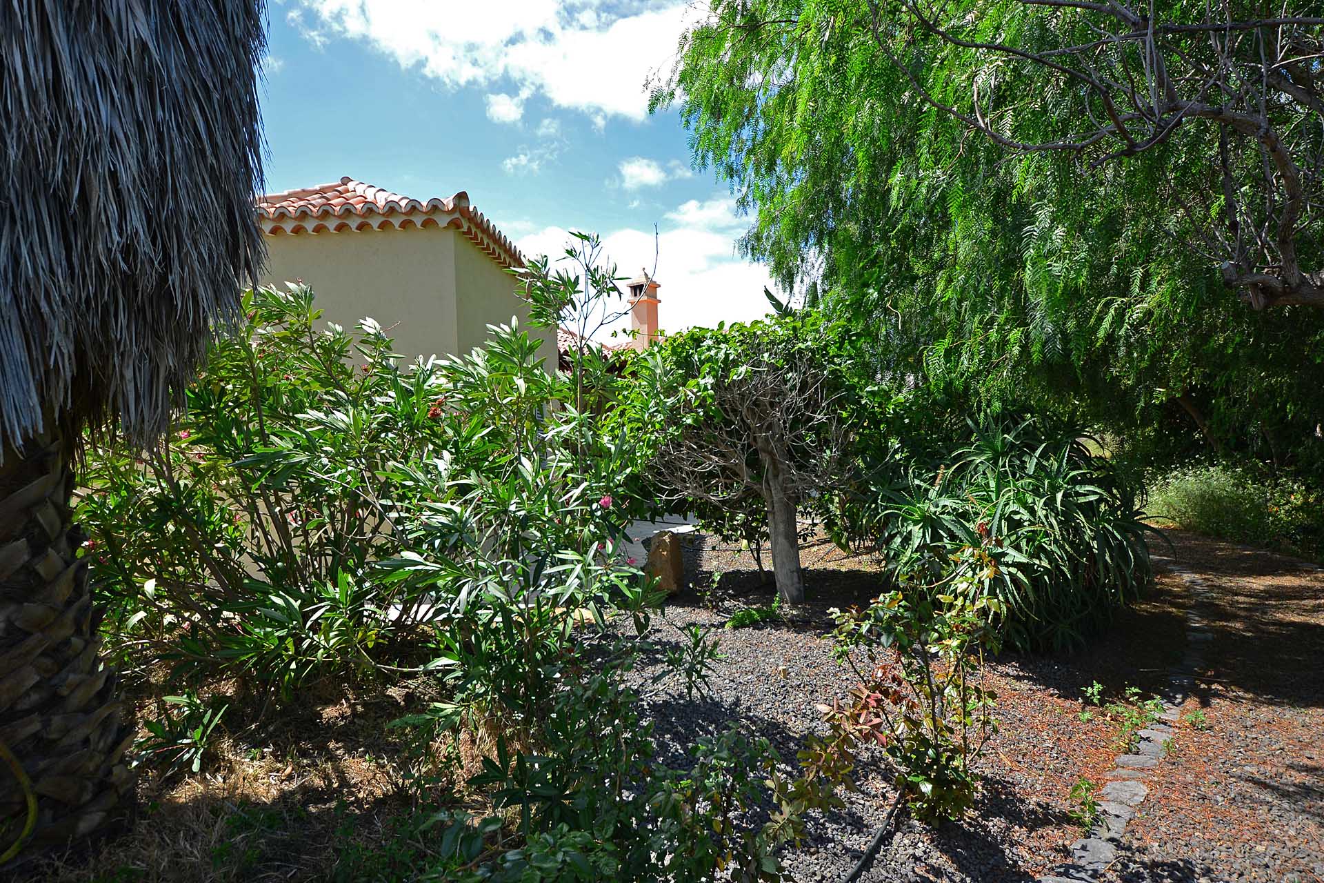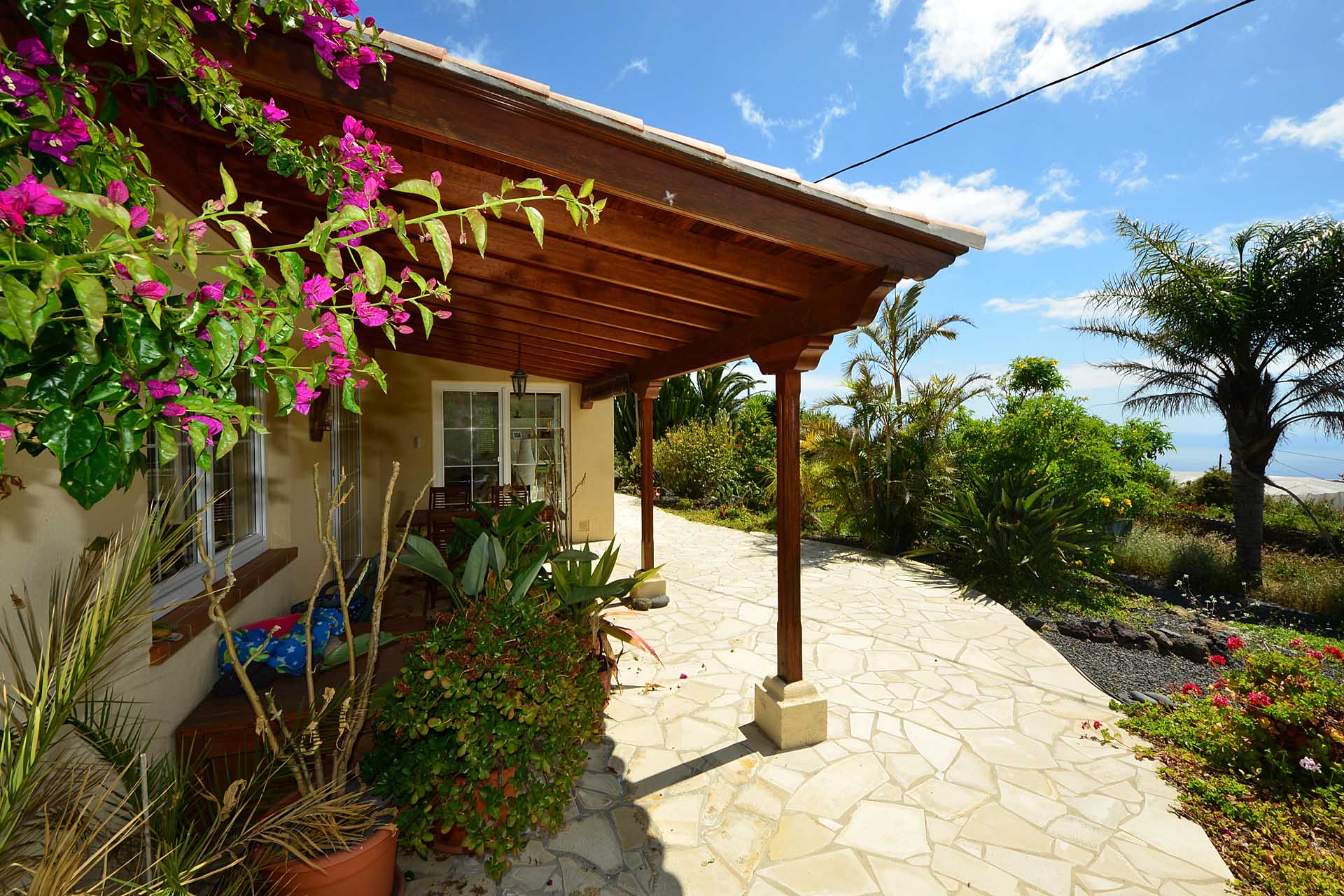 Das Wohnhaus wurde 1999 mit modernem, hellen und praktischem Grundriss neu errichtet und bietet mit seinen kanarischen Sichtholz-Dachstühlen neben herrlichem Panoramablick auf den Atlantik und die Berge auch die landestypische Gemütlichkeit des reichlich verarbeiteten Naturholzes. Sie betreten das Gebäude über eine überdachte Ostterrasse, den idealen Platz für das Frühstück bei den ersten Sonnenstrahlen. Das großzügige Wohnzimmer geht in den Ess- und Kochbereich über so dass diese zwar separiert erscheinen, jedoch nicht isoliert sind. An der Nordseite schließt sich ein Arbeitszimmer, an der Südseite zwei Schlafzimmer mit jeweils eigenem Tageslichtbad (eines mit Dusche, das andere mit Badewanne) an.