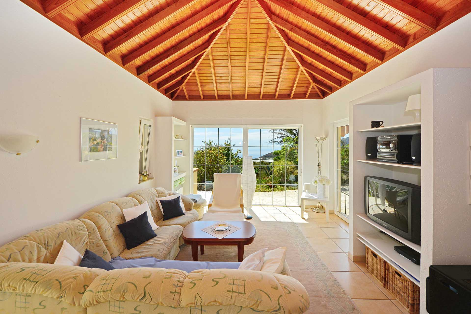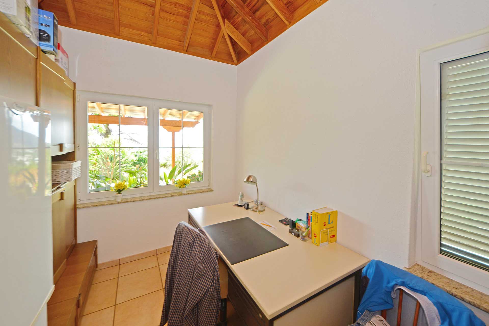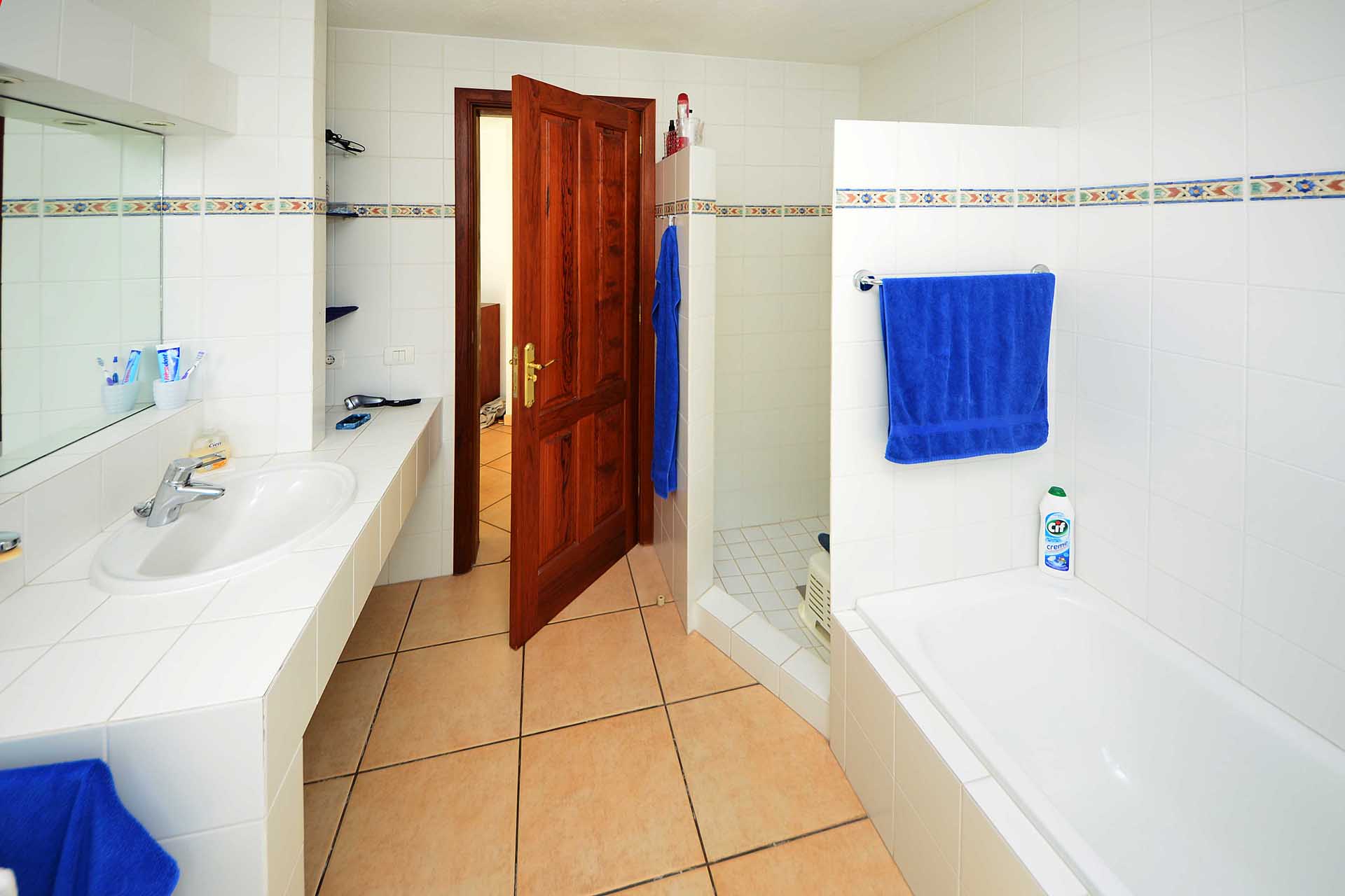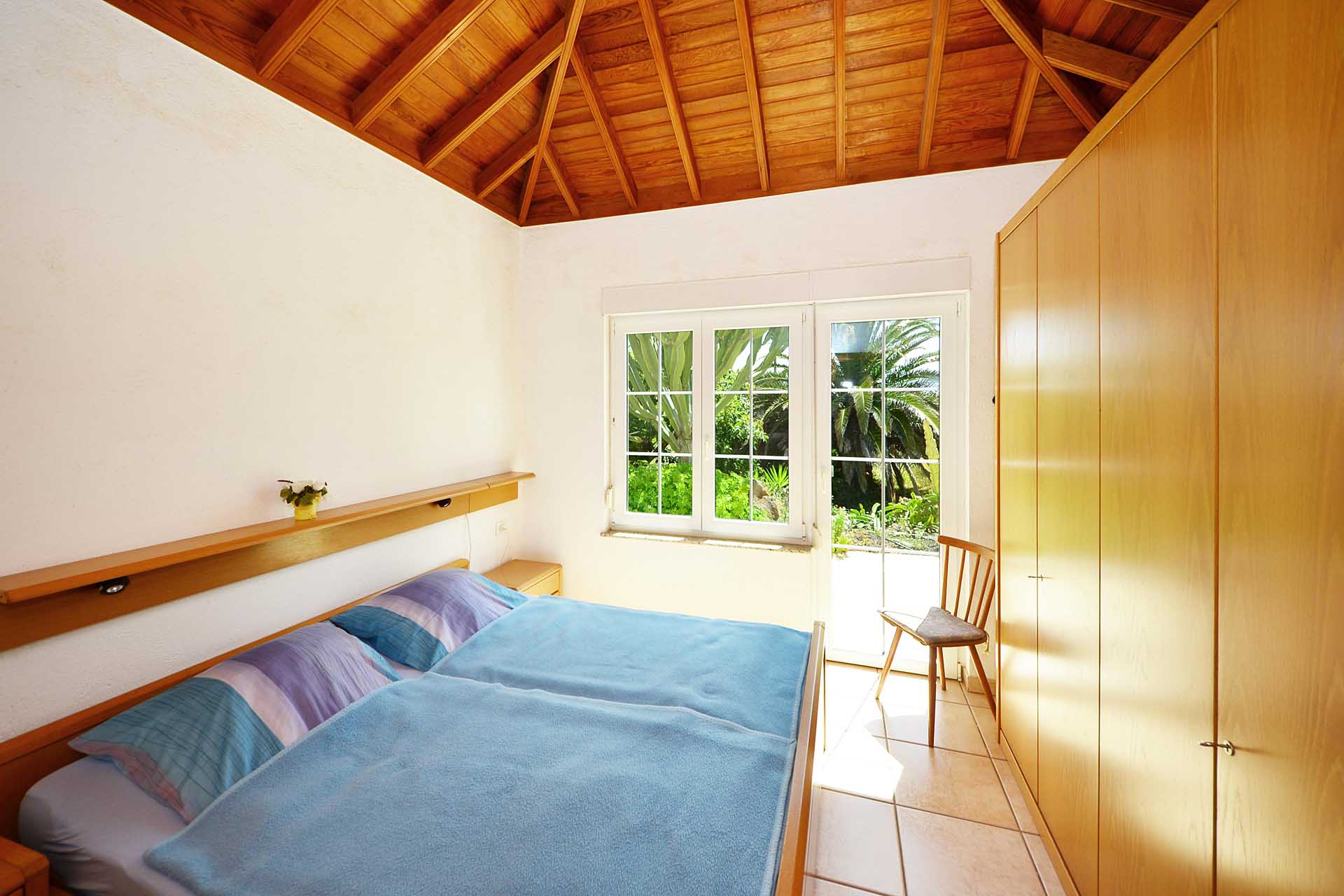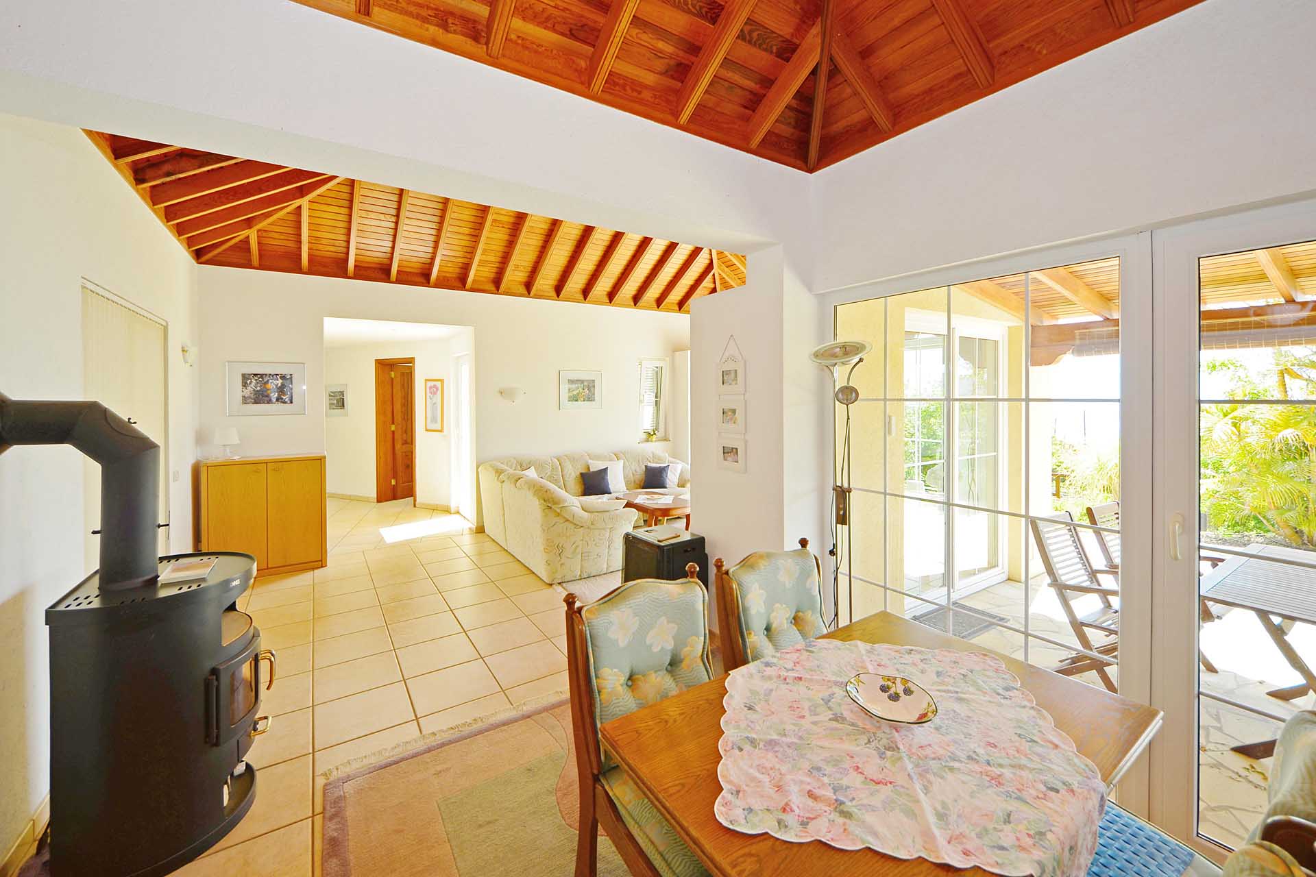 Das Wohnhaus wurde 1999 mit modernem, hellen und praktischem Grundriss neu errichtet und bietet mit seinen kanarischen Sichtholz-Dachstühlen neben herrlichem Panoramablick auf den Atlantik und die Berge auch die landestypische Gemütlichkeit des reichlich verarbeiteten Naturholzes. Sie betreten das Gebäude über eine überdachte Ostterrasse, den idealen Platz für das Frühstück bei den ersten Sonnenstrahlen. Das großzügige Wohnzimmer geht in den Ess- und Kochbereich über so dass diese zwar separiert erscheinen, jedoch nicht isoliert sind. An der Nordseite schließt sich ein Arbeitszimmer, an der Südseite zwei Schlafzimmer mit jeweils eigenem Tageslichtbad (eines mit Dusche, das andere mit Badewanne) an.