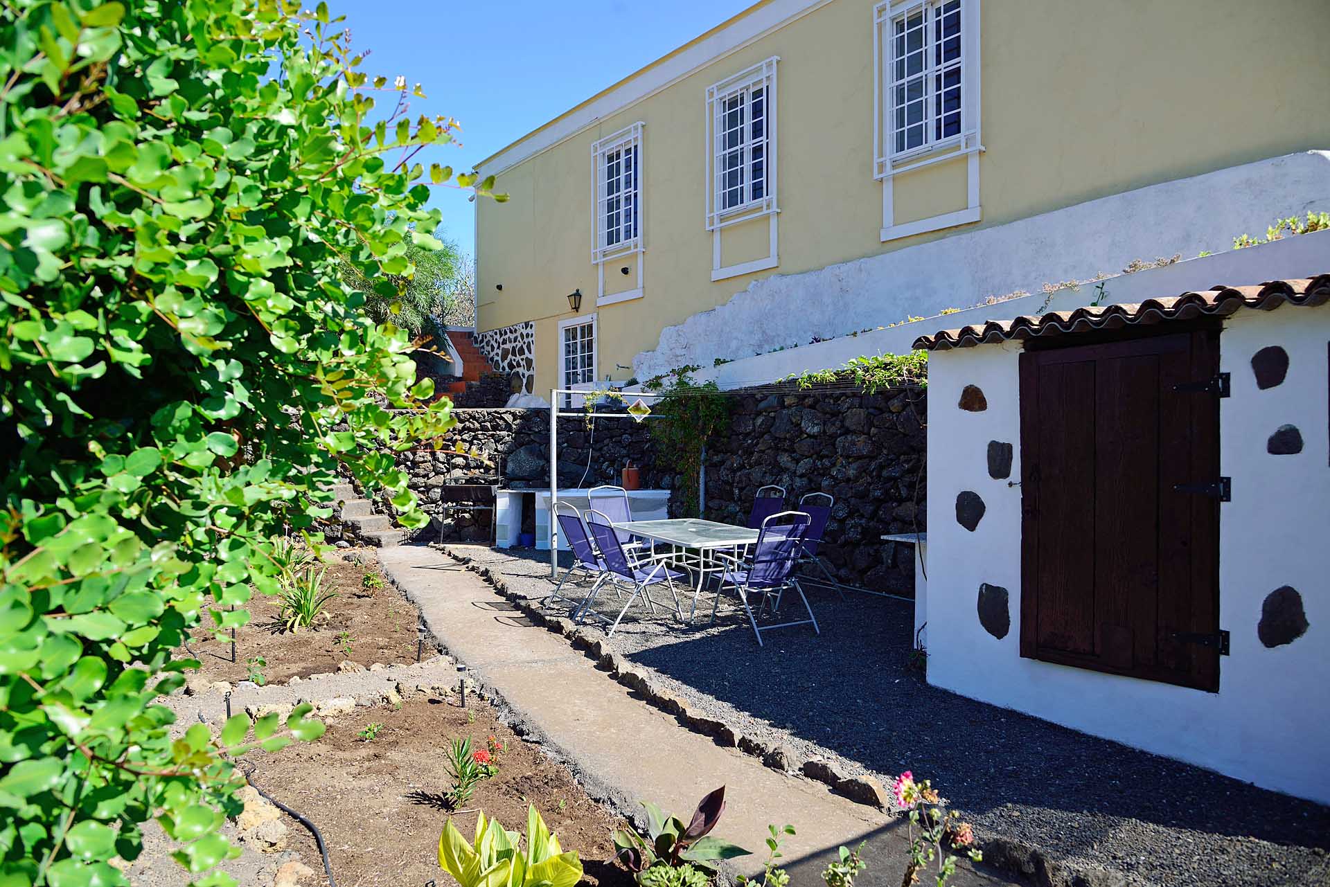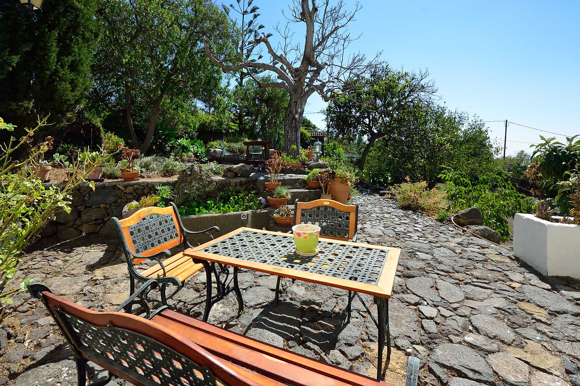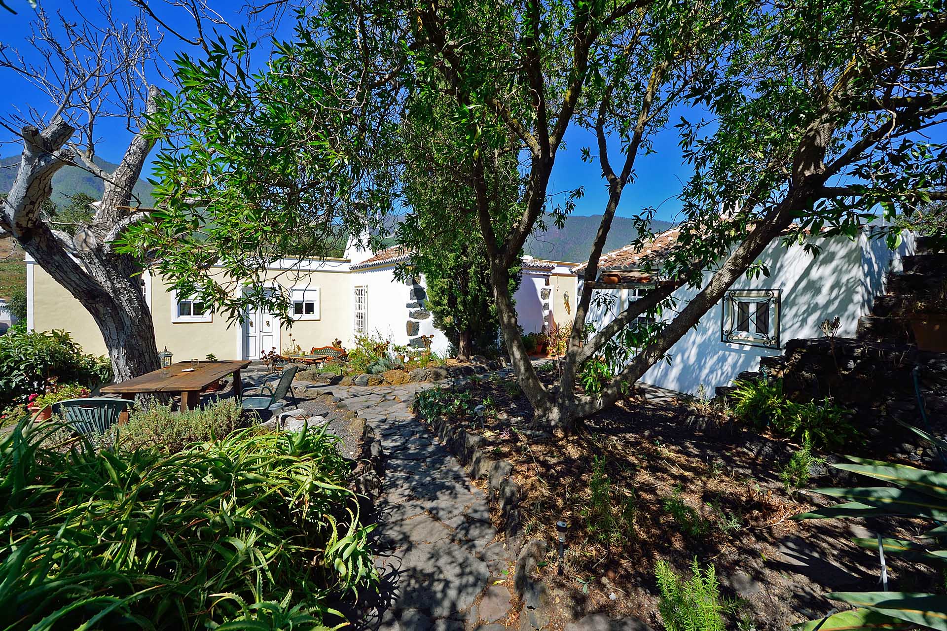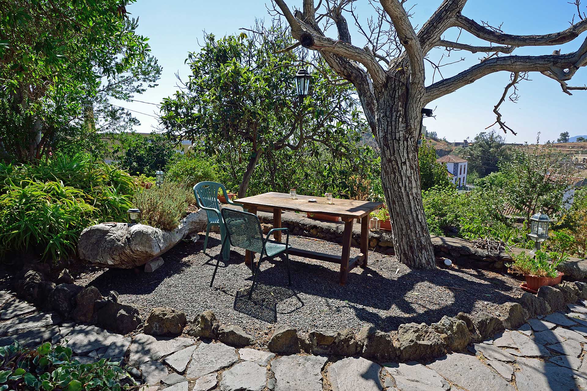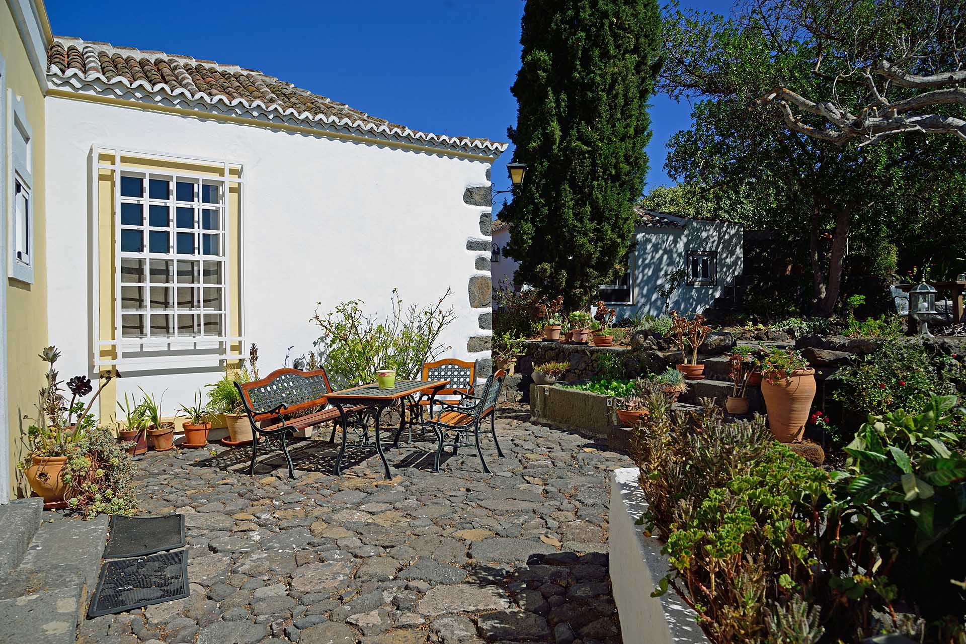 Über einen Innenhof mit Außenküche gelangen Sie zum separaten Gästehaus, das ebenfalls aus Natursteinmauern in historisch kanarischer Bauweise errichtet und liebevoll restauriert wurde. Unter originalem Holz-Dachstuhl beherbergt es ein Studio, also Wohnraum, Küche und Schlafbereich in einem großen Raum, sowie ein eigens Duschbad mit Tageslicht. Hier werden sich Ihre Gäste wohlfühlen und auch ein längerer Besuch aus der Heimat fällt nicht zur Last, weil das separate Gebäude alles bietet, was man für einen Ferienaufenthalt benötigt.