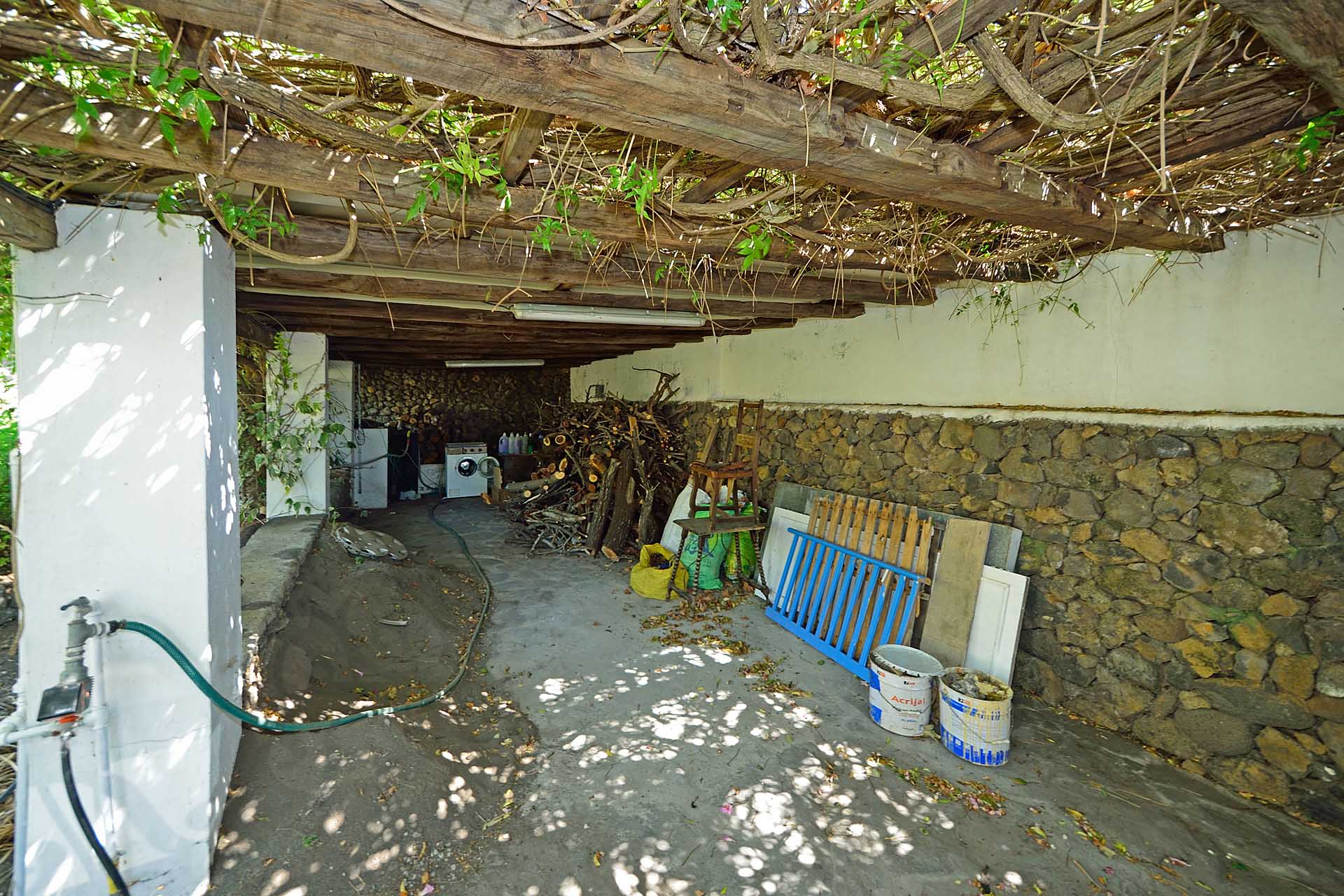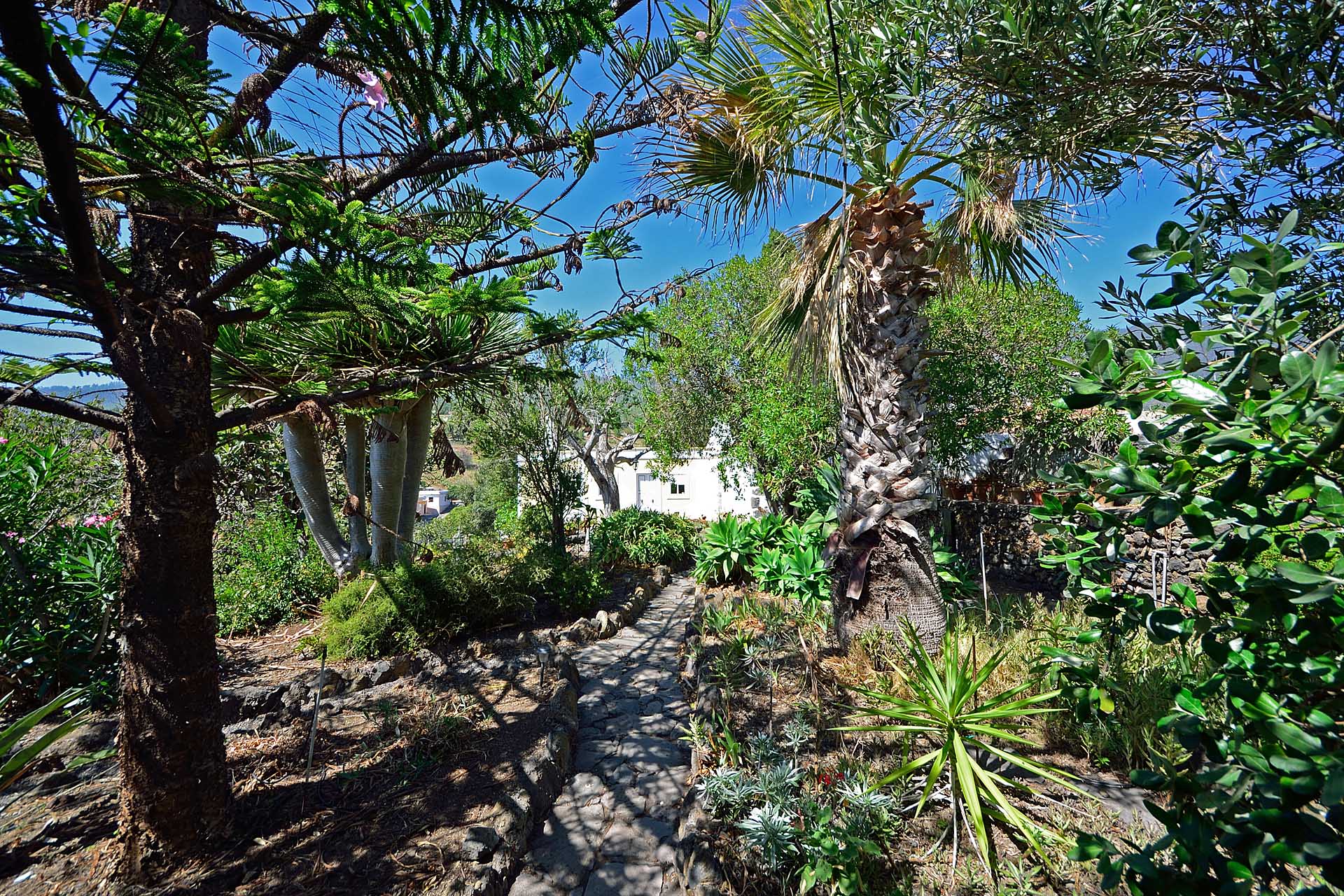 Auf mehreren, in sich sehr ebenen und mit fruchtbarer Erde reichlich bestückten Terrassen erstreckt sich sowohl der Ziergarten, der die Häuser umgibt, als auch der Nutzgarten, bestehend aus Fruchtbaum-Terrasse und mehreren Gemüse-Terrassen. Ein riesiger Eukalyptusbaum sorgt für Schatten, so dass empfindliche Pflanzen nicht in der Sonne verbrennen. Hier sind auch Stallgebäude vorhanden, wenn Ihnen nach frischen Frühstückseiern, eigenem Ziegenkäse oder Stallhasen zu Mute ist. Natürlich kann man diese Räume auch als Werkzeugschuppen nutzen, wobei für diesen Zweck noch ein kleines Lagergebäude vorhanden ist, sowie ein großer aber rundum trockener Keller, der als Werkstatt genutzt wird.