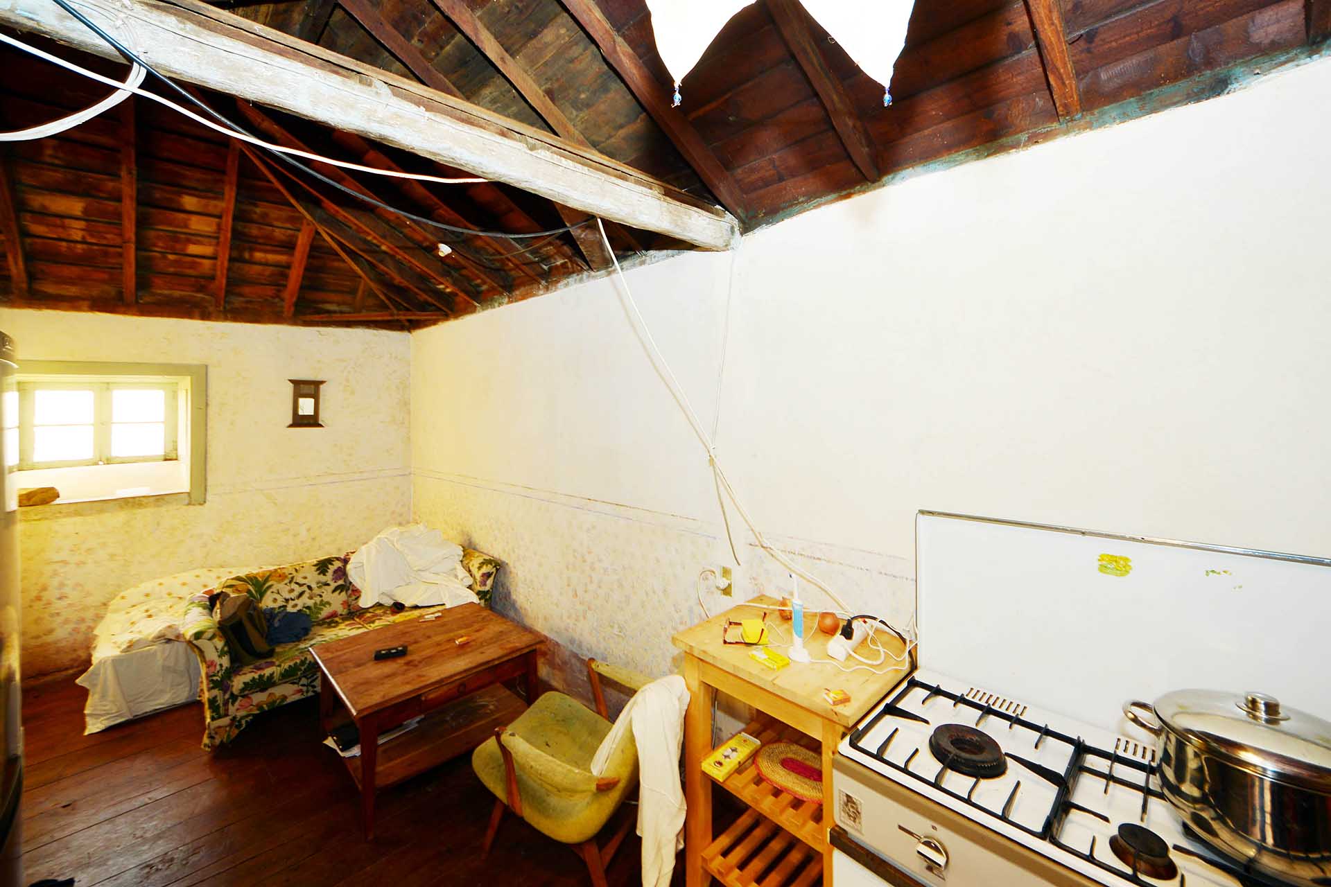 Das Haupthaus besteht aus einem großen Raum im Erdgeschoss nebst einer kleinen Abstellkammer und einer Wohnküche mit einem Schlafzimmer im ersten Stock. Ein provisorisches Badezimmer befindet sich in einem nur wenige Meter entfernten Nebengebäude, nebst Abstellfläche und Waschmaschine.