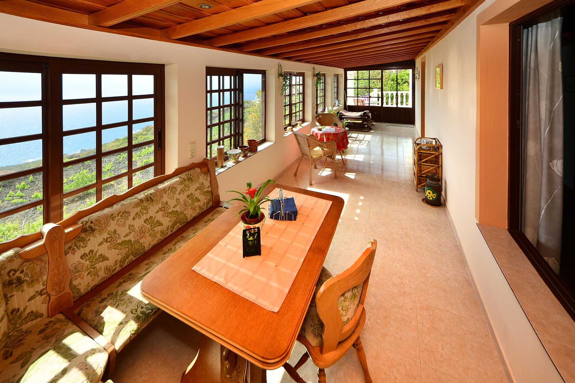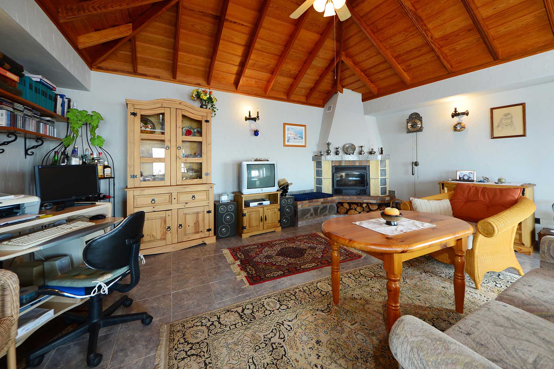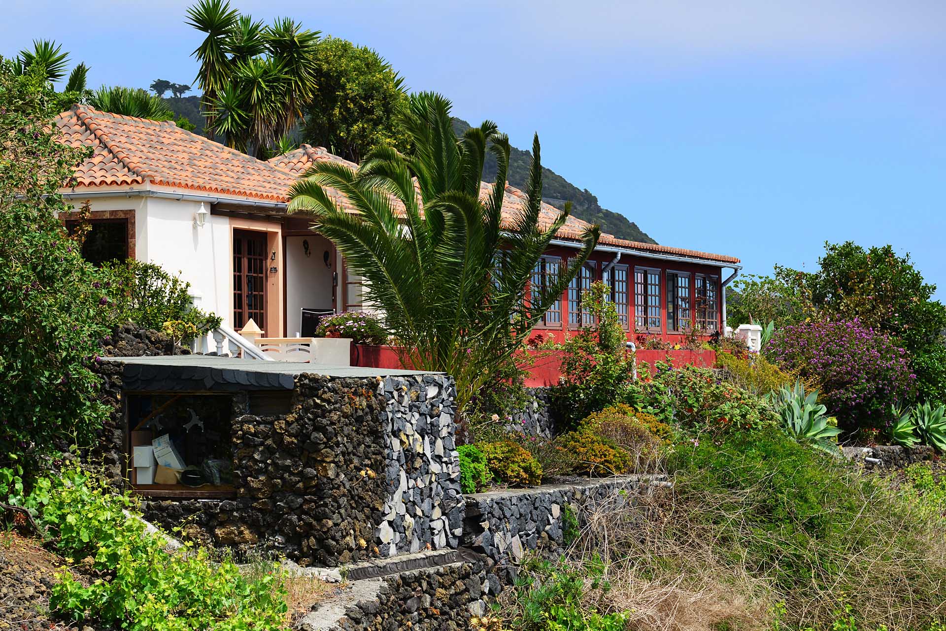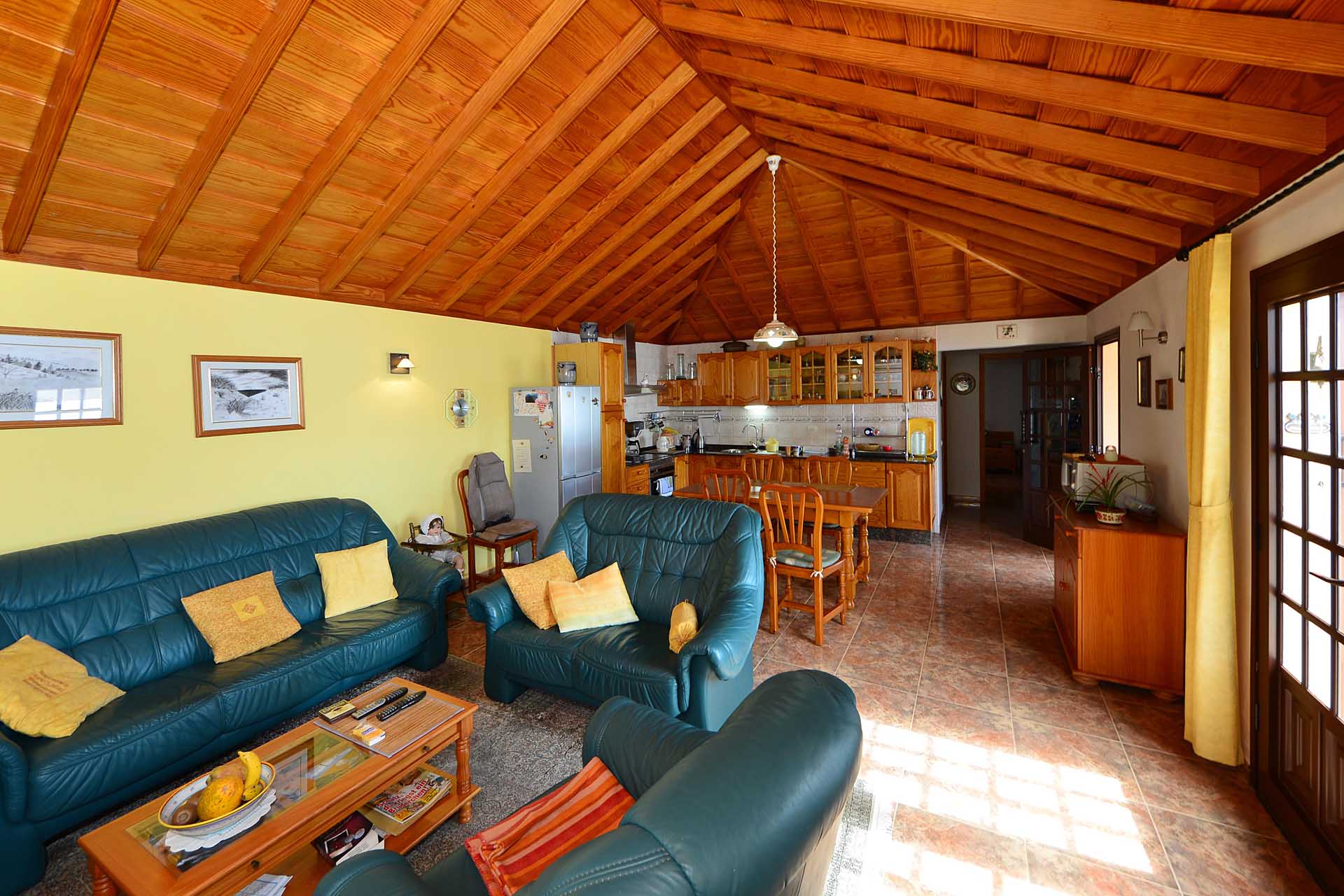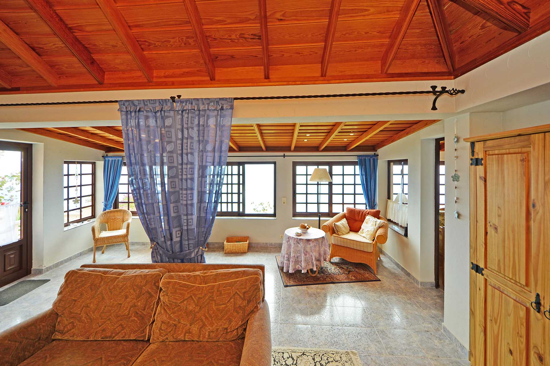 Die Villa wurde 2003 gebaut, befindet sich in sehr gepflegtem Zustand und beherbergt im Hauptbereich einen sehr großen Wintergarten, der über seine ganze Länge den Blick auf das Meer ermöglicht, ein Wohnzimmer, eine Wohn- Essküche, ein großes Schlafzimmer und ein Bad. Direkt anschließend wurde die ursprüngliche, altkanarische Bebauung als separater Gästebereich mit Schlafzimmer, Bad und Hauswirtschaftsraum ausgebaut.