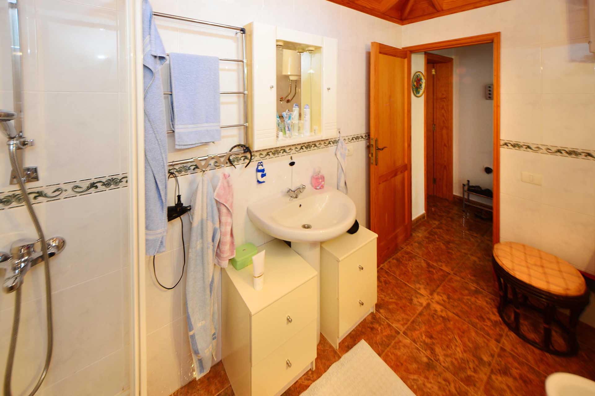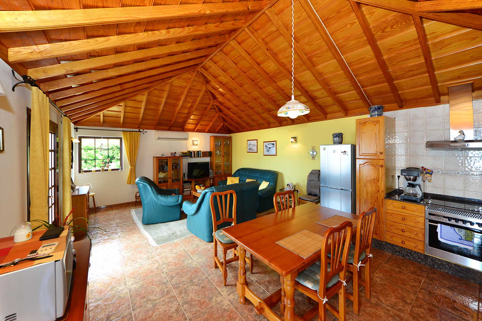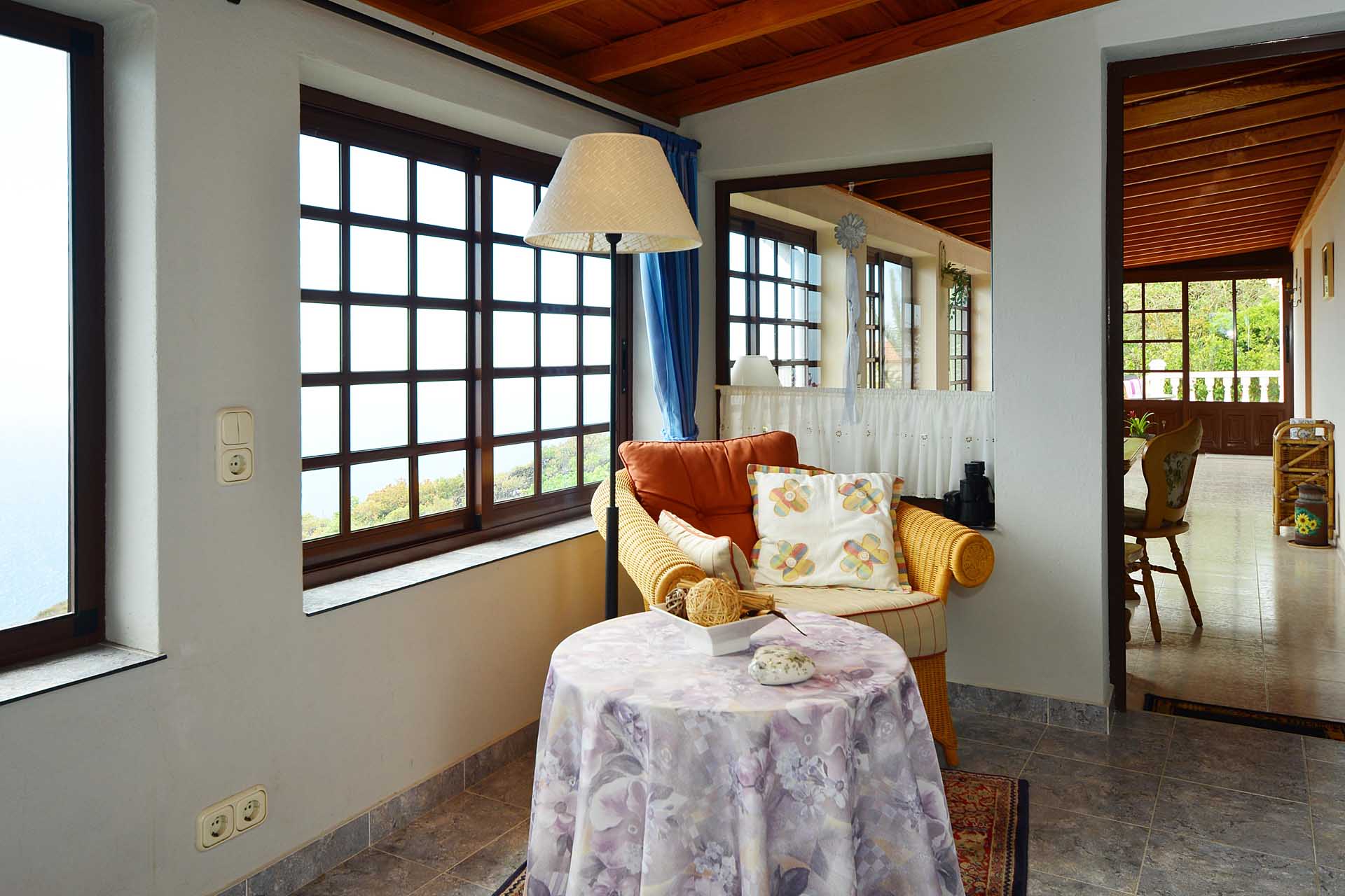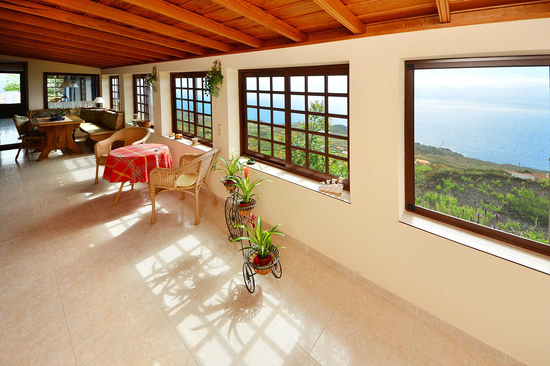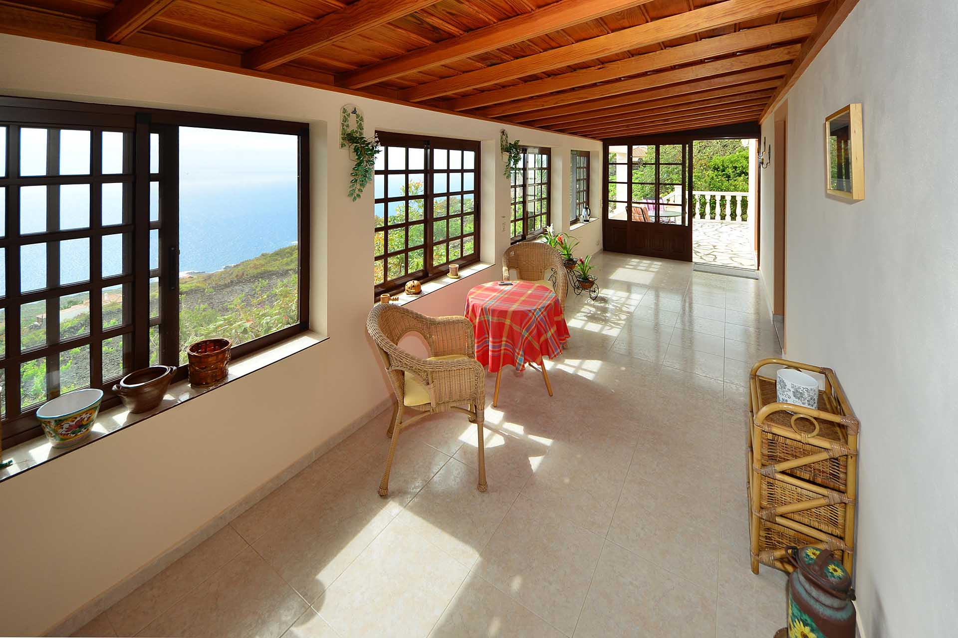 Die Villa wurde 2003 gebaut, befindet sich in sehr gepflegtem Zustand und beherbergt im Hauptbereich einen sehr großen Wintergarten, der über seine ganze Länge den Blick auf das Meer ermöglicht, ein Wohnzimmer, eine Wohn- Essküche, ein großes Schlafzimmer und ein Bad. Direkt anschließend wurde die ursprüngliche, altkanarische Bebauung als separater Gästebereich mit Schlafzimmer, Bad und Hauswirtschaftsraum ausgebaut.