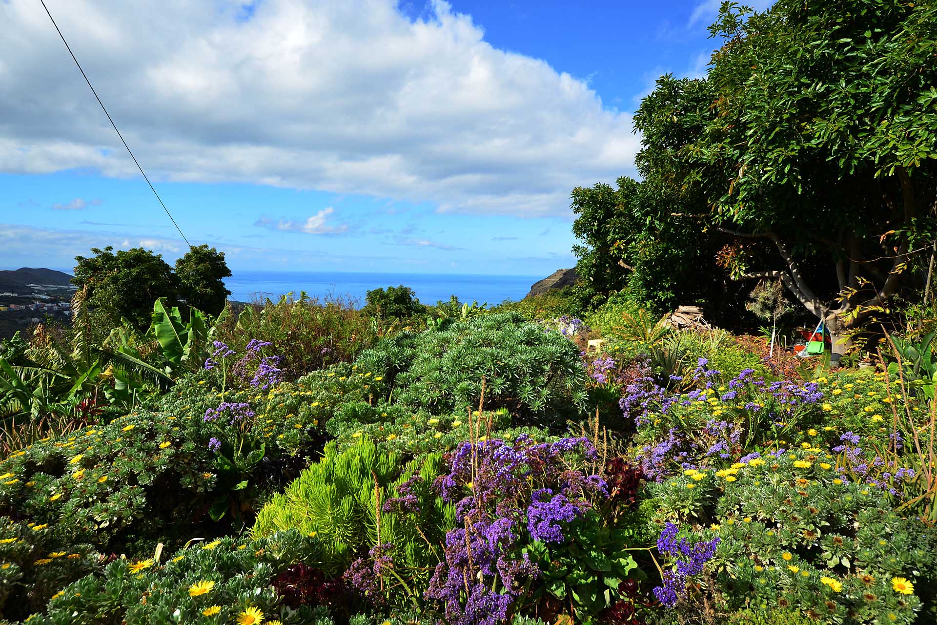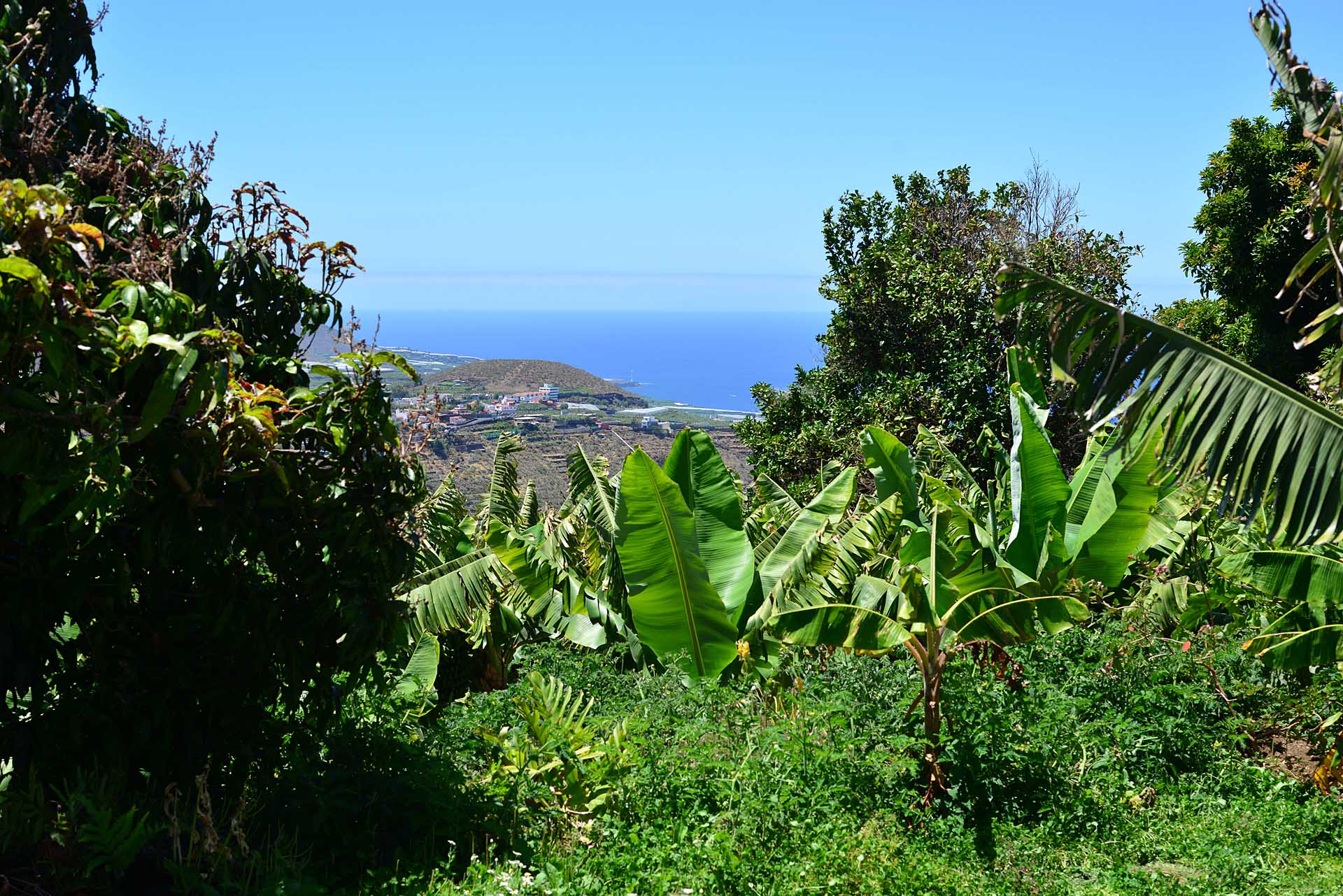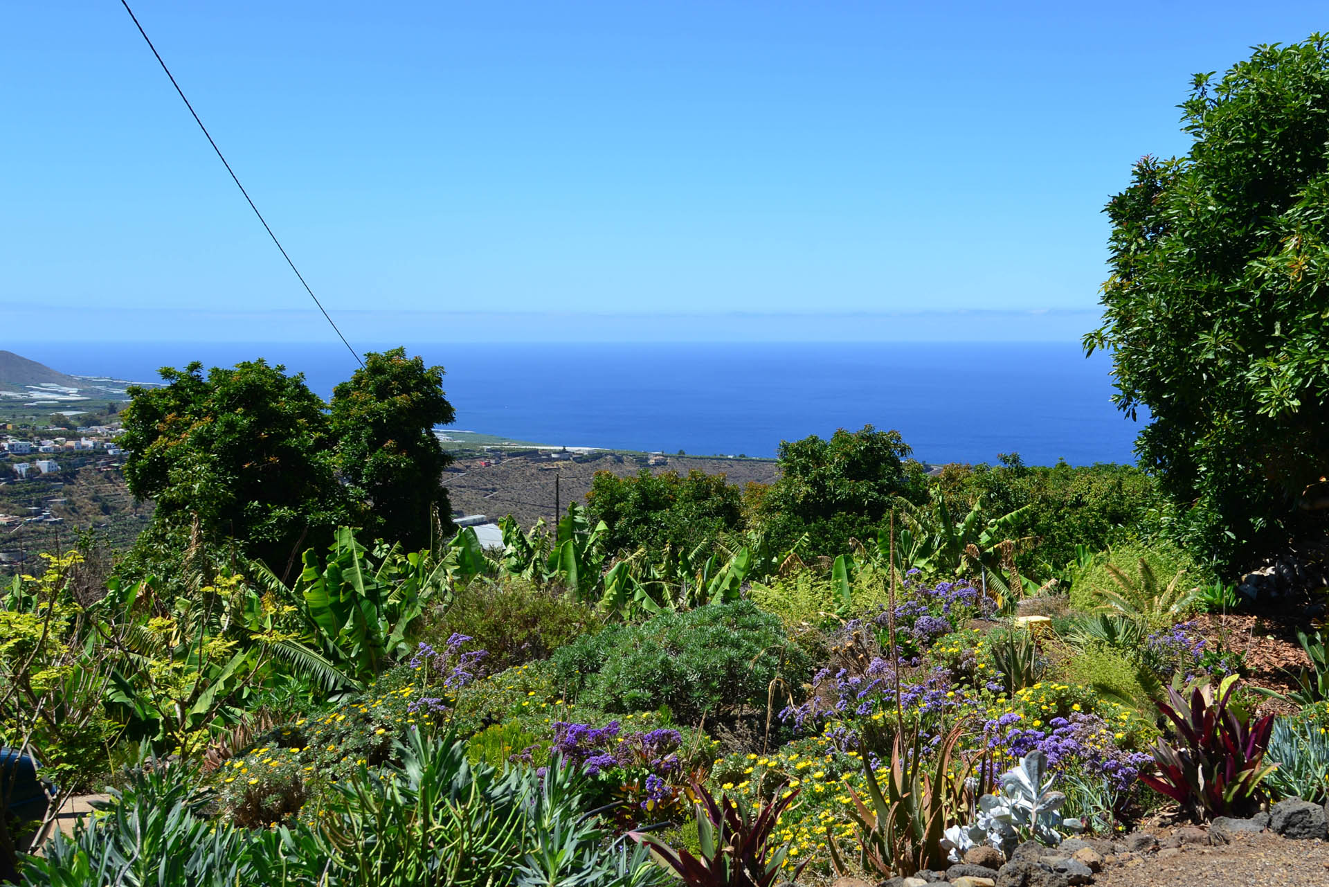 Der Steile Südhang, der den Eingang zum Nationalpark „Caldera de Taburiente“ säumt heizt sich Tagsüber auf und gibt Nachts diese Wärme ab. Dies ist der Grund, weshalb hier auch auf gut 400 m Höhe noch Ananas reifen und alle nur denkbaren tropischen und subtropischen Früchte. Völlig windgeschützt genießen Sie von hier nicht nur den herrlichen Meerblick, sondern auch den Blick in den „Barranco de las Angustias“, die Cumbre und die Gebirgszüge, die die Caldera säumen.