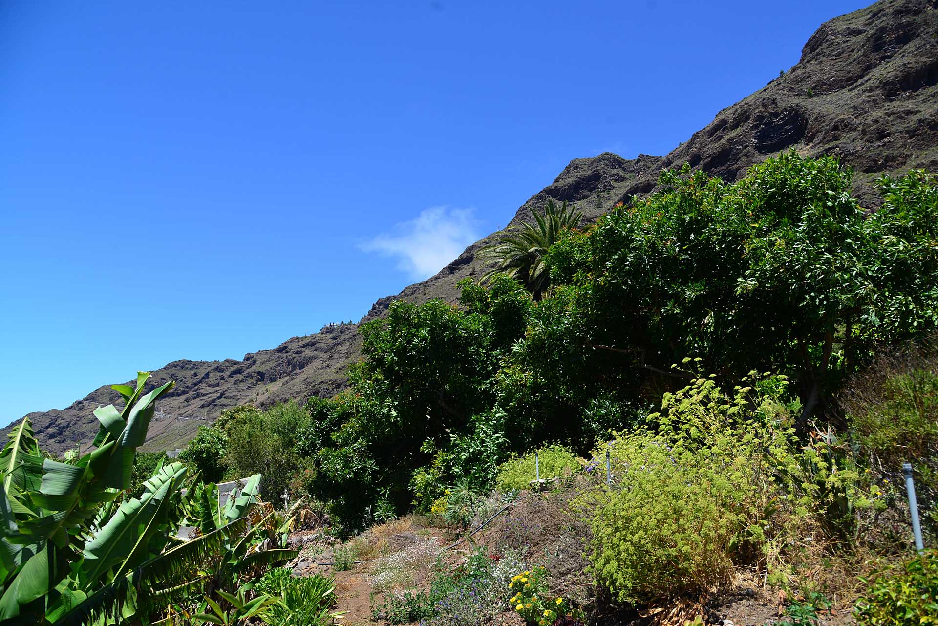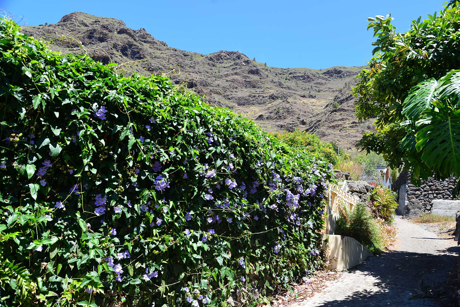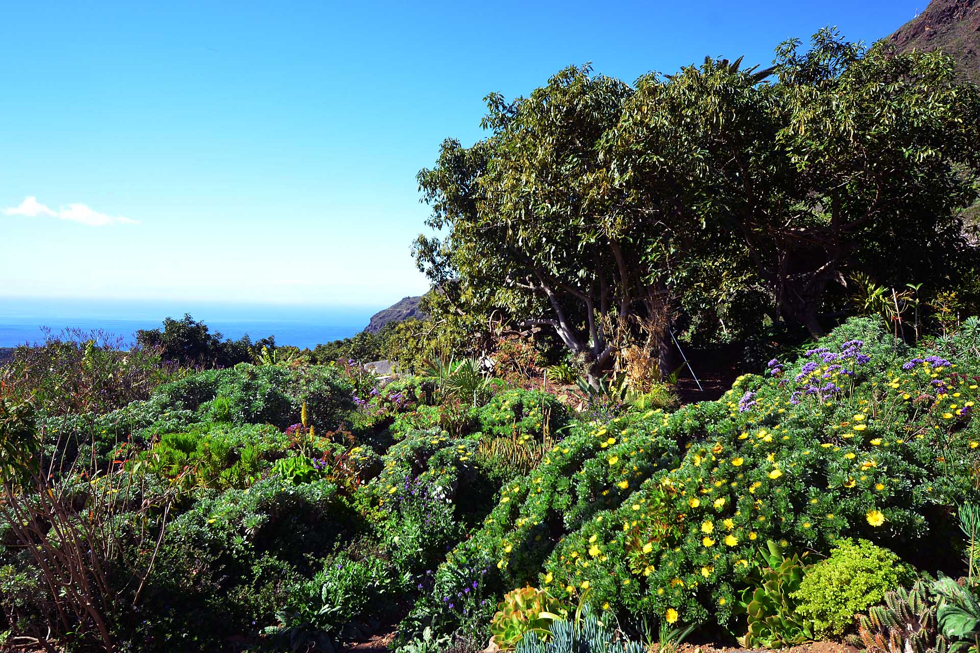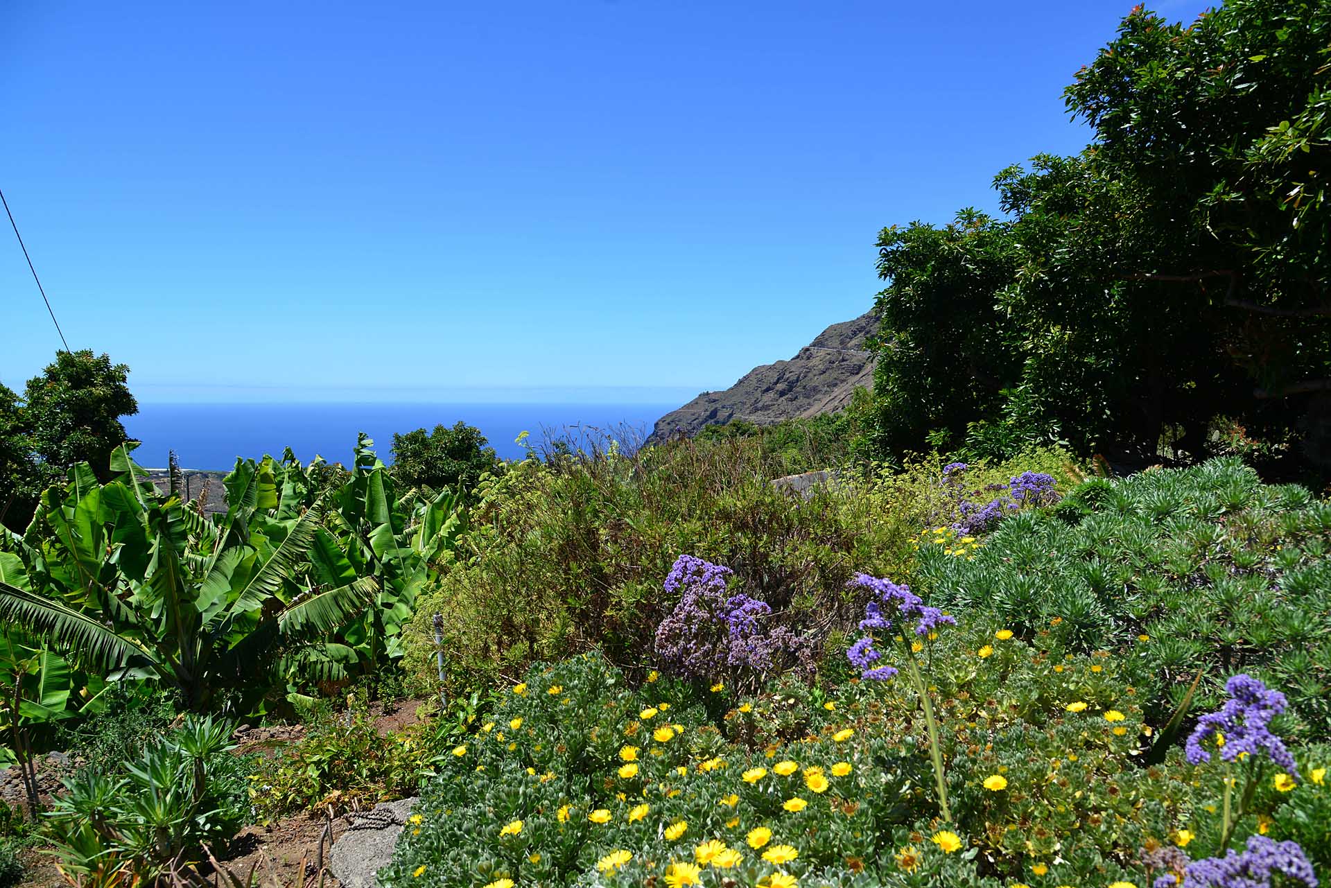 Der Steile Südhang, der den Eingang zum Nationalpark „Caldera de Taburiente“ säumt heizt sich Tagsüber auf und gibt Nachts diese Wärme ab. Dies ist der Grund, weshalb hier auch auf gut 400 m Höhe noch Ananas reifen und alle nur denkbaren tropischen und subtropischen Früchte. Völlig windgeschützt genießen Sie von hier nicht nur den herrlichen Meerblick, sondern auch den Blick in den „Barranco de las Angustias“, die Cumbre und die Gebirgszüge, die die Caldera säumen.