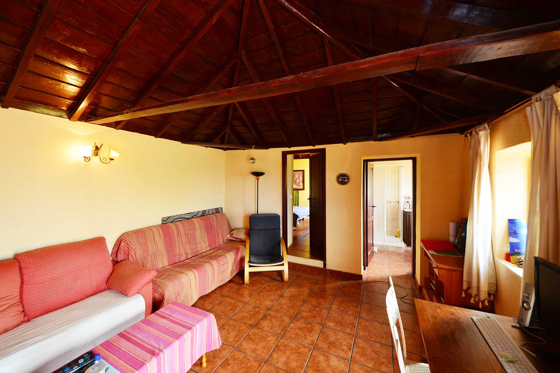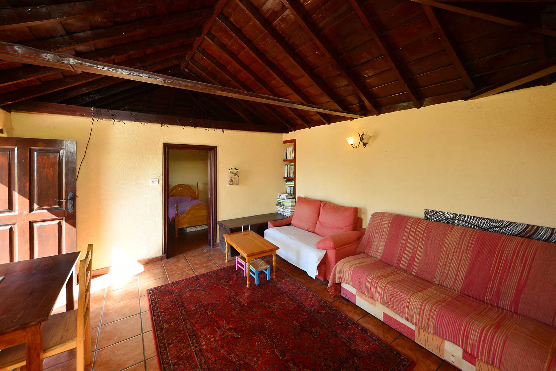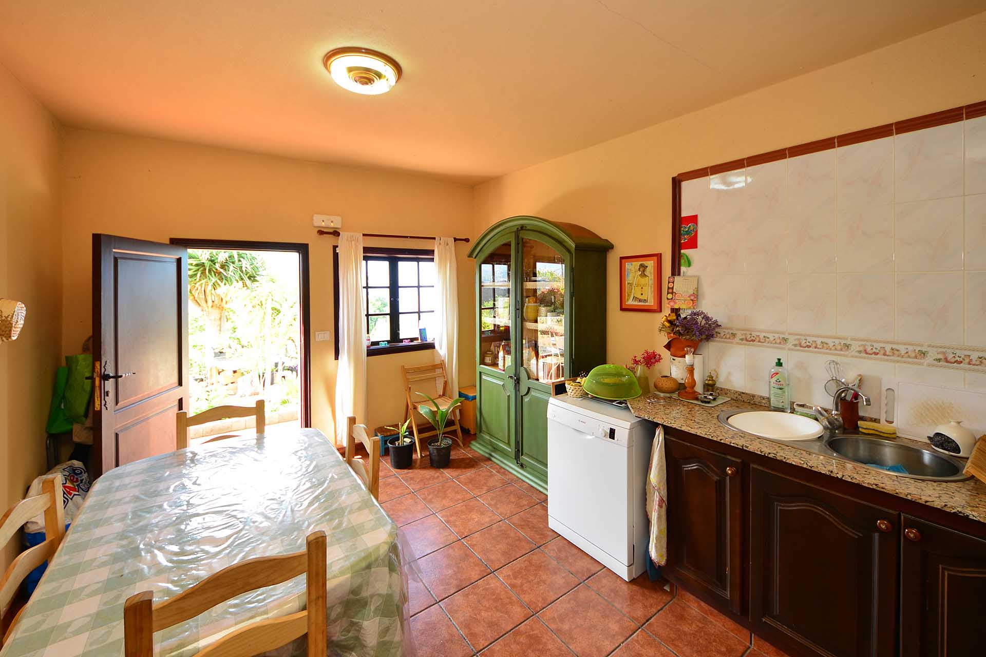 Die Finca besteht aus einem geräumigen, überwiegend in kanarischem Stil gebauten Wohnhaus mit zwei Schlafzimmern, einem Wohnzimmer, einer Küche und einem Bad mit einer Grundfläche von 89 m² und einem kleinen Gästehaus mit einem Schlafzimmer und einem Lagerraum der natürlich auch zum separaten Badezimmer ausgebaut werden kann. Vor und neben dem Haus finden Sie Terrassen mit herrlichem Ausblick und einen üppigen Fruchtgarten.
