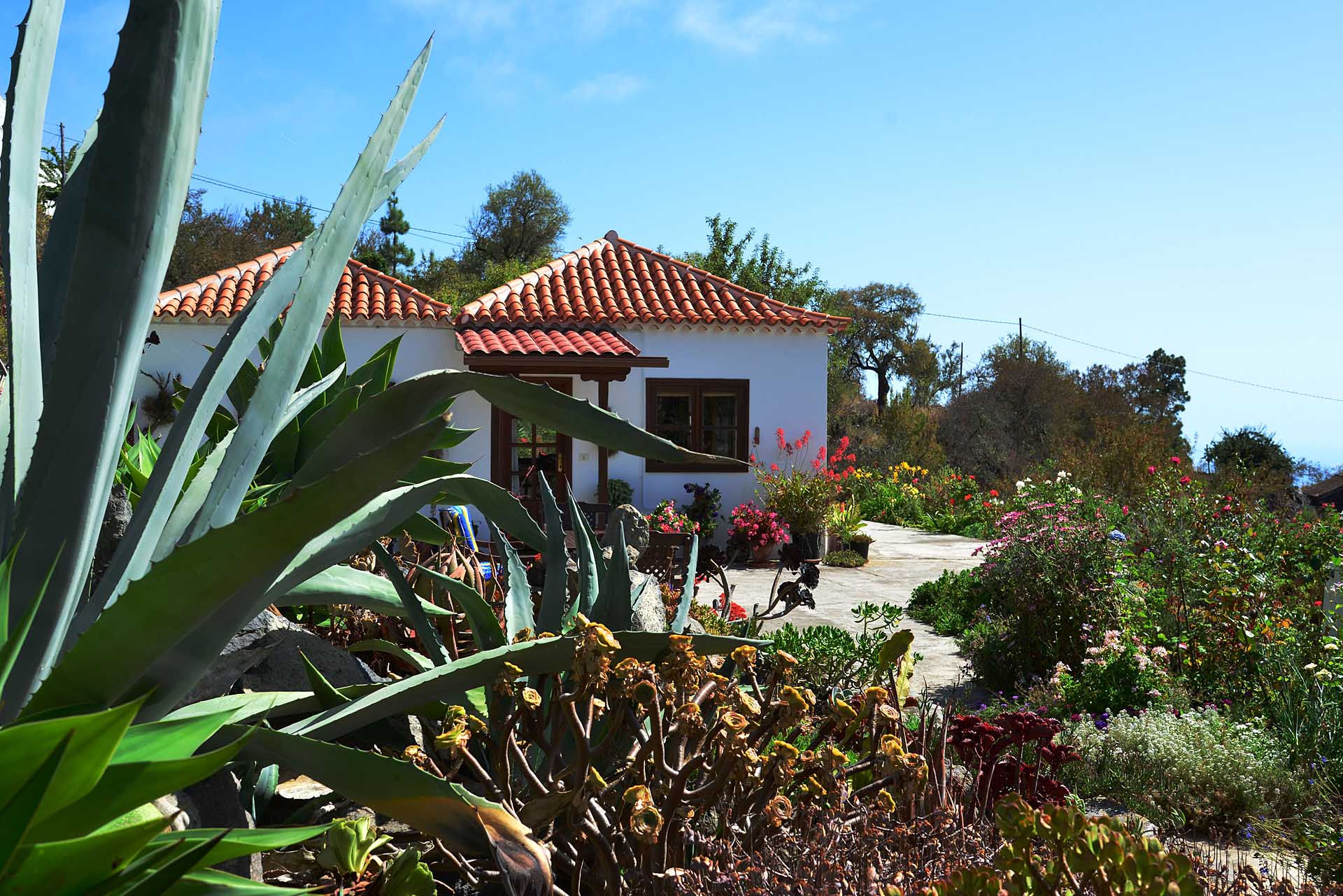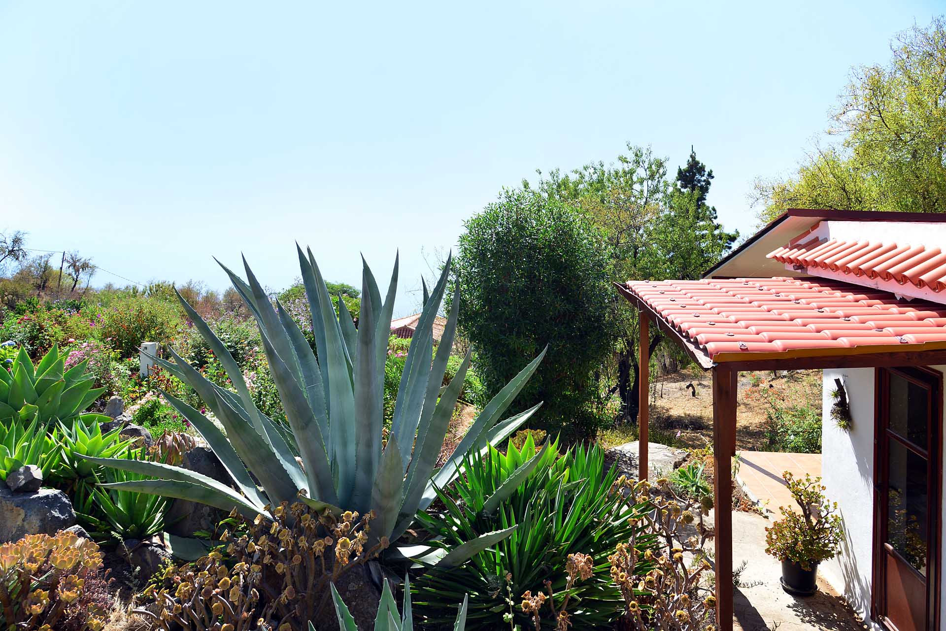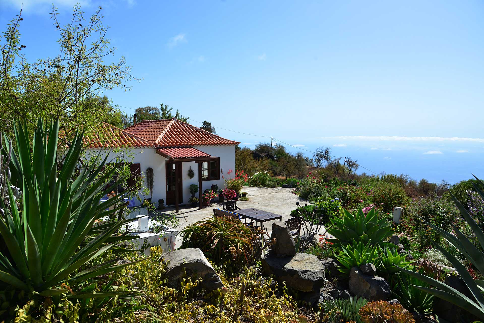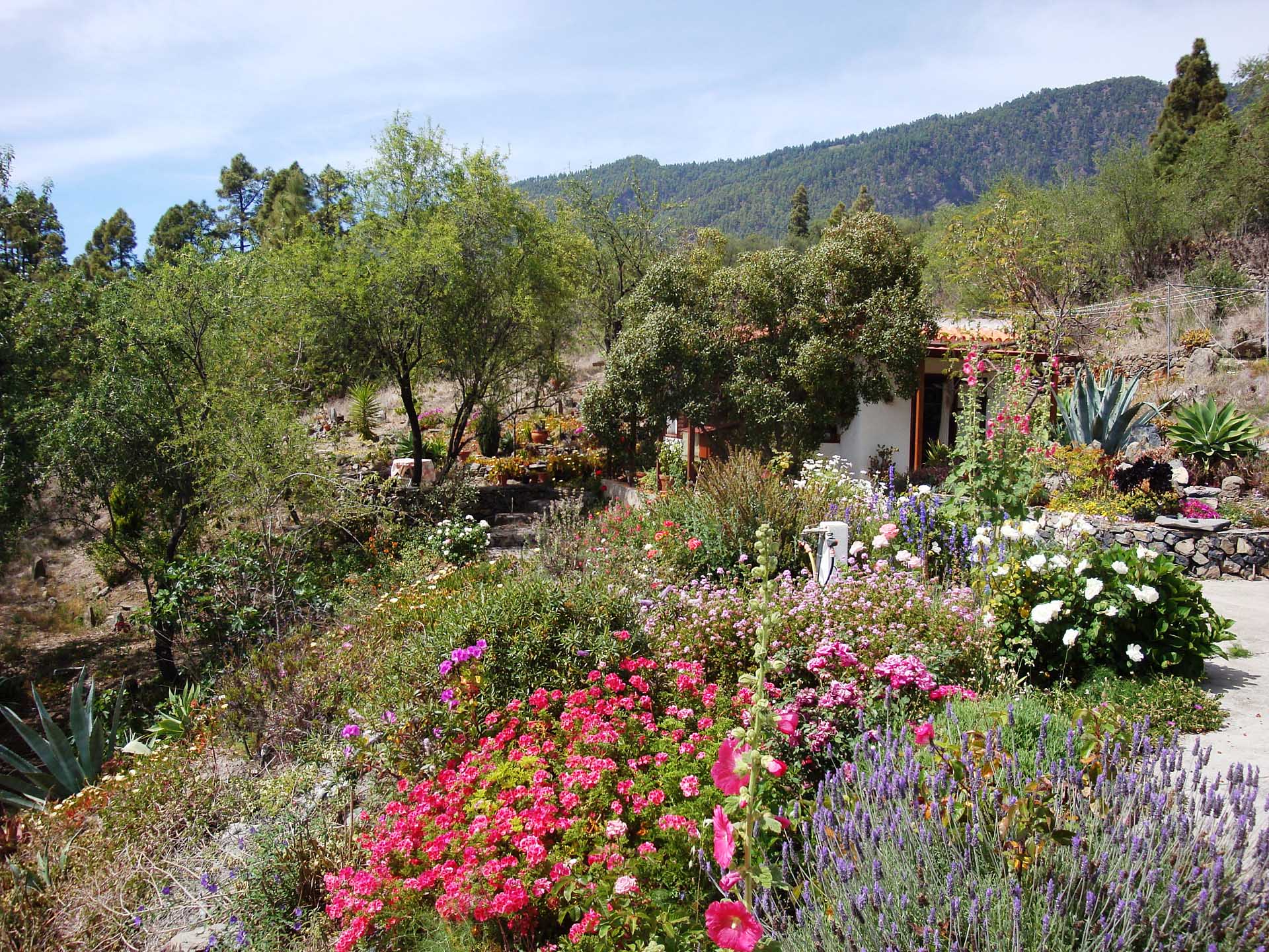 Der schön angelegte, große Garten (5.829 m²) besticht durch seine Vielfalt an Frucht- und Zierbäumen, die bereits stattliche Größe erreicht haben und einen gute Ernte bringen. Das Grundstück ist vielfältig gegliedert und bietet so immer neue Aus- und Anblicke, verwunschene Sitzplätze, Terrassen und Anbauflächen für Gemüse oder Kräuter. Immer wieder öffnet sich der Blick auf den Atlantik, von der Terrasse des Gästehauses 1 schweift der Blick über die Küste bis zum El Time.