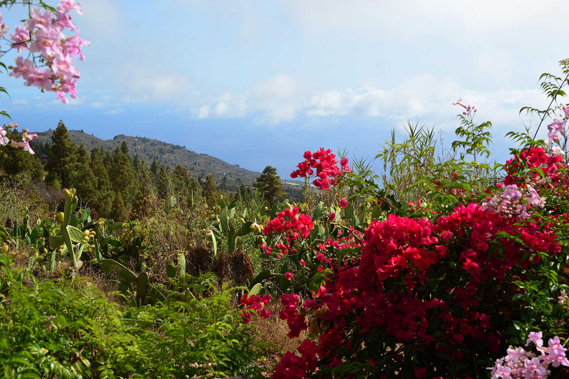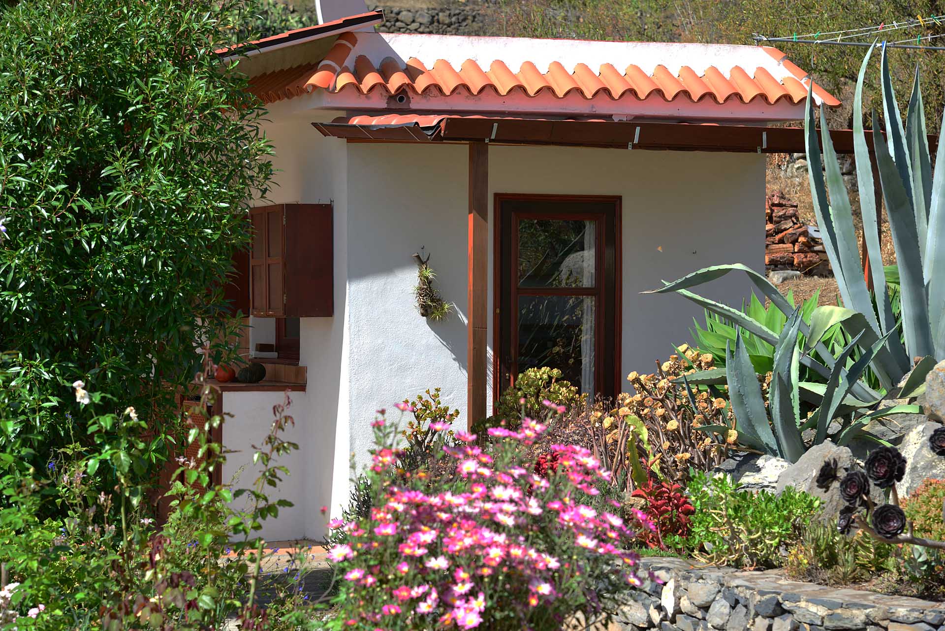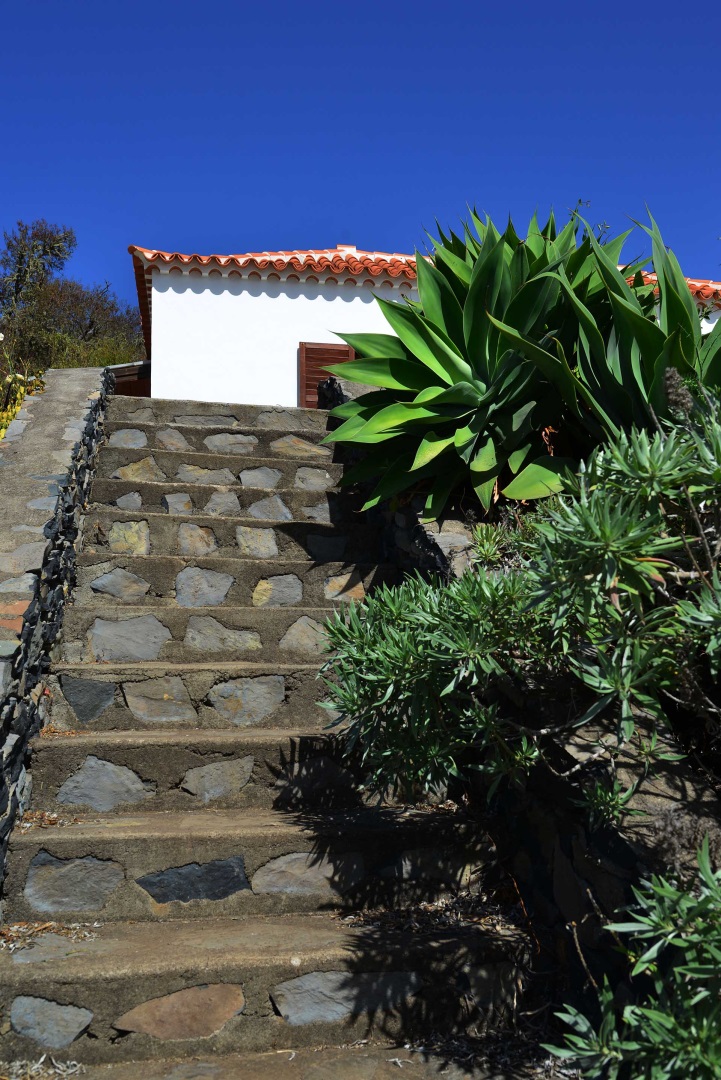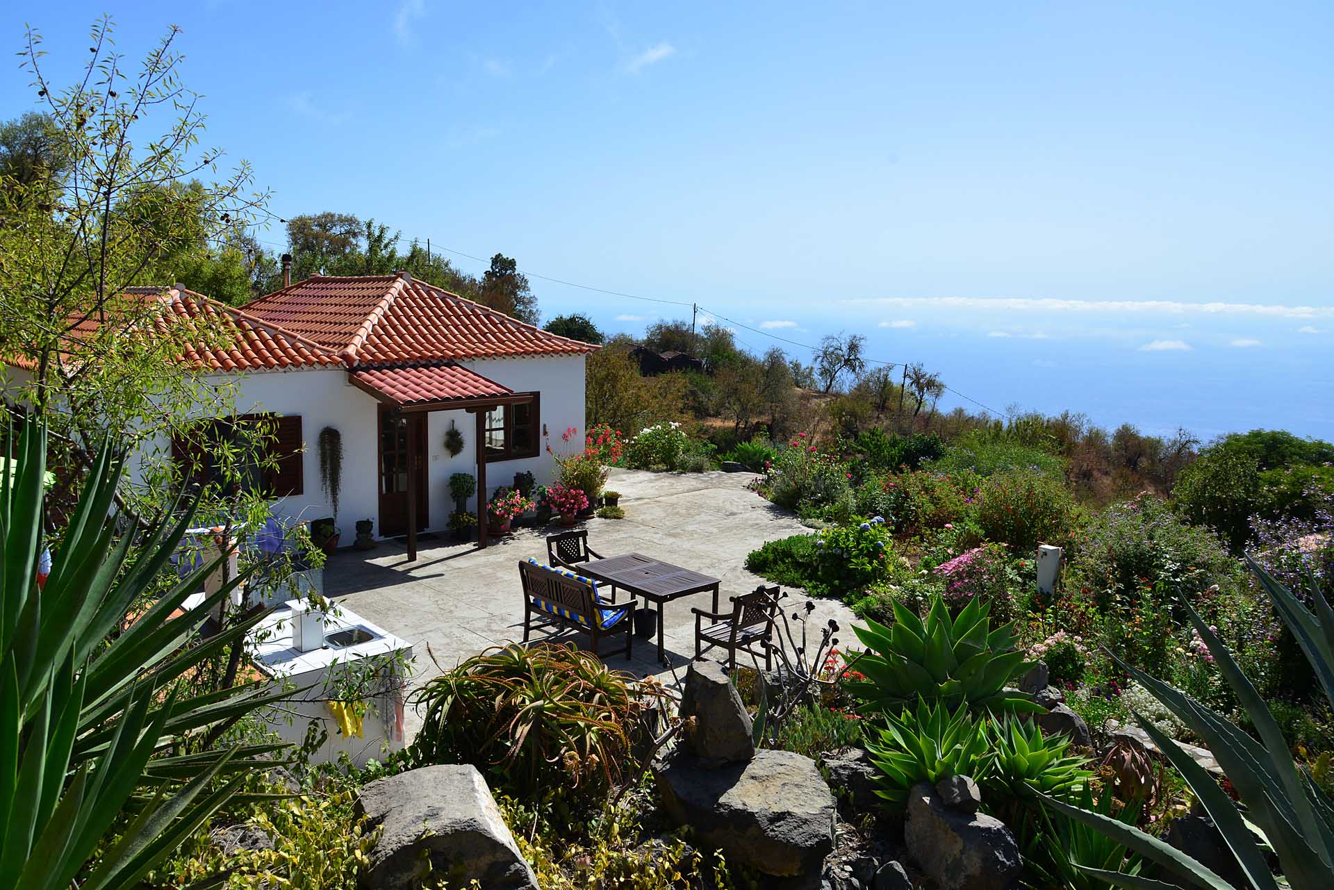 Der schön angelegte, große Garten (5.829 m²) besticht durch seine Vielfalt an Frucht- und Zierbäumen, die bereits stattliche Größe erreicht haben und einen gute Ernte bringen. Das Grundstück ist vielfältig gegliedert und bietet so immer neue Aus- und Anblicke, verwunschene Sitzplätze, Terrassen und Anbauflächen für Gemüse oder Kräuter. Immer wieder öffnet sich der Blick auf den Atlantik, von der Terrasse des Gästehauses 1 schweift der Blick über die Küste bis zum El Time.