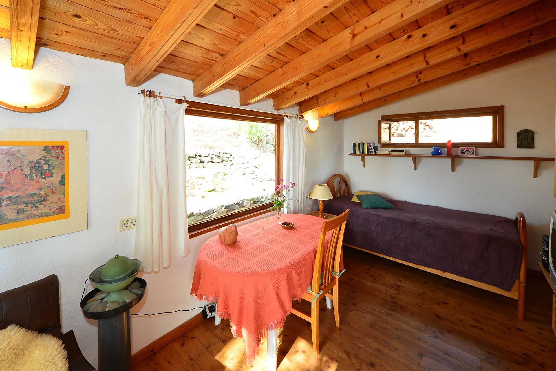 Dann sollten Sie sich dieses Objekt einmal näher ansehen. Die wunderschöne Finca besteht aus einem 1994 in kanarischem Stil gebauten Haupthaus (70,11 m² Grundfläche) mit sehr großzügiger Wohnküche, Schlafzimmer, Bad und Arbeits- oder weiterem Schlafzimmer, einem aus Natursteinen gebautem Gästehaus (52,9 m² Grundfläche) mit Wohnküche, Schlafzimmer und Bad, einem weiteren Gästehaus (32,97 m² Grundfläche) mit Wohn-Schlafraum, Bad und überdachter Außenküche sowie einem kleinen Studio (8,32 m² Grundfläche), das als Malatelier genutzt wurde.
