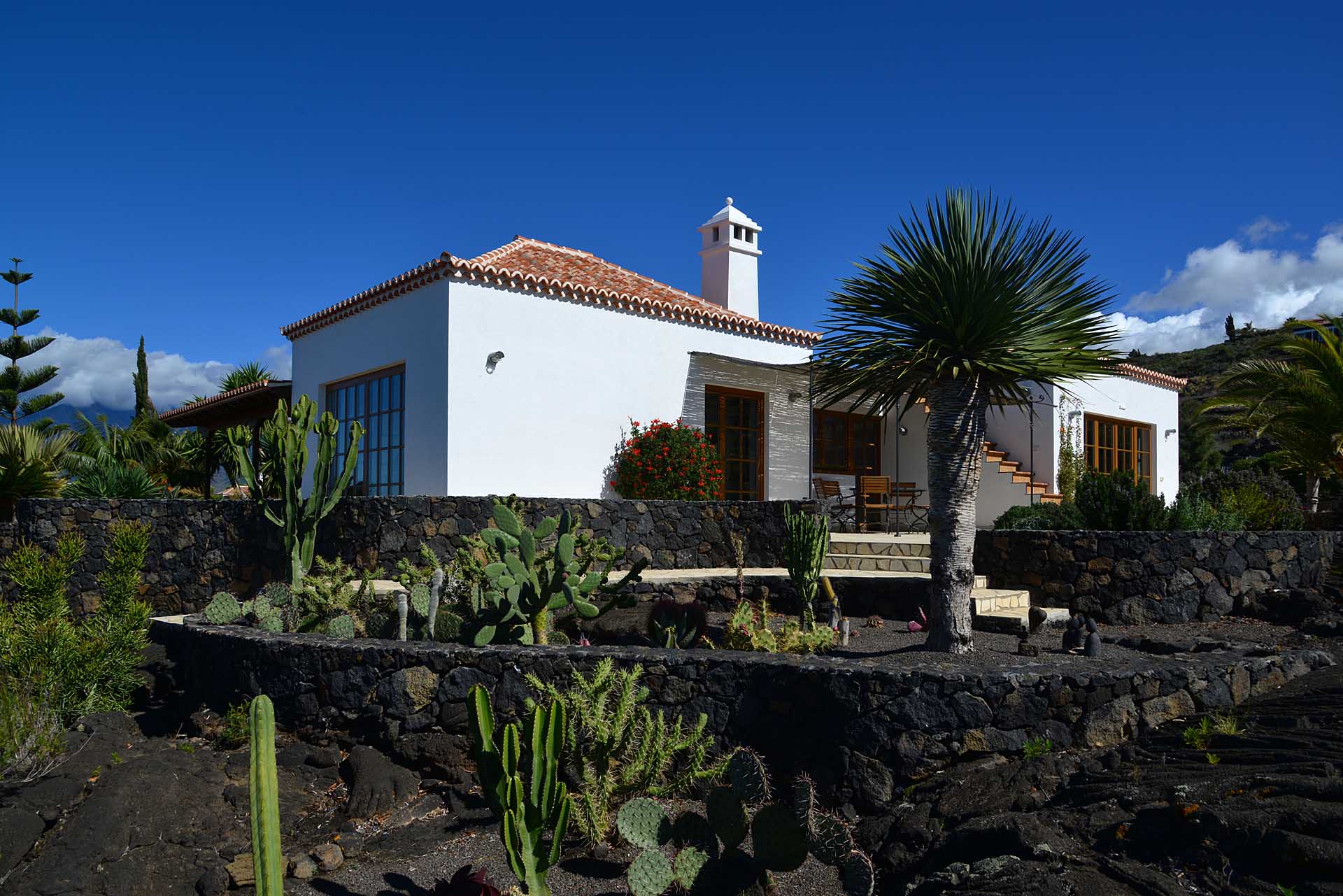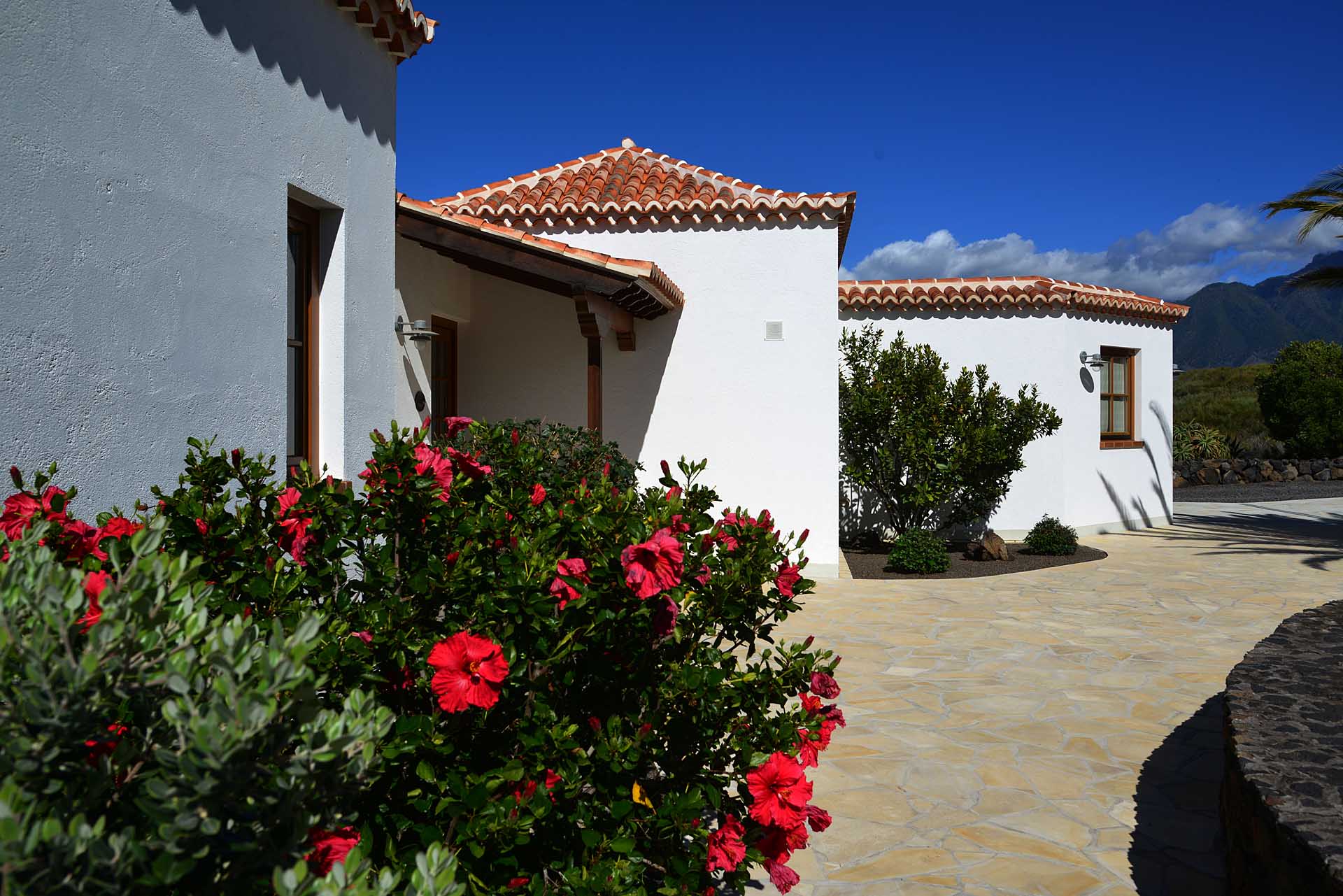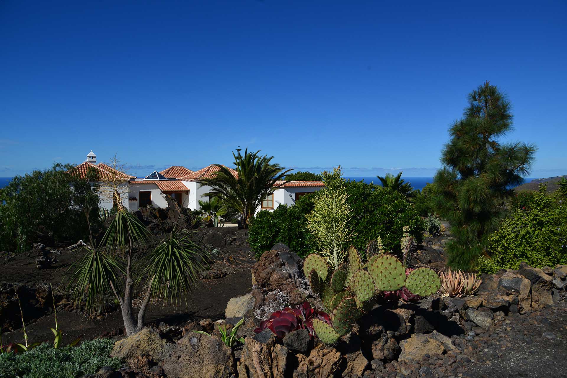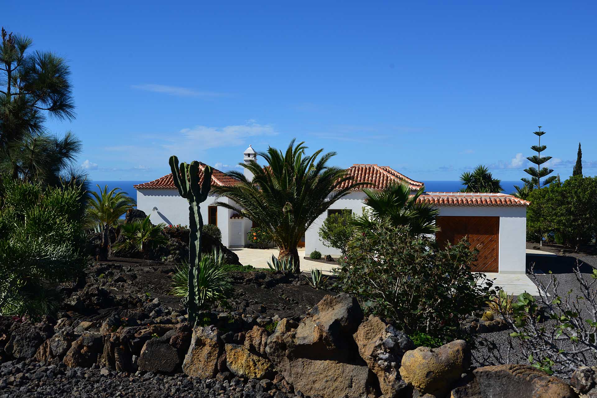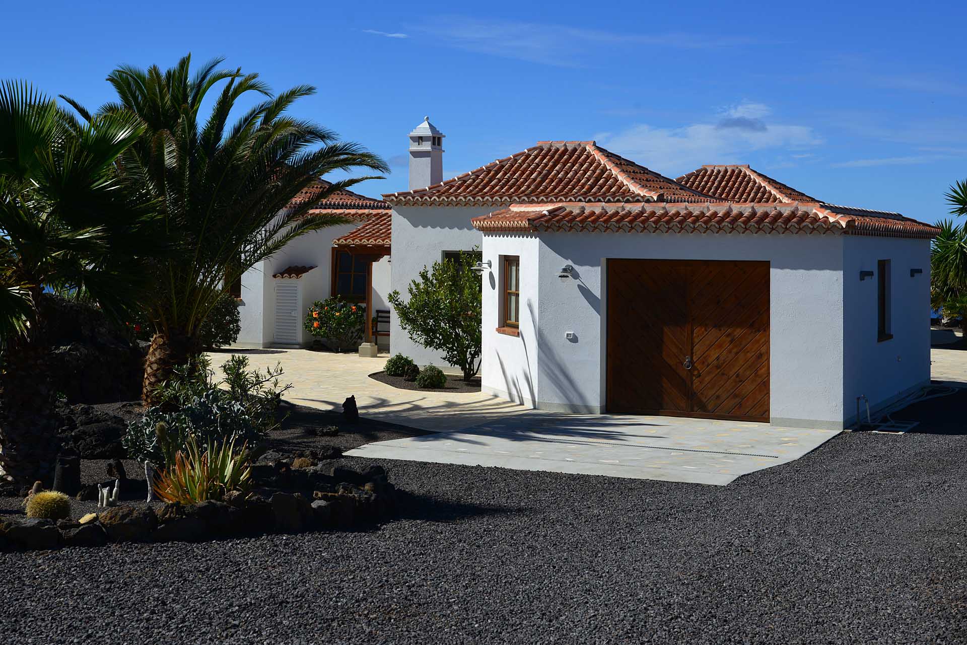 Wesentliches Gestaltungsmerkmal beim Entwurf des Grundrisses waren die Nischen für die Einbauschränke, die die kanarischen Holzdächer der Räume gut zur Geltung kommen lassen. Die große Garage lässt sich neben der Einstellmöglichkeit für ein Fahrzeug auch als Hobby-Werkstatt und zum Abstellen von Gartengeräten nutzen. Die Gartenanlage fügt sich harmonisch in die ursprüngliche, vulkanische, mit Ginster und kanarischem Lavendel bewachsene Landschaft ein. Die lebhafte Mischung aus Palmen, teils blühenden Bäumen und Sträuchern, Kakteen sowie endemischen Pflanzen ermöglicht die pflegeleichte Unterhaltung des Gartens. Eine besondere Attraktion stellt die überall sichtbare Stricklava dar, die in privaten Gärten nur selten anzutreffen ist.