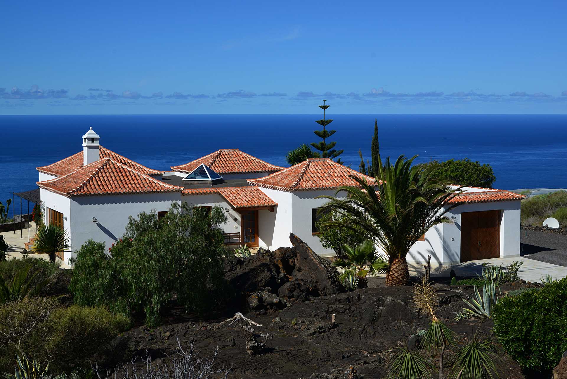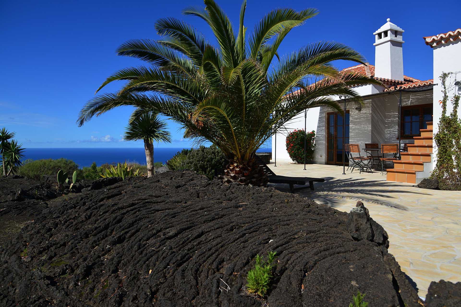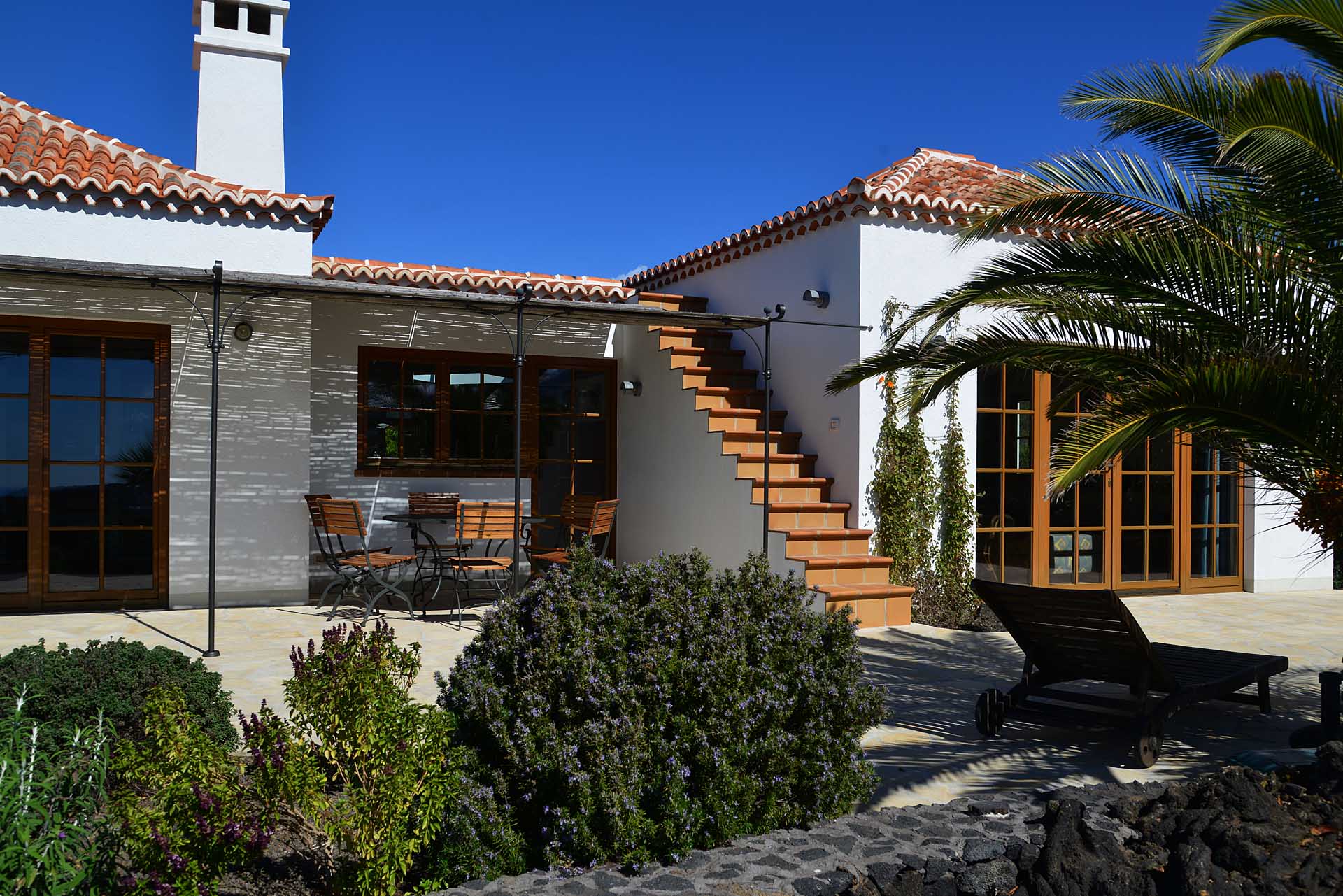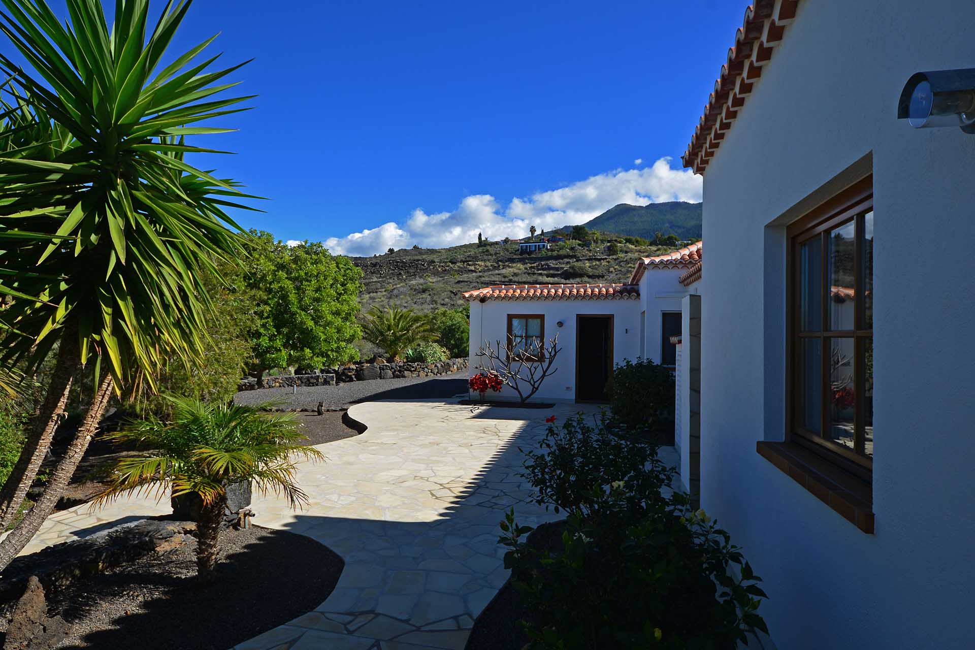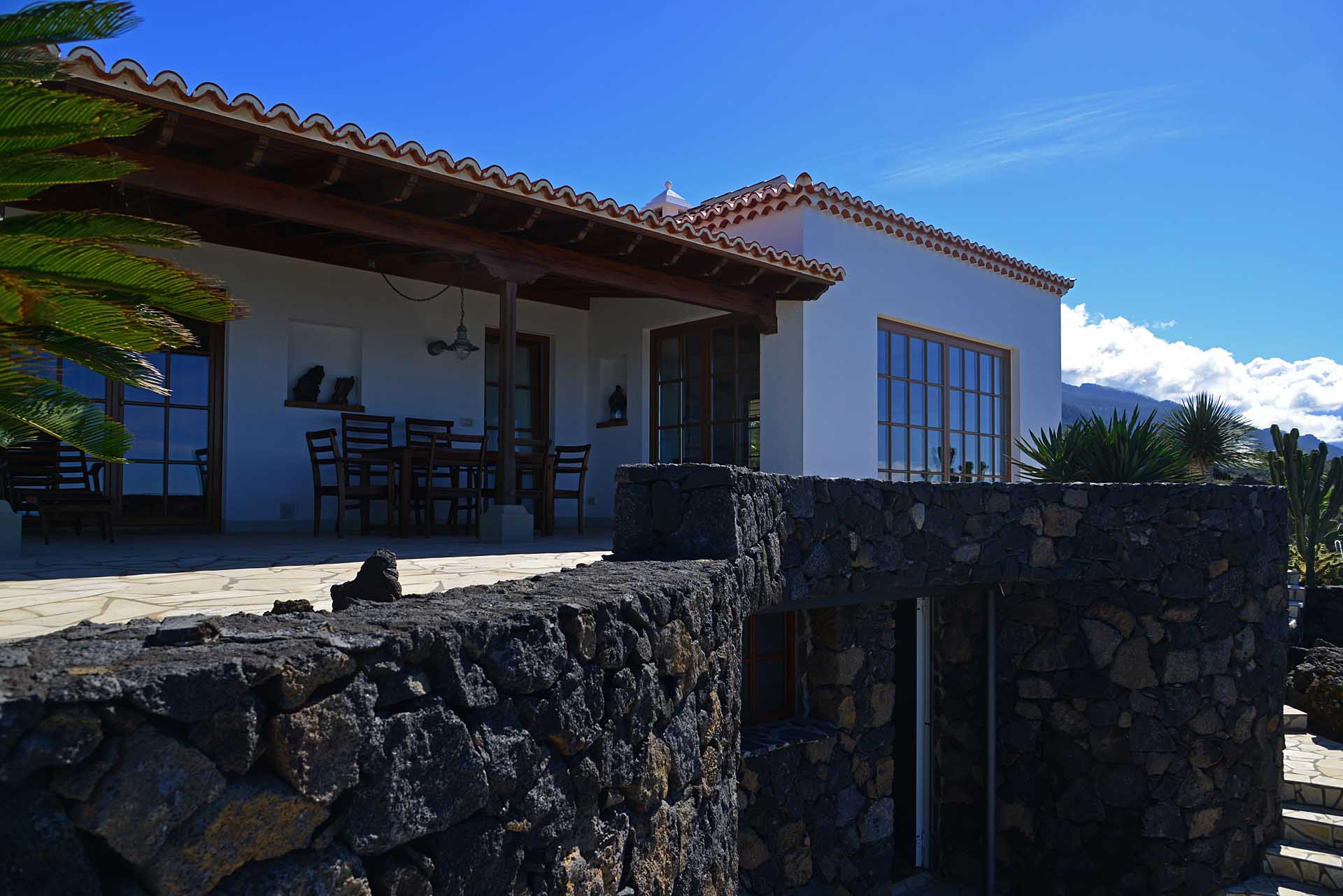 Wesentliches Gestaltungsmerkmal beim Entwurf des Grundrisses waren die Nischen für die Einbauschränke, die die kanarischen Holzdächer der Räume gut zur Geltung kommen lassen. Die große Garage lässt sich neben der Einstellmöglichkeit für ein Fahrzeug auch als Hobby-Werkstatt und zum Abstellen von Gartengeräten nutzen. Die Gartenanlage fügt sich harmonisch in die ursprüngliche, vulkanische, mit Ginster und kanarischem Lavendel bewachsene Landschaft ein. Die lebhafte Mischung aus Palmen, teils blühenden Bäumen und Sträuchern, Kakteen sowie endemischen Pflanzen ermöglicht die pflegeleichte Unterhaltung des Gartens. Eine besondere Attraktion stellt die überall sichtbare Stricklava dar, die in privaten Gärten nur selten anzutreffen ist.
