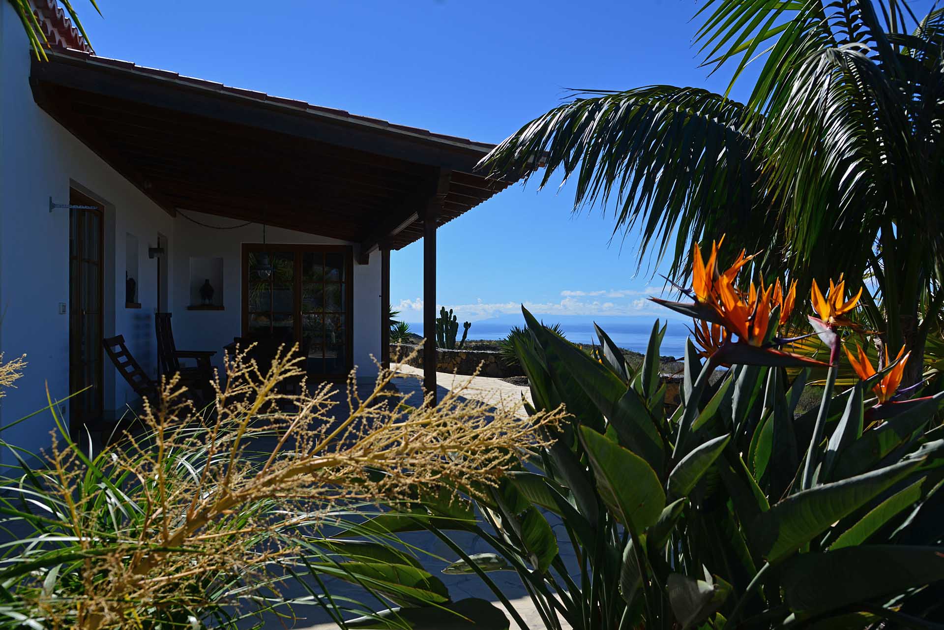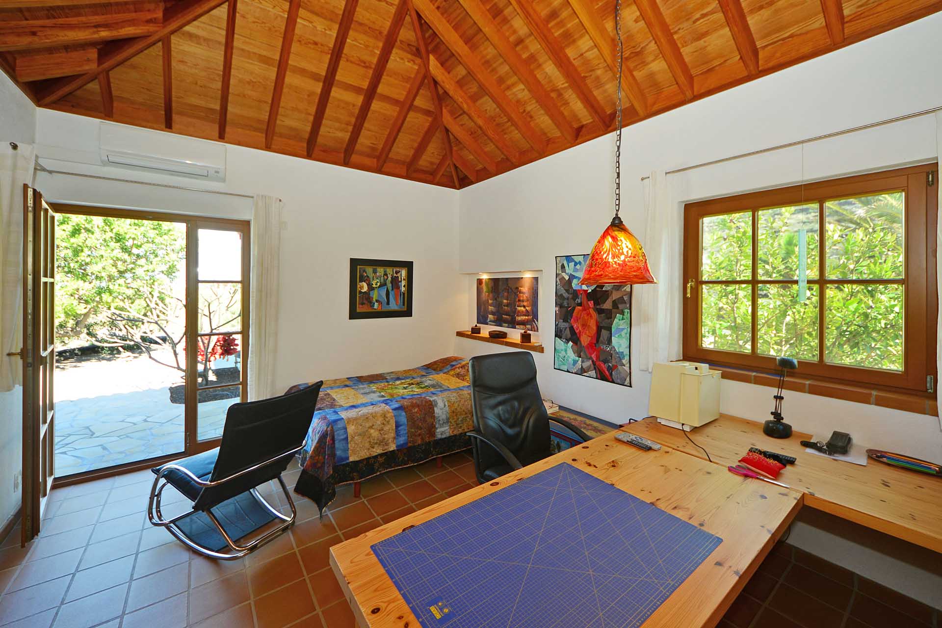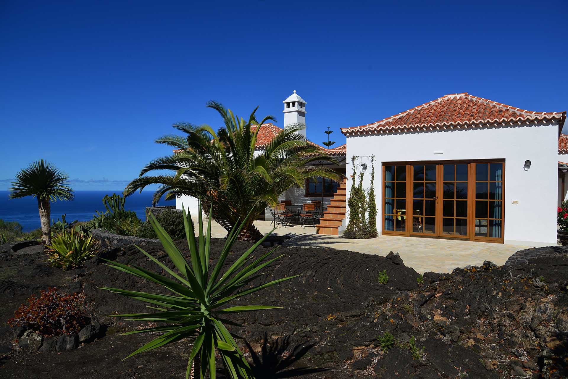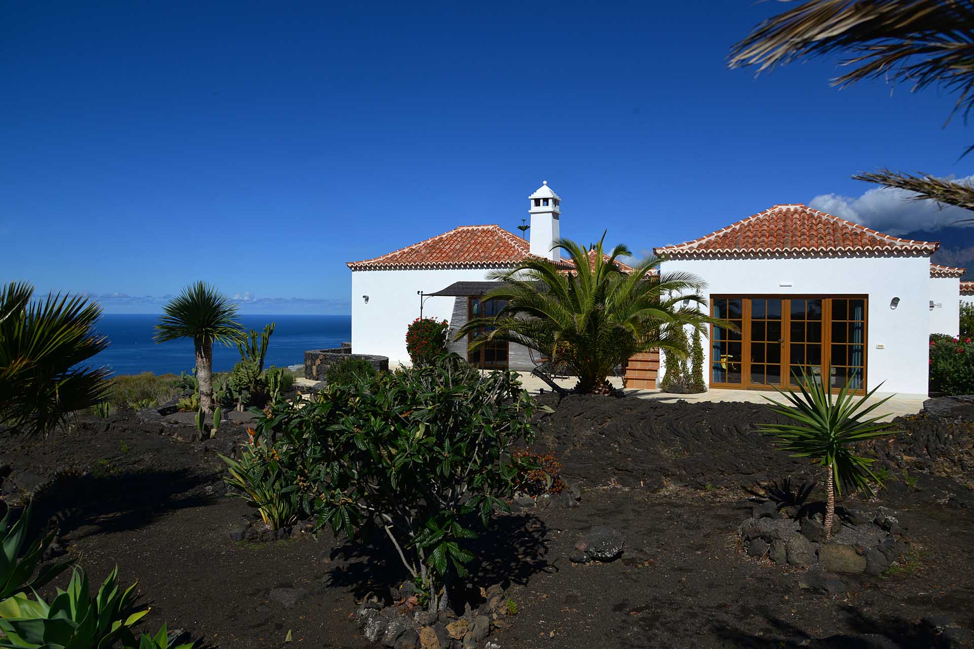 Wesentliches Gestaltungsmerkmal beim Entwurf des Grundrisses waren die Nischen für die Einbauschränke, die die kanarischen Holzdächer der Räume gut zur Geltung kommen lassen. Die große Garage lässt sich neben der Einstellmöglichkeit für ein Fahrzeug auch als Hobby-Werkstatt und zum Abstellen von Gartengeräten nutzen. Die Gartenanlage fügt sich harmonisch in die ursprüngliche, vulkanische, mit Ginster und kanarischem Lavendel bewachsene Landschaft ein. Die lebhafte Mischung aus Palmen, teils blühenden Bäumen und Sträuchern, Kakteen sowie endemischen Pflanzen ermöglicht die pflegeleichte Unterhaltung des Gartens. Eine besondere Attraktion stellt die überall sichtbare Stricklava dar, die in privaten Gärten nur selten anzutreffen ist.