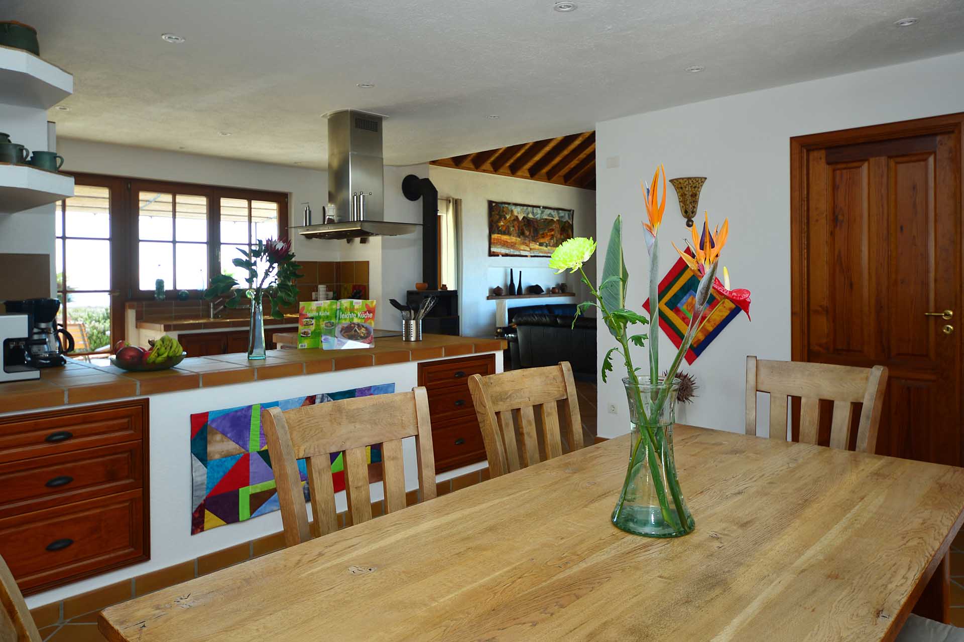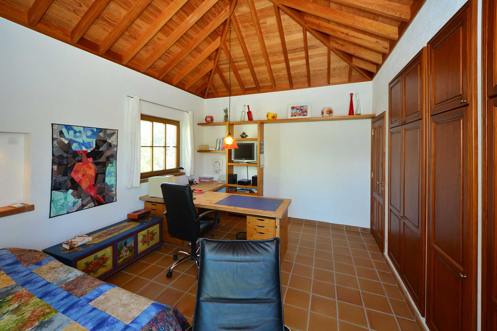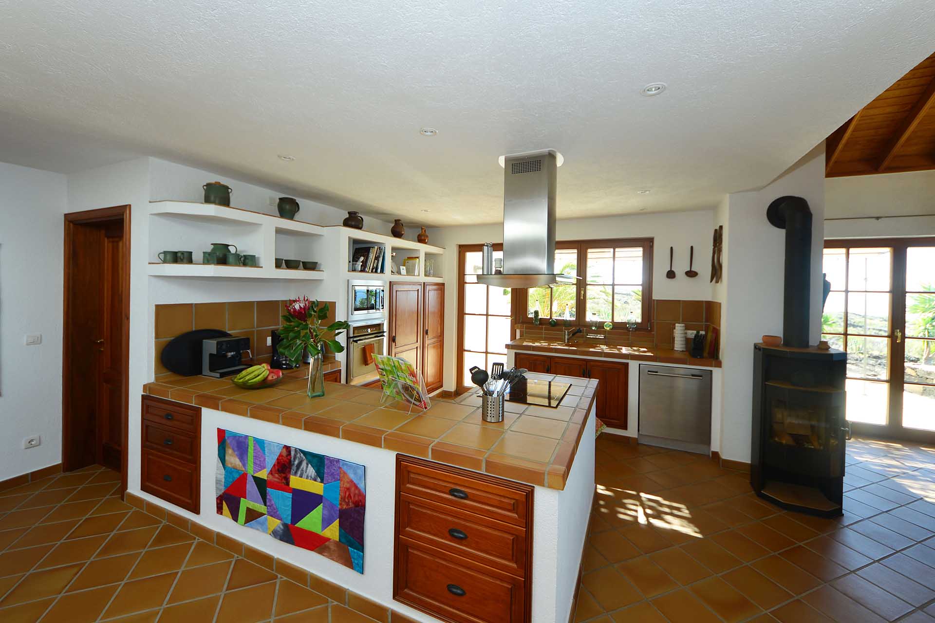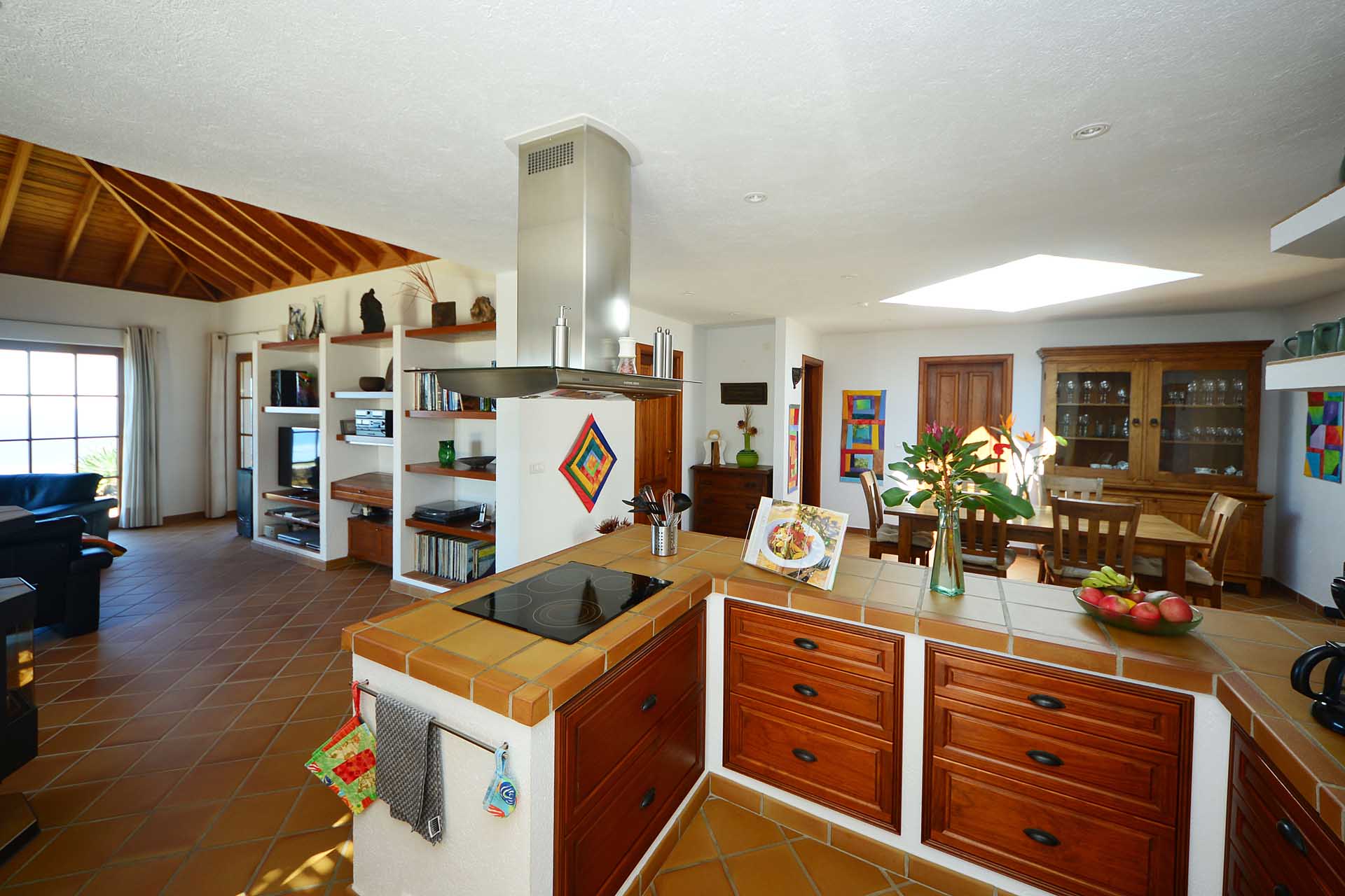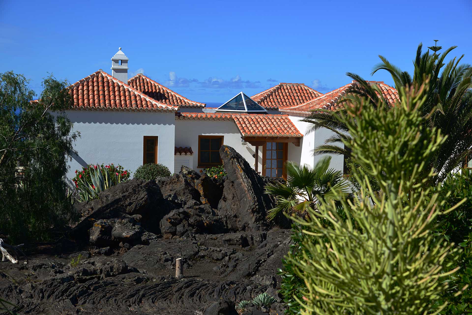 Wesentliches Gestaltungsmerkmal beim Entwurf des Grundrisses waren die Nischen für die Einbauschränke, die die kanarischen Holzdächer der Räume gut zur Geltung kommen lassen. Die große Garage lässt sich neben der Einstellmöglichkeit für ein Fahrzeug auch als Hobby-Werkstatt und zum Abstellen von Gartengeräten nutzen. Die Gartenanlage fügt sich harmonisch in die ursprüngliche, vulkanische, mit Ginster und kanarischem Lavendel bewachsene Landschaft ein. Die lebhafte Mischung aus Palmen, teils blühenden Bäumen und Sträuchern, Kakteen sowie endemischen Pflanzen ermöglicht die pflegeleichte Unterhaltung des Gartens. Eine besondere Attraktion stellt die überall sichtbare Stricklava dar, die in privaten Gärten nur selten anzutreffen ist.