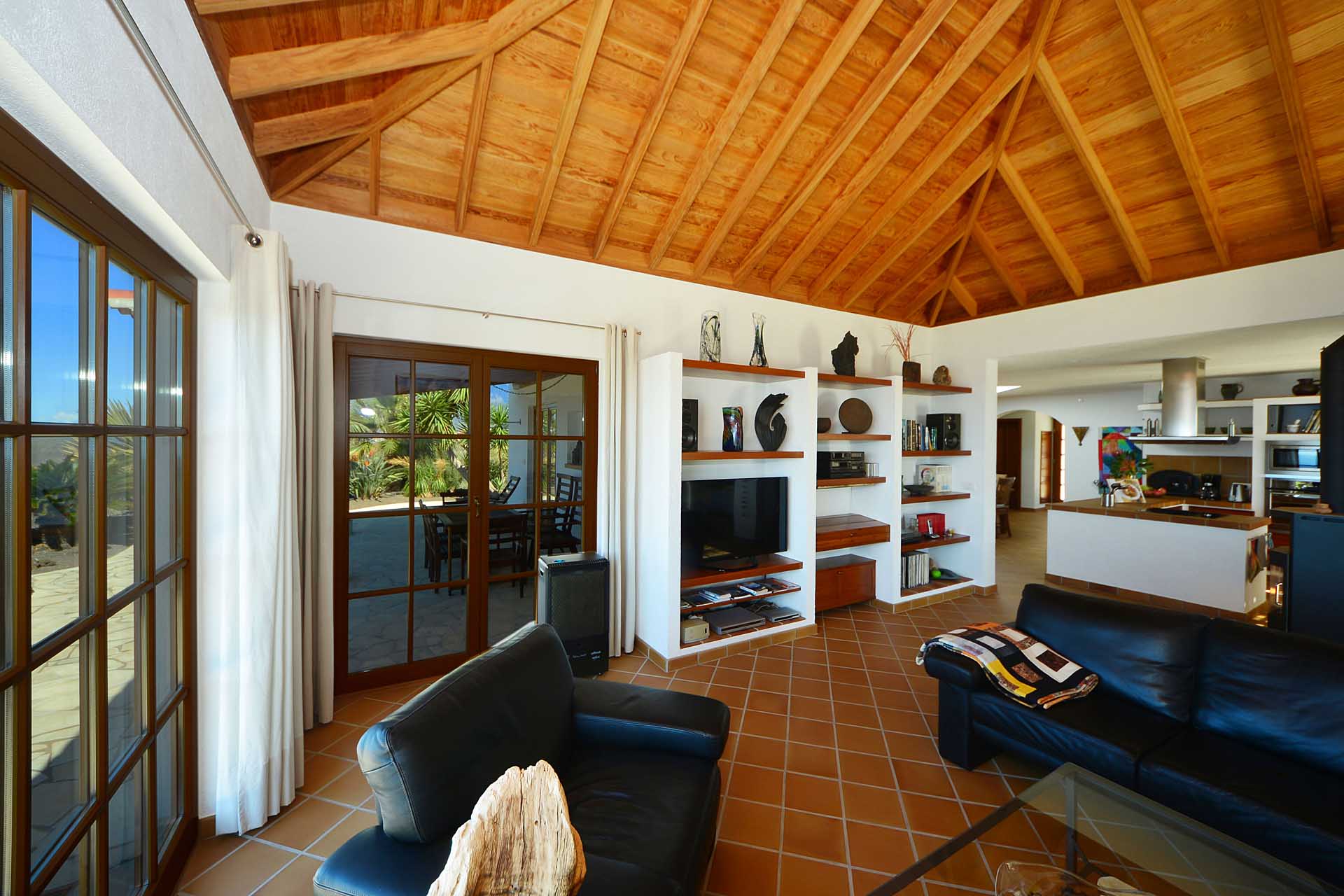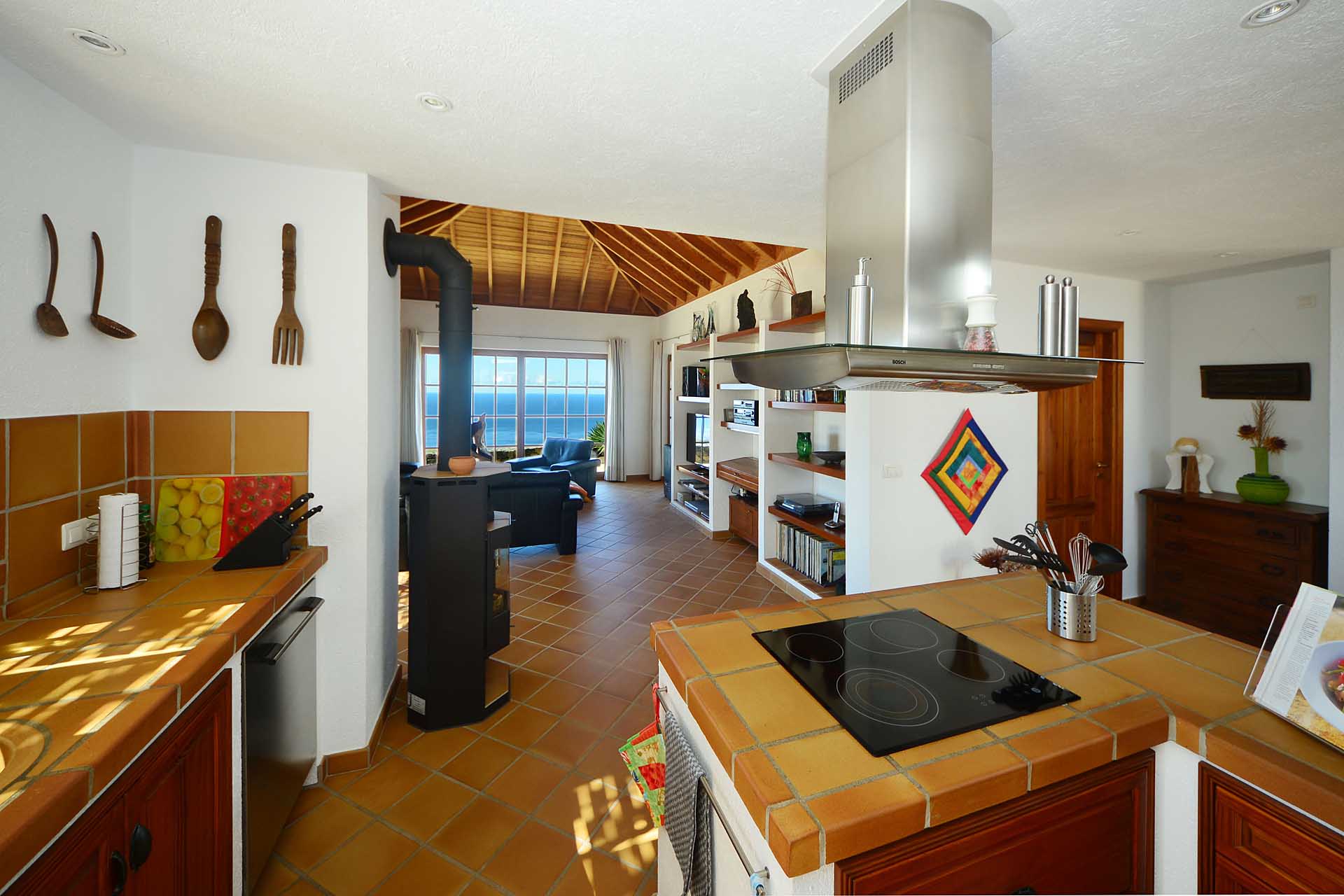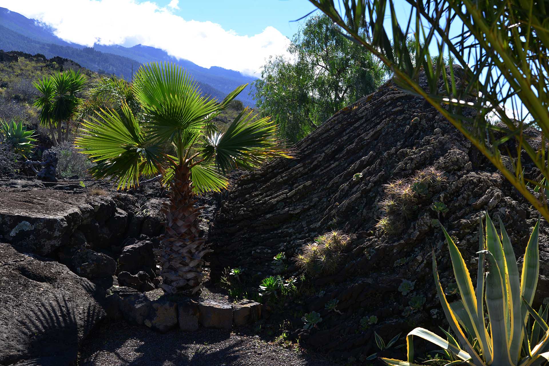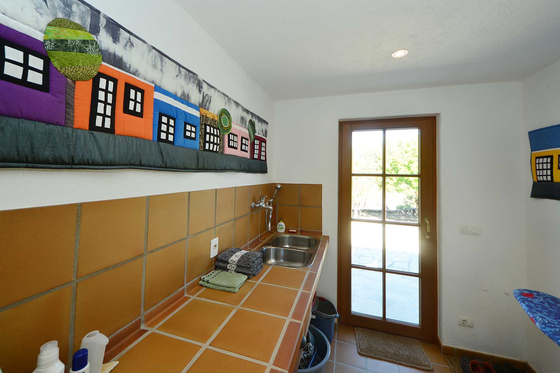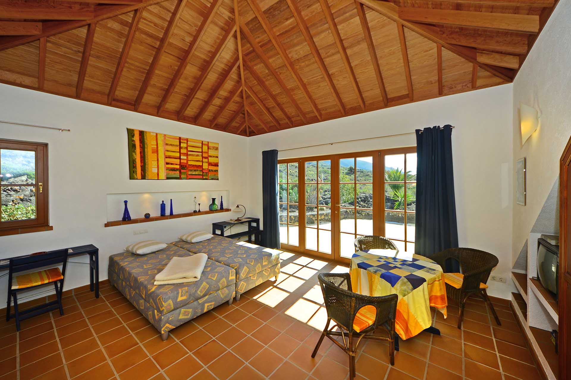 Wesentliches Gestaltungsmerkmal beim Entwurf des Grundrisses waren die Nischen für die Einbauschränke, die die kanarischen Holzdächer der Räume gut zur Geltung kommen lassen. Die große Garage lässt sich neben der Einstellmöglichkeit für ein Fahrzeug auch als Hobby-Werkstatt und zum Abstellen von Gartengeräten nutzen. Die Gartenanlage fügt sich harmonisch in die ursprüngliche, vulkanische, mit Ginster und kanarischem Lavendel bewachsene Landschaft ein. Die lebhafte Mischung aus Palmen, teils blühenden Bäumen und Sträuchern, Kakteen sowie endemischen Pflanzen ermöglicht die pflegeleichte Unterhaltung des Gartens. Eine besondere Attraktion stellt die überall sichtbare Stricklava dar, die in privaten Gärten nur selten anzutreffen ist.