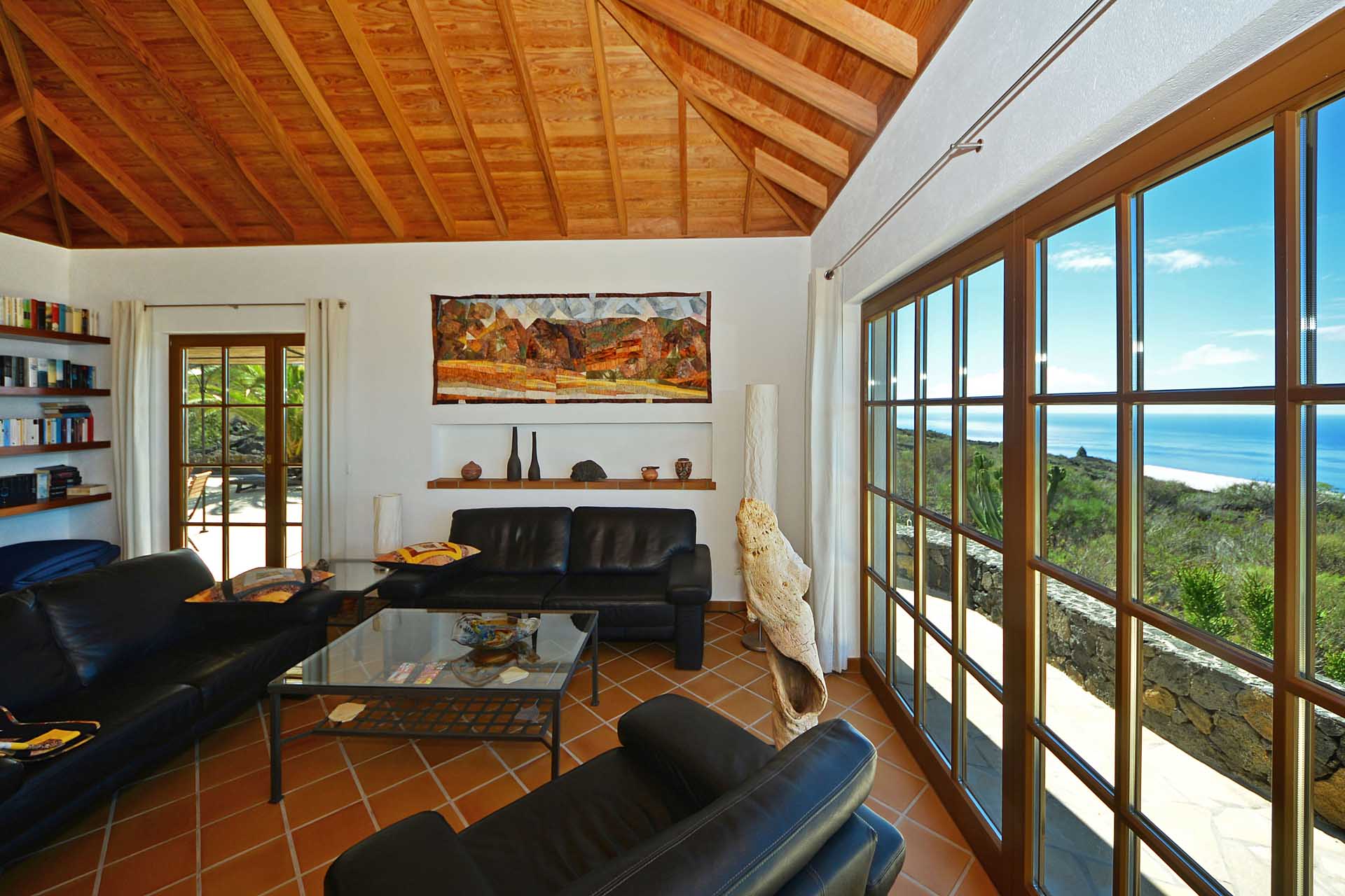Sie lieben den herrlichen Atlantikblick, die einmalige Ruhe der nahezu völligen Alleinlage, die von Sukkulenten geprägte, exotisch-tropische anmutende Atmosphäre der ariden Zone La Palmas, die ganzjährige Wärme, die Vorzüge kanarisch geprägter Architektur in Kombination eines modernen und hellen Grundrisses? Sie möchten auch bei dauerhaftem Aufenthalt genügend Platz für kreative Tätigkeiten haben und nicht auf einen eigenen Gästebereich verzichten? Dann sollten Sie sich diese erst 2004 gebaute Villa einmal ansehen.
