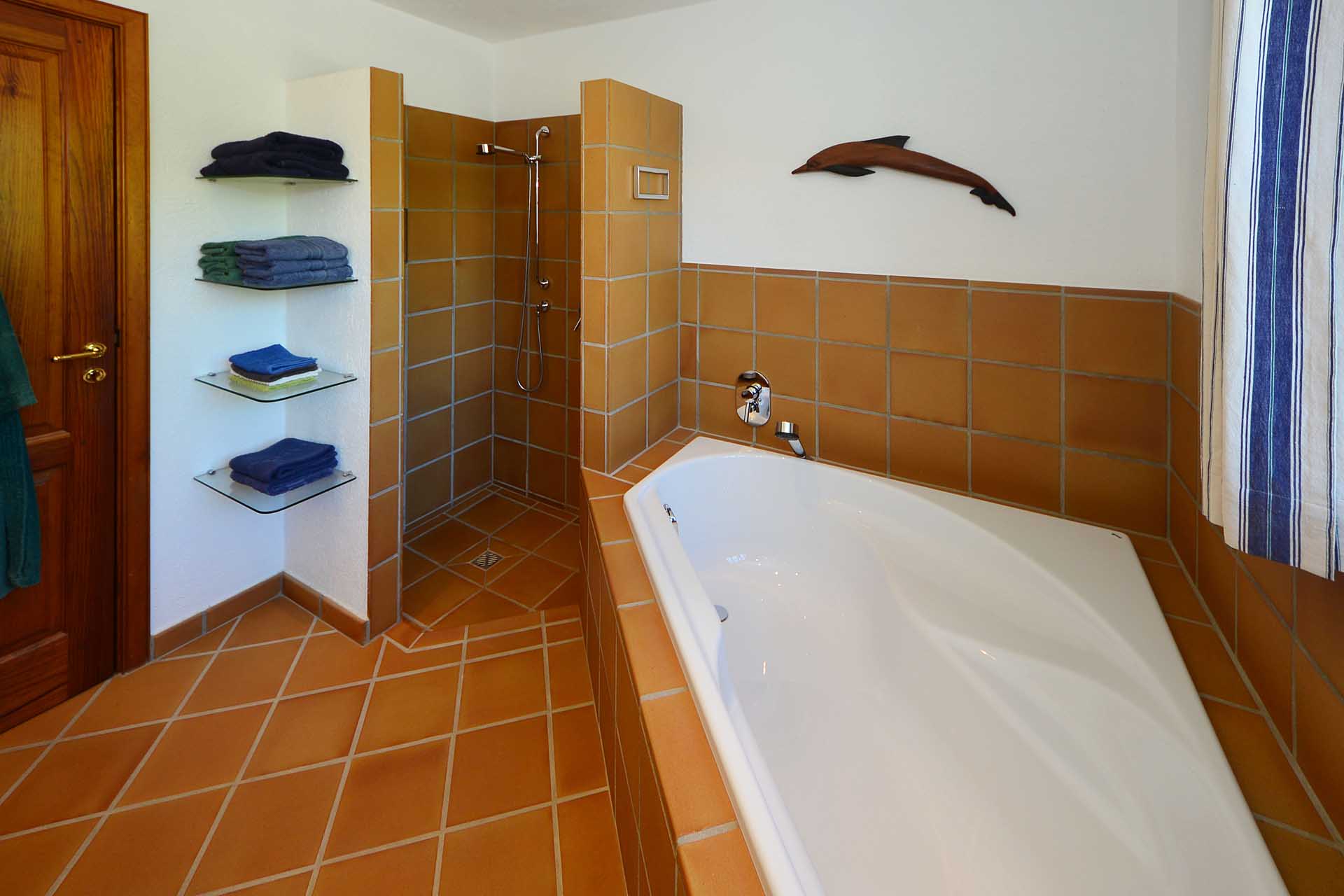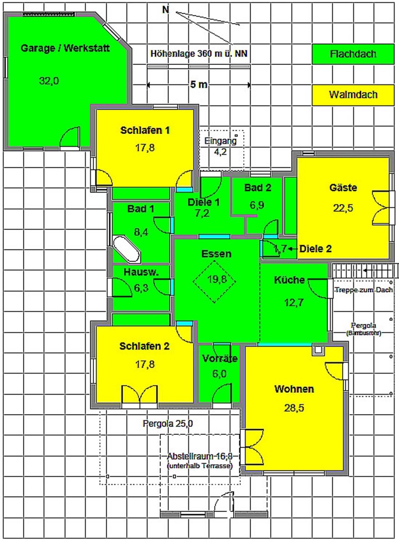 Der nach Süden ausgerichtete Gästebereich mit eigenem Duschbad und kleiner Küchenzeile kann auch getrennt, z.B. zur Unterbringung einer Pflegeperson genutzt werden.