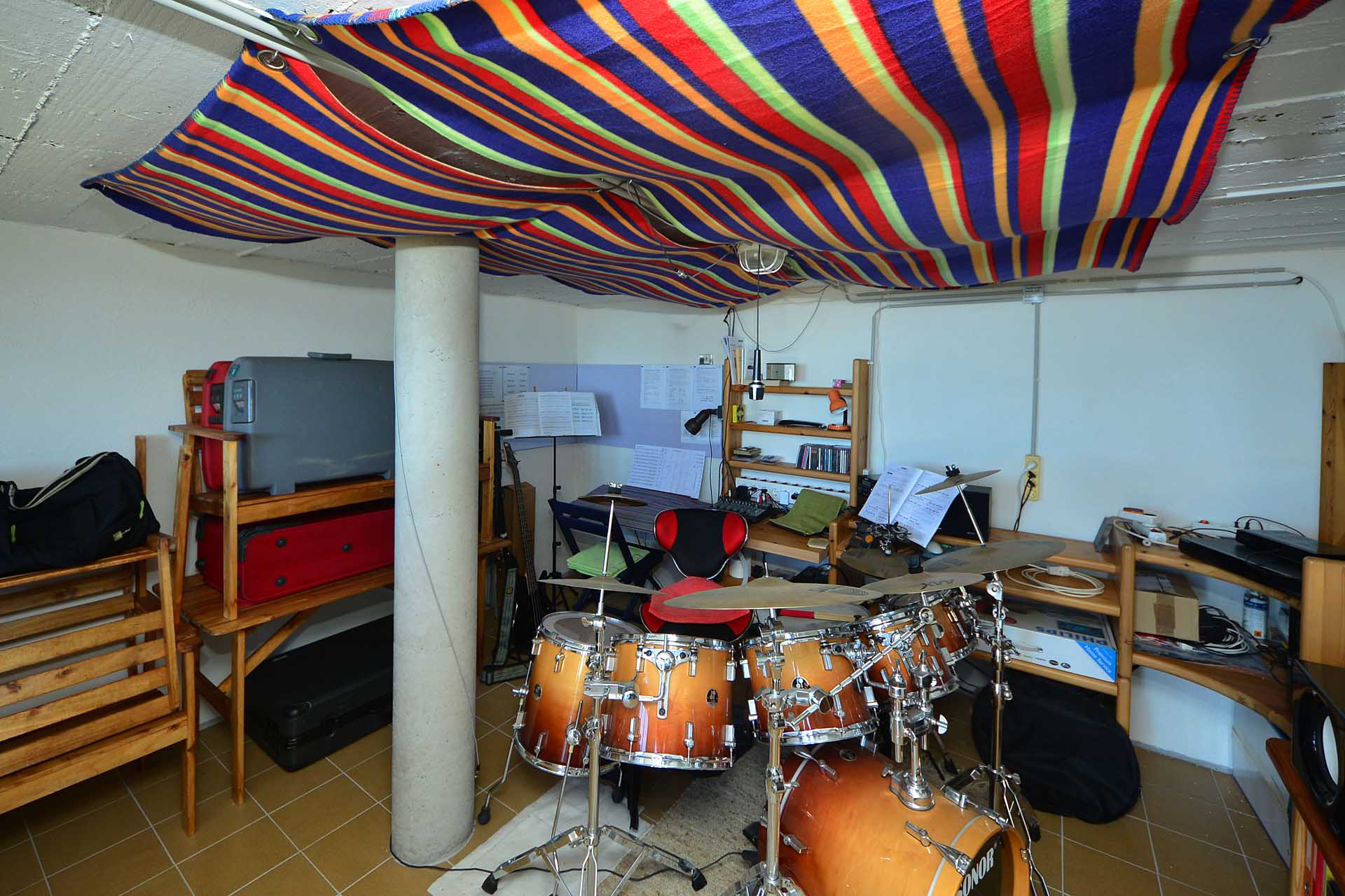 Auf der Westterrasse befindet sich eine große Pergola mit festem Dach. Die Küchenterrasse wird von einer luftigen Pergola aus stabilen Bambusrohrmatten beschattet. An Nebenräumen gibt es einen Vorratsraum, einen Hauswirtschaftsraum mit Ausgang zum Hofbereich sowie unterhalb der Westterrasse einen Hobbyraum, der auch als weiteres Schlafzimmer genutzt werden kann und der derzeit als Musikstudio dient.