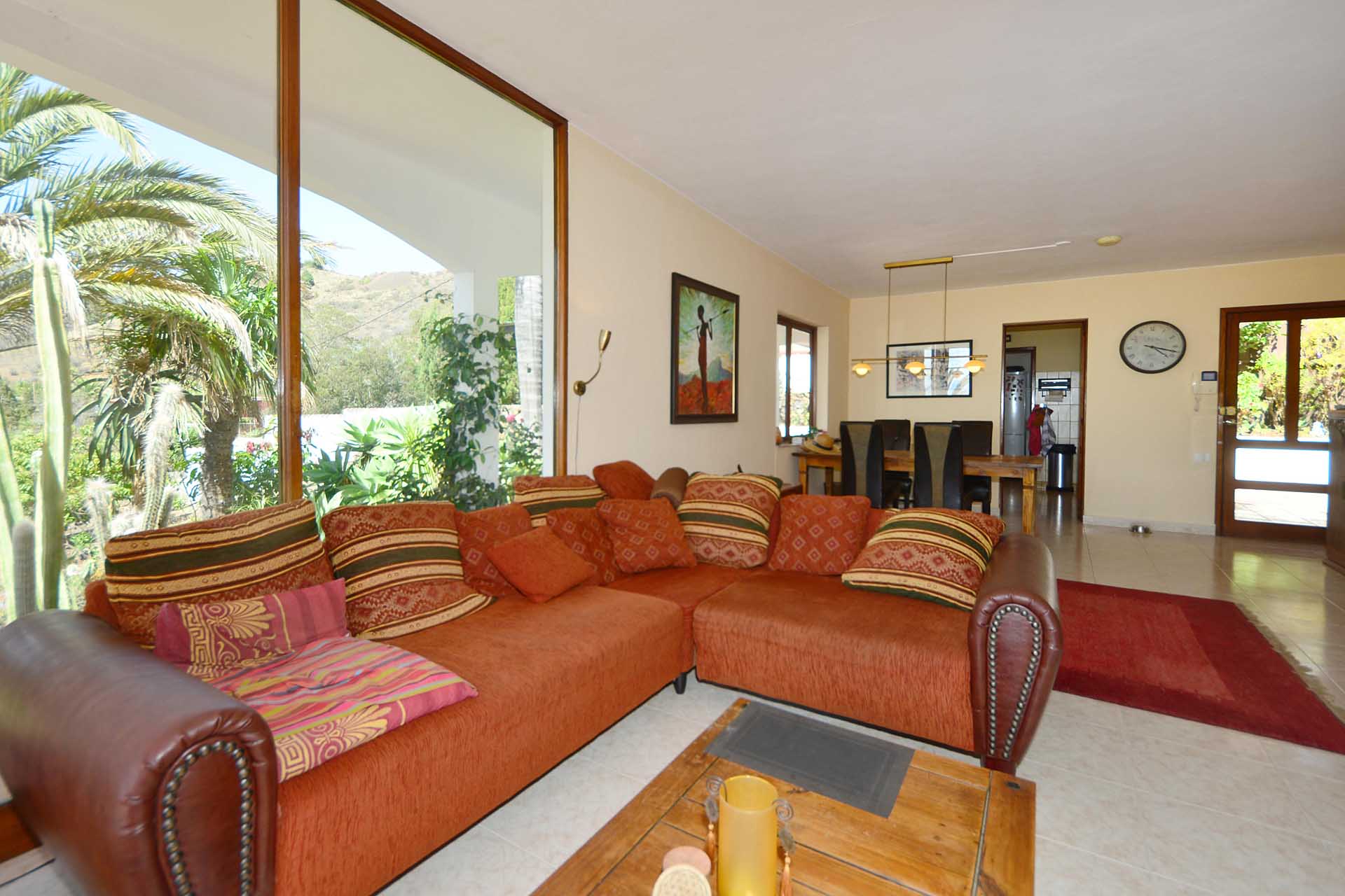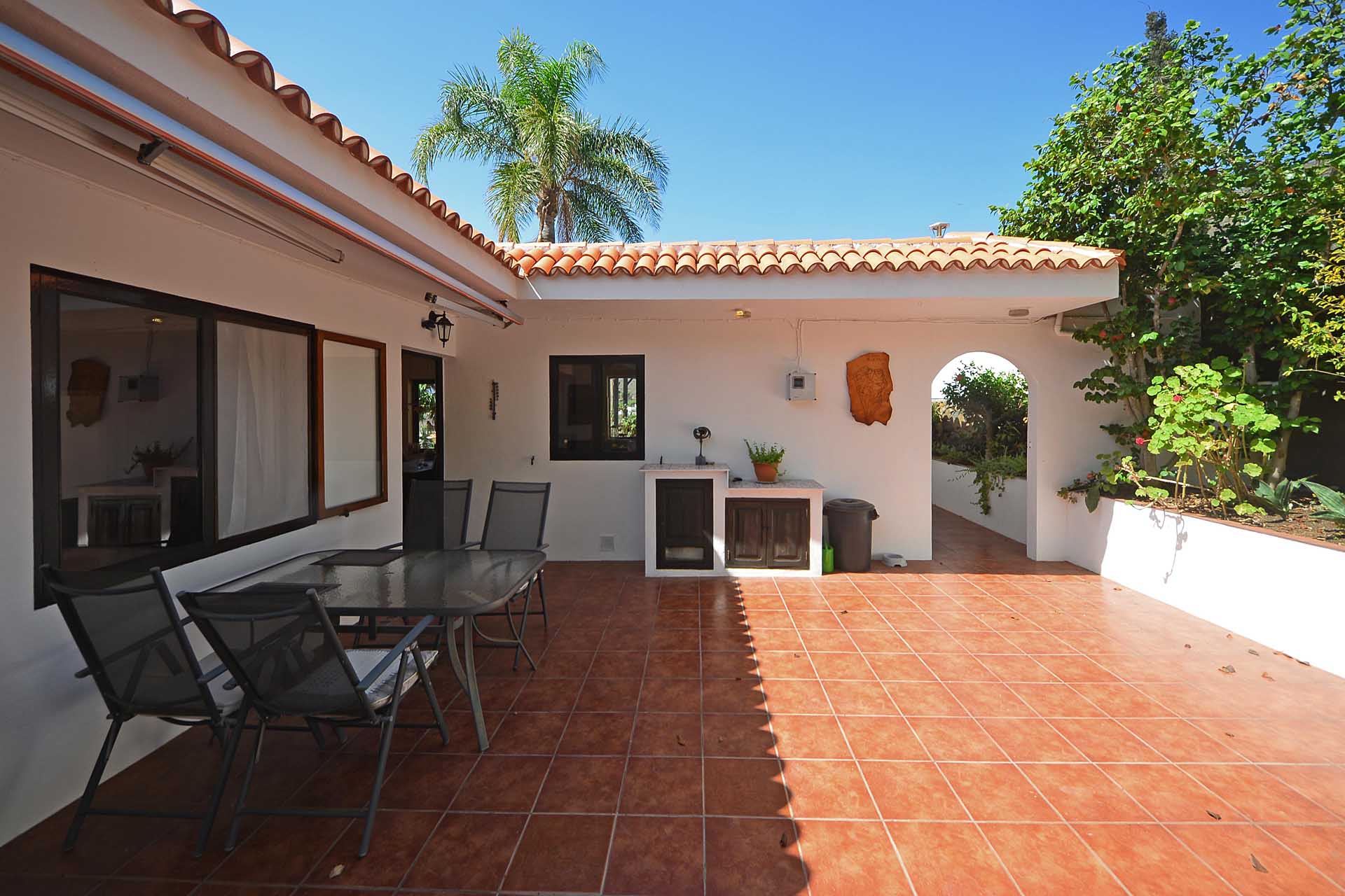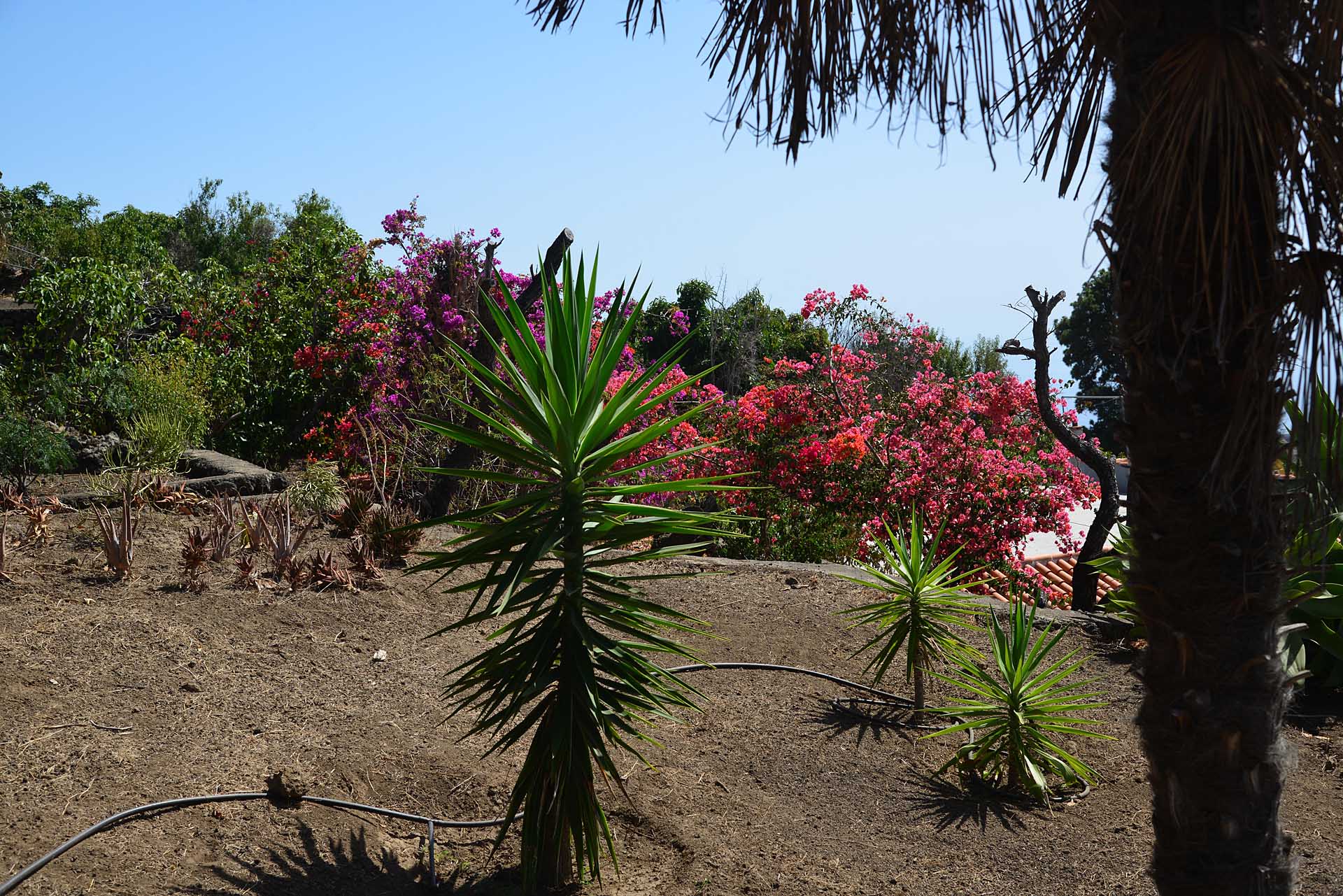 Der Garten ist mit altem Baum- und Palmenbestand sowie vielen Kakteen, Sukkulenten sowie beeindruckenden Bougainville gut eingewachsen ist und mit einer automatischen Bewässerung pflegeleicht angelegt wurde. Das Grundstück ist teilweise mit Mauern und teilweise mit Zäunen gut eingefriedet und bietet absolute Privatsphäre. Für Sie und Ihre Gäste stehen drei Parkplätze zur Verfügung, der zusätzliche Carport ist mit einem fernbedienbaren Automatiktor ausgestattet.