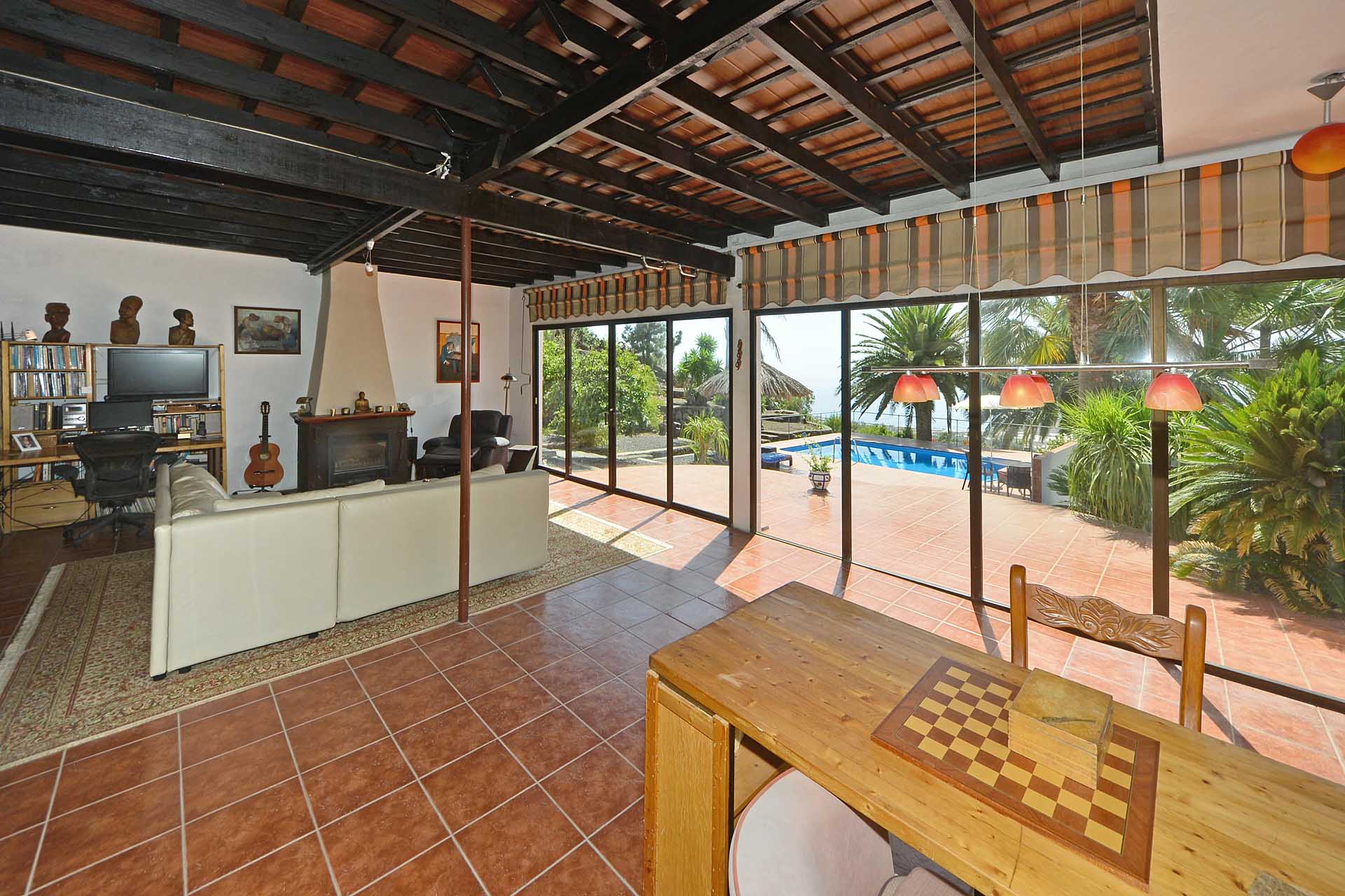 Die sehr großzügige Villa wurde 2016 vollständig renoviert und bietet Ihnen und Ihren Freunden oder der Familie sehr viel Platz. Das Haupthaus betreten Sie durch das Wohn- und Esszimmer, das viel Platz und einen herrlichen Panoramablick auf den Atlantik bietet. Es erschließt an der einen Seite eine Küche mit separater Speisekammer/Hauswirtschaftsraum und bietet an der anderen Seite freien Zugang zu der sehr großen, teilweise überdachten Terrasse mit extra Aussichtsterrasse für den Sundowner. Außerdem gelangen Sie in einen Flur der das Gästeschlafzimmer, das Gästebad und das Masterschlafzimmer mit Bad on Suite sowie ein Arbeits- oder Musikzimmer und die sehr großzügige Bibliothek mit fantastischem Meerblick und offenem Kamin.