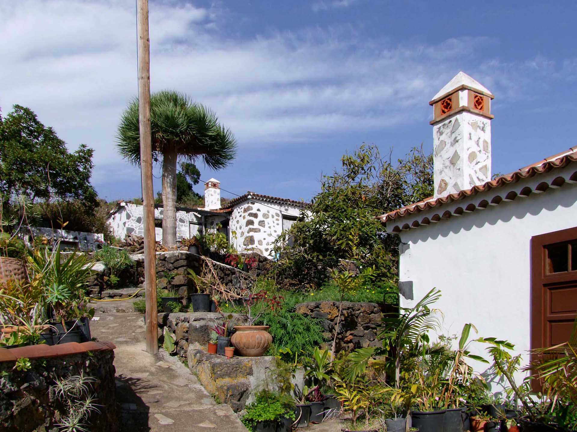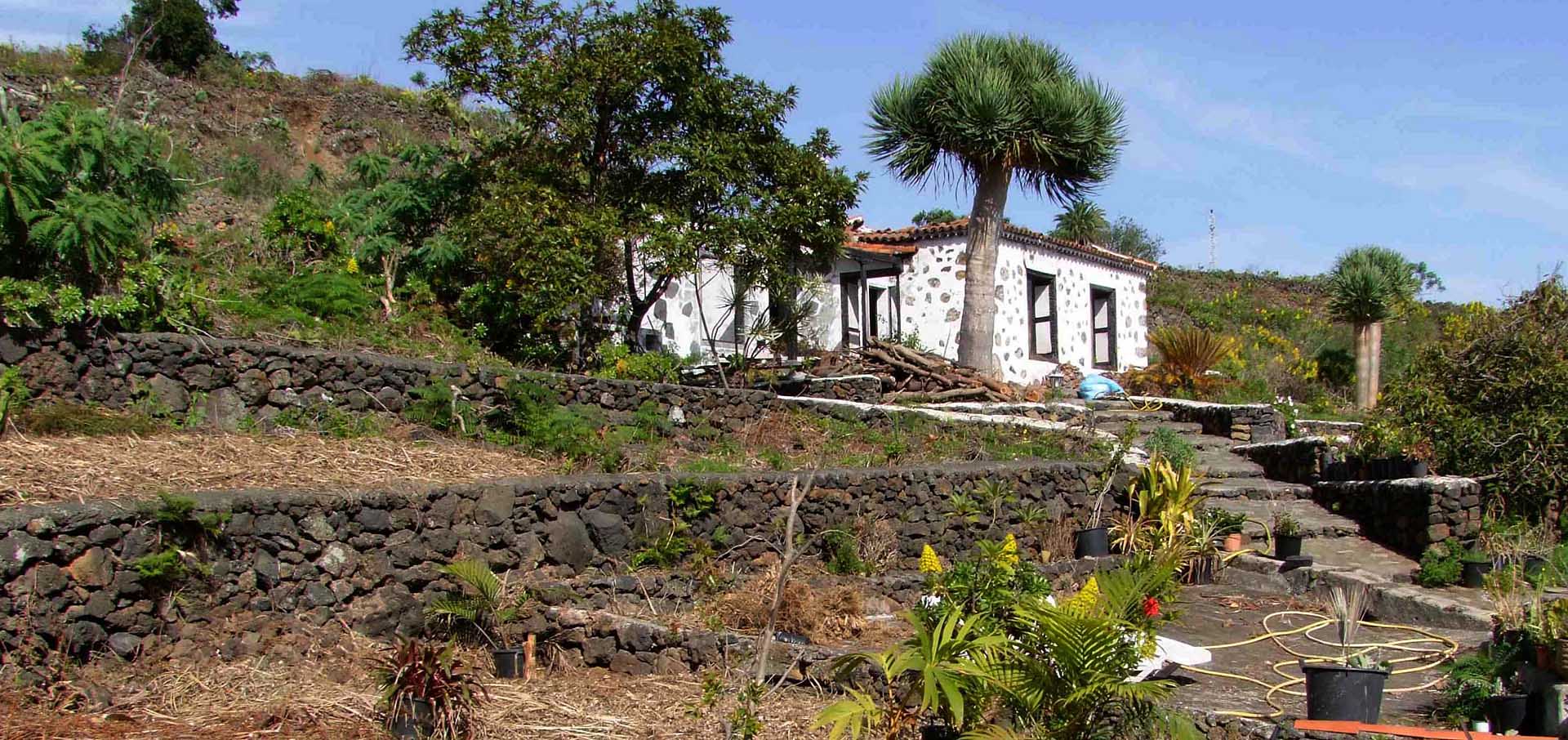 Das Anwesen beherbergt auf einem rund 10.000 m² großen, überwiegend ebenen und sehr gut erschlossenen Grundstück ein im Jahr 2002/3 vollständig sanierten, altkanarischen Wohnhaus (73 m² Grundfläche), ein durch Brand beschädigtes weiteres Wohnhaus (66 m² Grundfläche) und zwei alte, landwirtschaftliche Gebäude (26 und 30 m² Grundfläche).