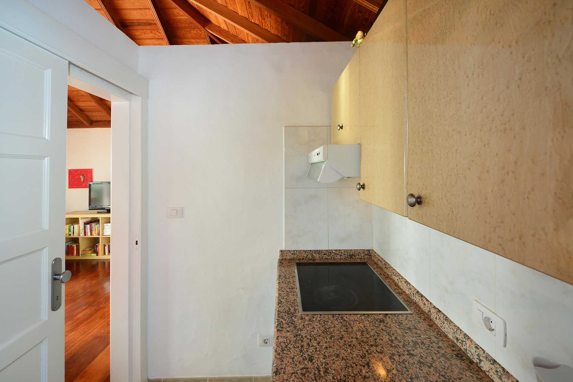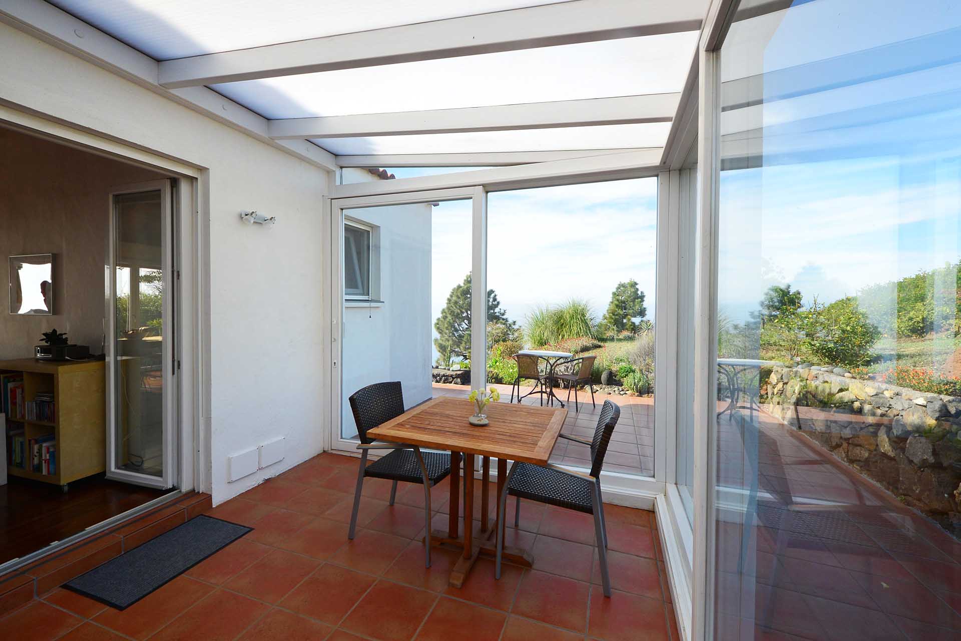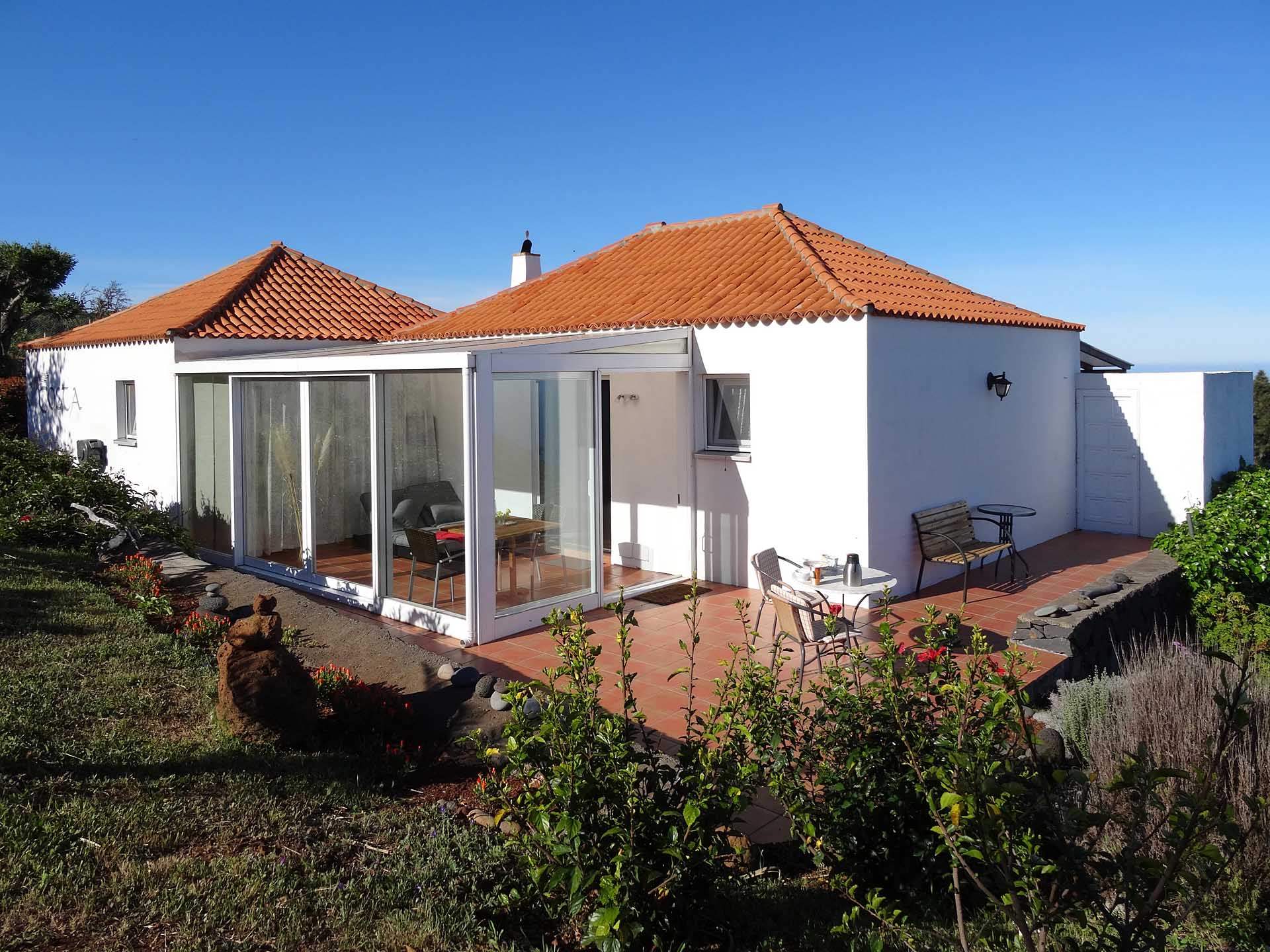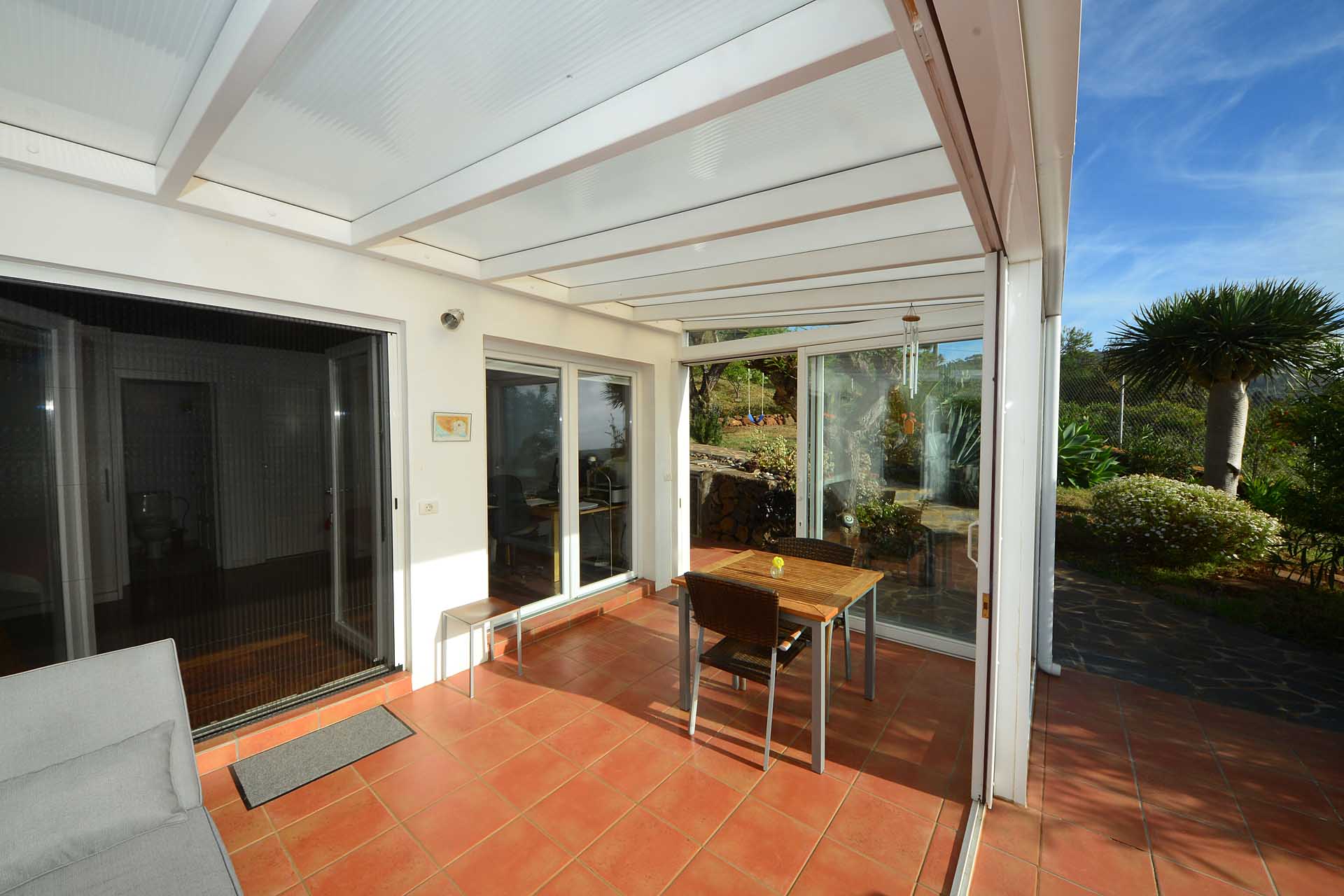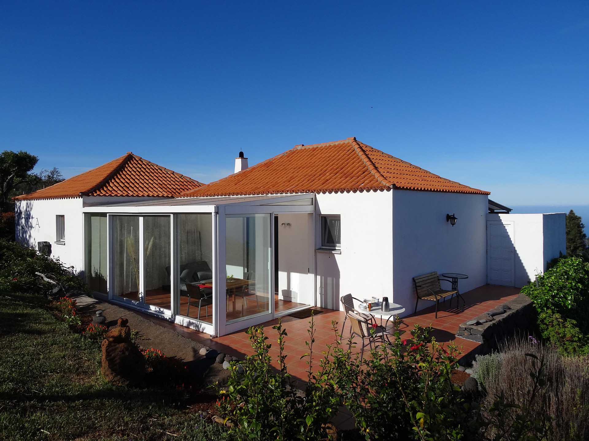 Das Haus wurde 1999 in sehr guter Qualität errichtet und in den Jahren 2009/2010 erweitert und auf den neuesten Stand gebracht. Das Zentrum des Hauses bildet eine große und helle Wohnküche mit herrlichem Meerblick. Der hohe, kanarische Dachstuhl und der Holzfußboden geben dem Raum Gemütlichkeit und ausgeglichenes Klima, die große Fensterfront dennoch modernes Ambiente. An der Nordseite schließt sich ein Schlafzimmer mit Bad on Suite an, an der Südseite ein großer Wintergarten, der den Wohnbereich mit einem auch als getrennten Gästebereich nutzbaren großen Schlafzimmer mit eigenem Bad und kleiner Gästeküche verbindet. An der Ostseite wurde ein weiterer Wintergarten errichtet, den bereits die erste Morgensonne flutet, so dass das Haus praktisch vollständig nur über die Wintergärten sehr angenehm, kostengünstig und umweltfreundlich geheizt wird. Für die wenigen, besonders kalten Tage ohne Sonne steht eine Ofenheizung zur Verfügung, die Sie aber nur selten brauchen werden.