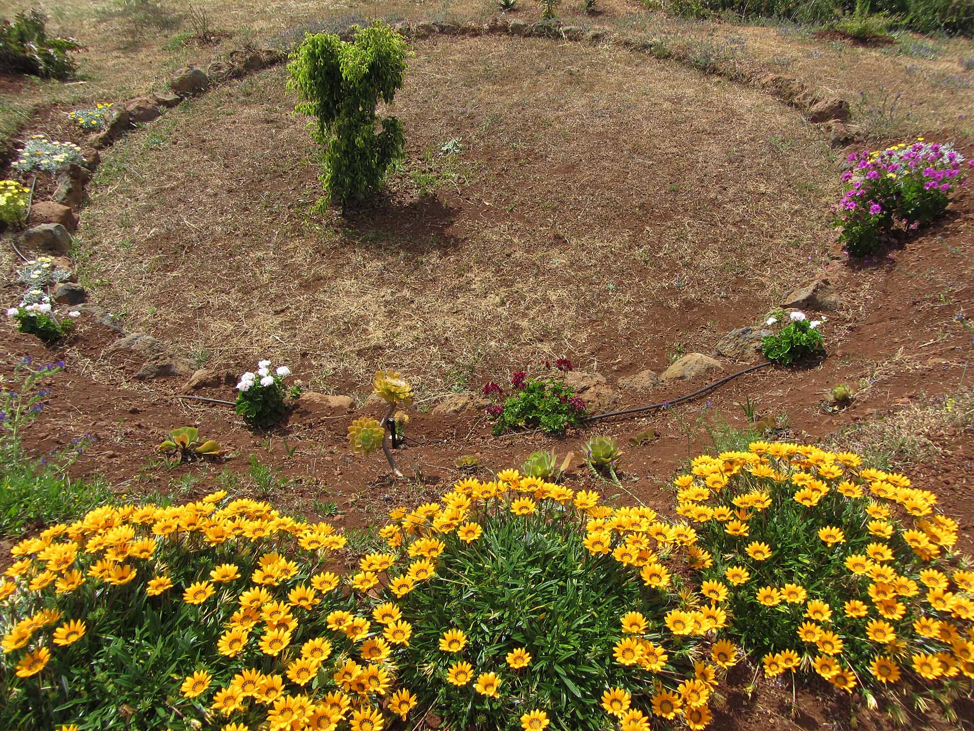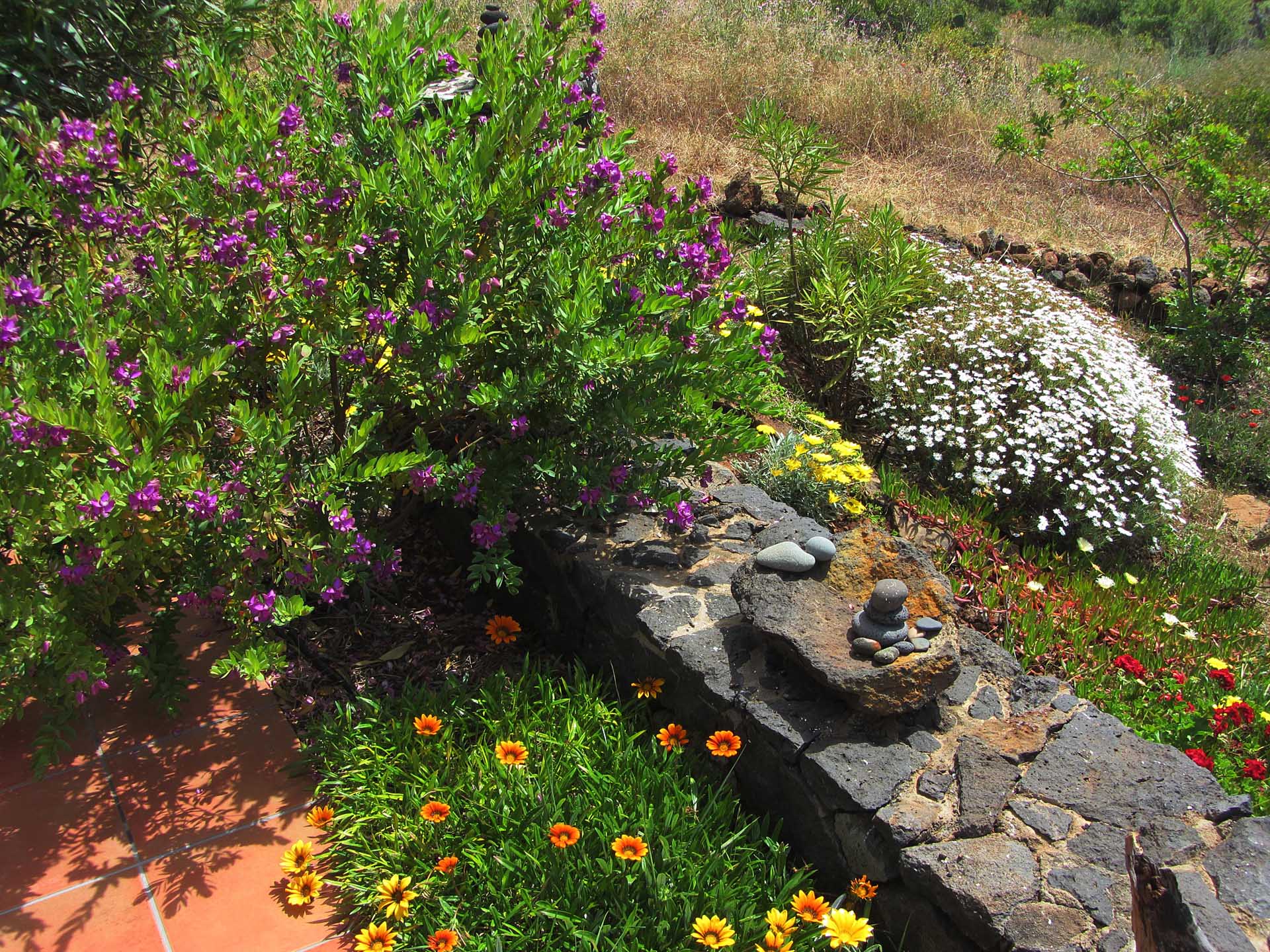 Der Garten wurde in großen Teilen bereits terrassiert, liebevoll angelegt und mit Blumen, Stauden sowie vielen, unterschiedlichen Frucht- und Zierbäumen bepflanzt.