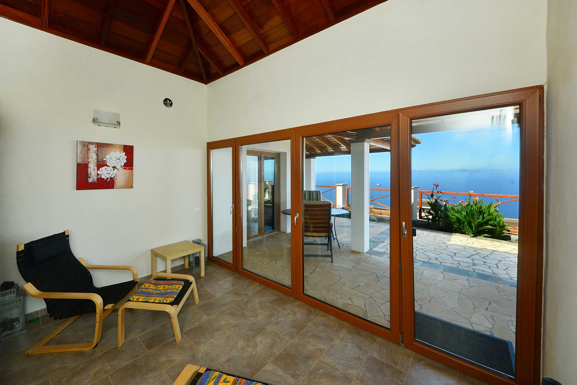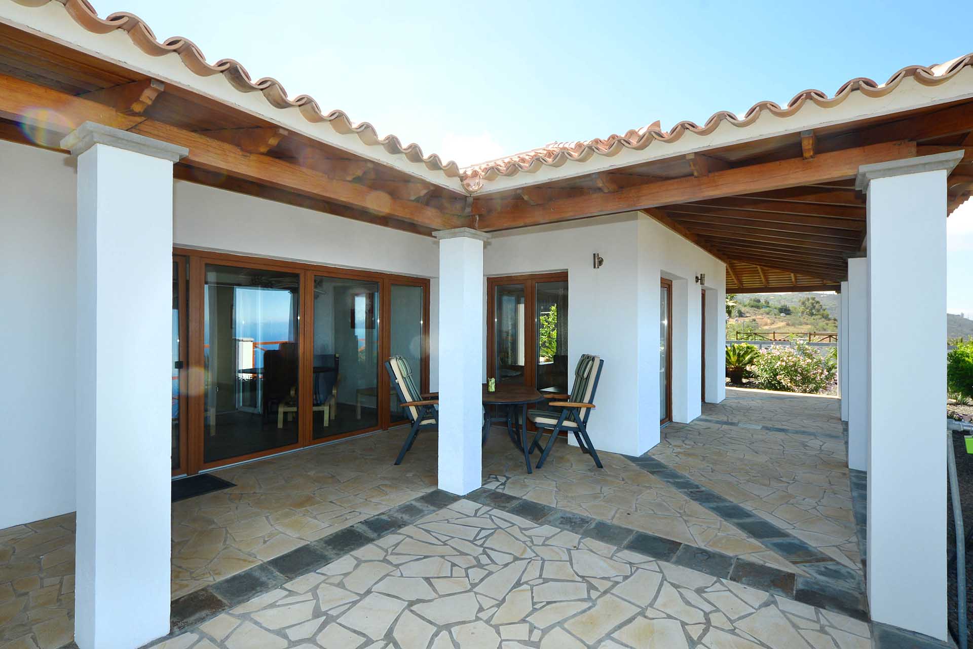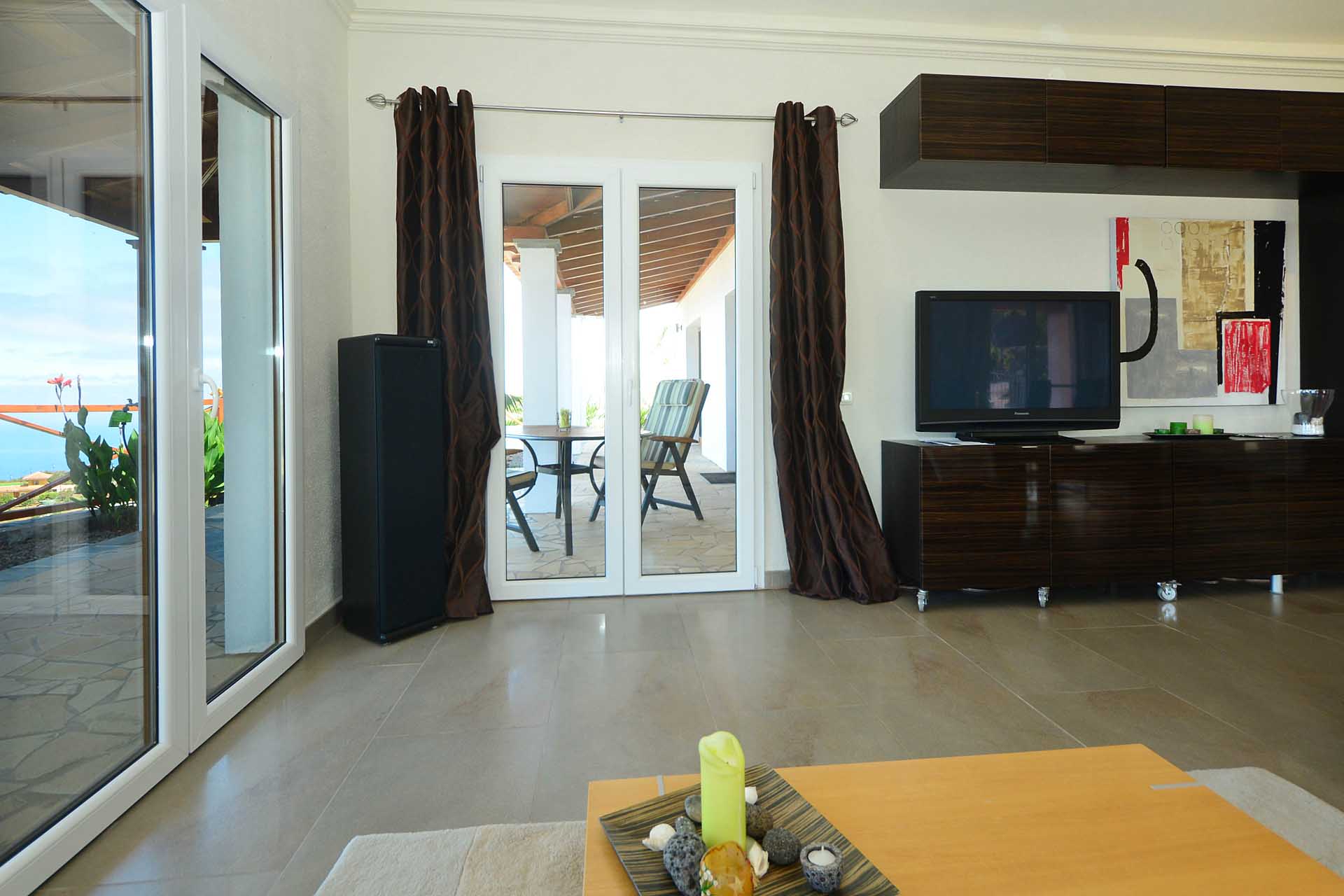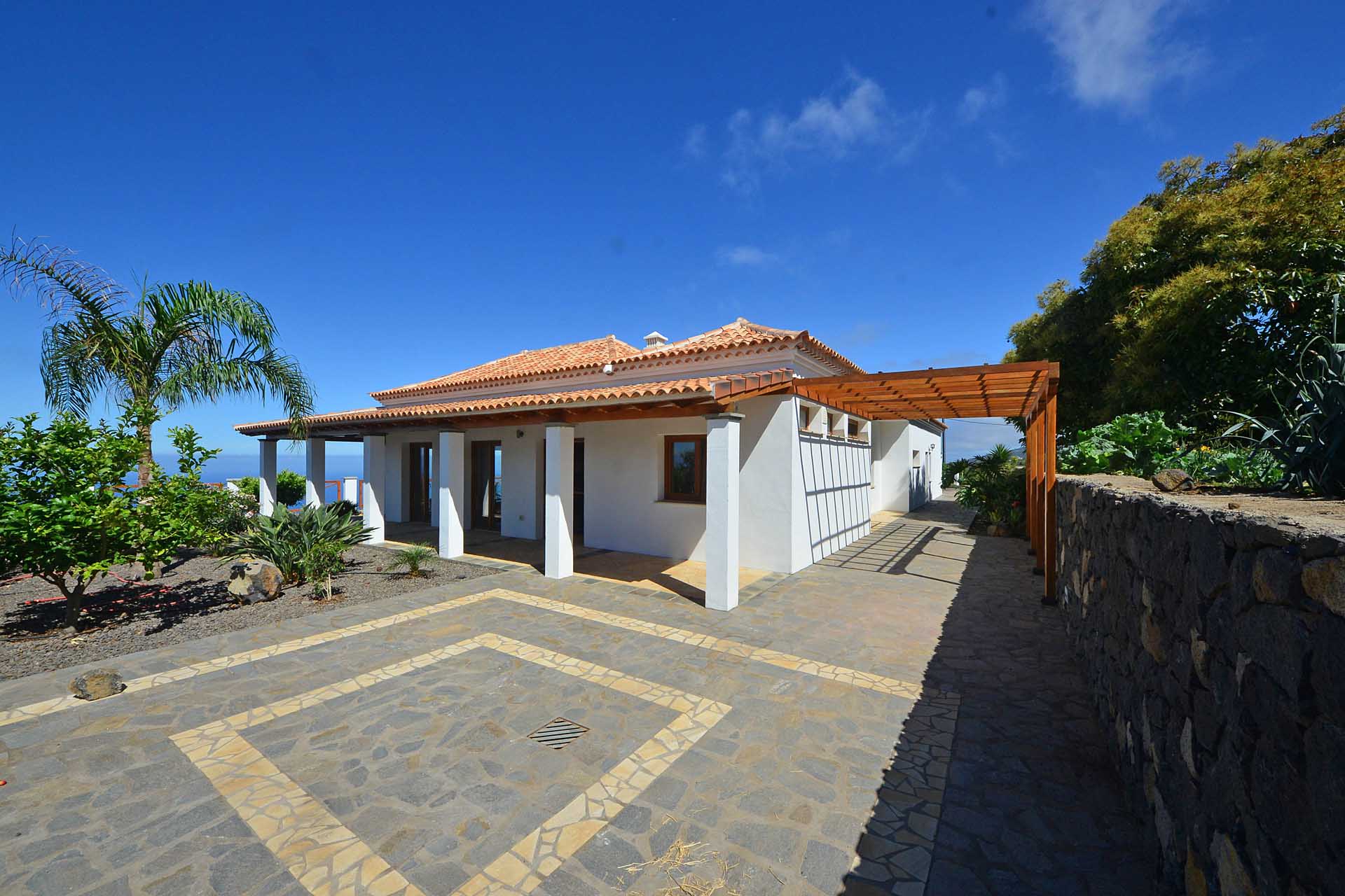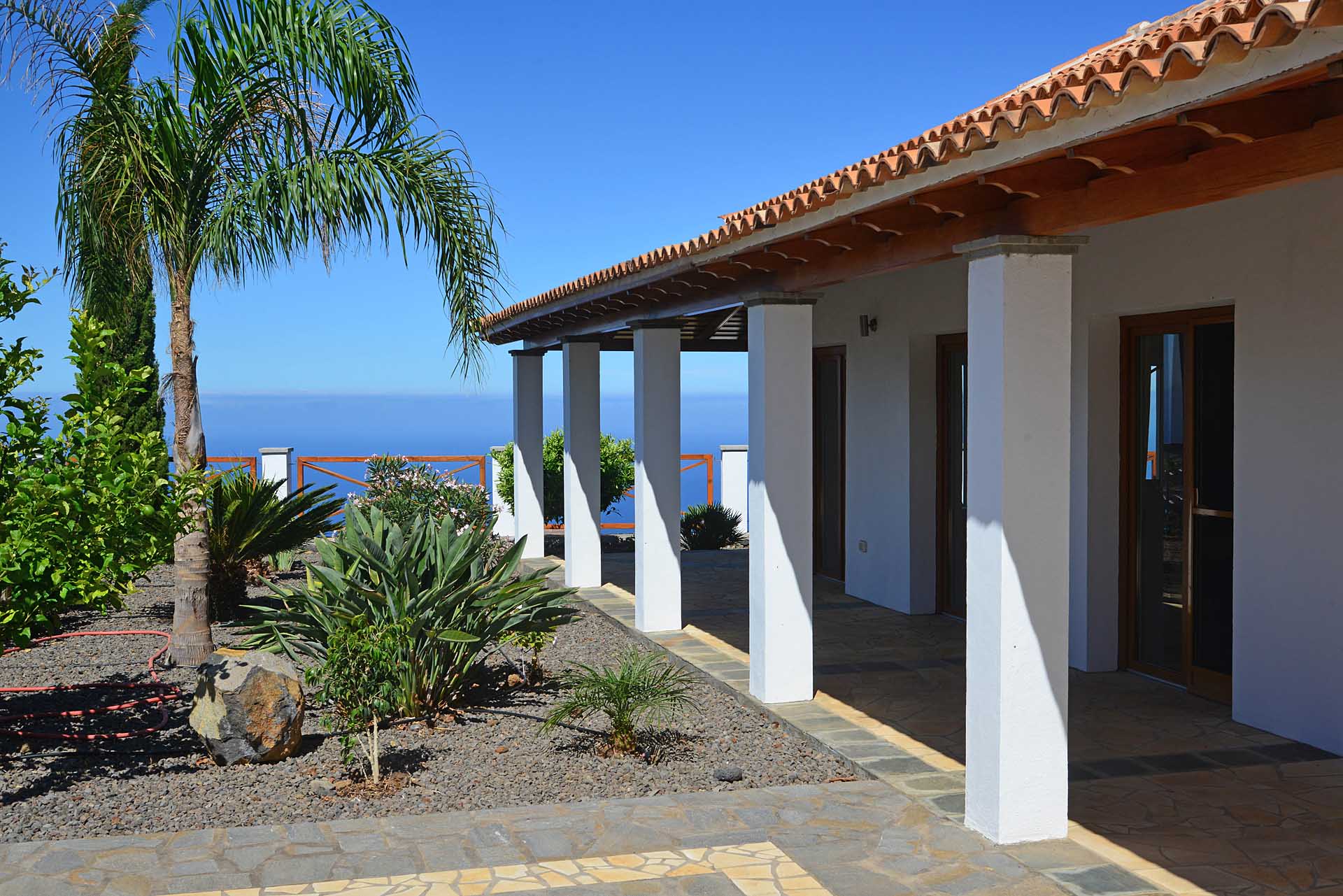 Die 2009 fertig gestellt Villa kombiniert nordeuropäische Wohnbedürfnisse nach hellen und großzügigen Räumen mit sowohl kanarischen Stilelementen als auch mediterranem Flair. Auf 190 m² Grundfläche beherbergt sie eine sehr große Wohnküche mit fantastischem Blick durch die bodengleichen, großen, aus Deutschland importierten Qualitätsfenster, einen anschließenden Hauswirtschaftsraum, zwei Schlafzimmer, ein Arbeits- oder weiteres Schlafzimmer und zwei Bäder und einen hellen Eingangsbereich mit Flur. Bis auf ein Schlafzimmer haben alle Räume herrlichen Meerblick; die bodentiefen Fenster wurden mit einem breiten, ziegelgedeckten Vordach beschattet, so dass sie angenehm temperiert bleiben und Sie von fast allen Räumen unmittelbar auf die Terrasse treten und im Schatten oder in der Sonne sitzen können.