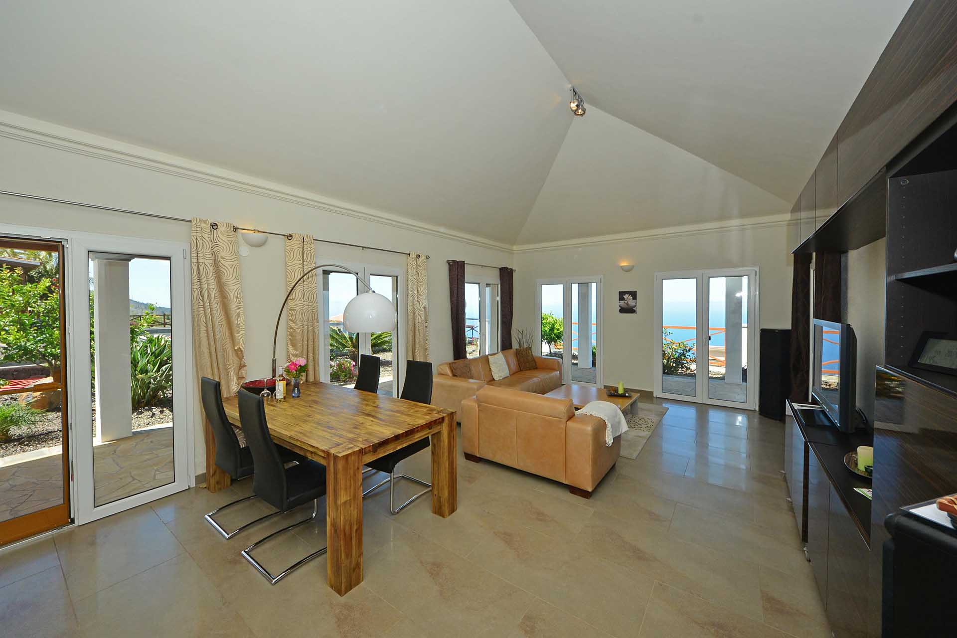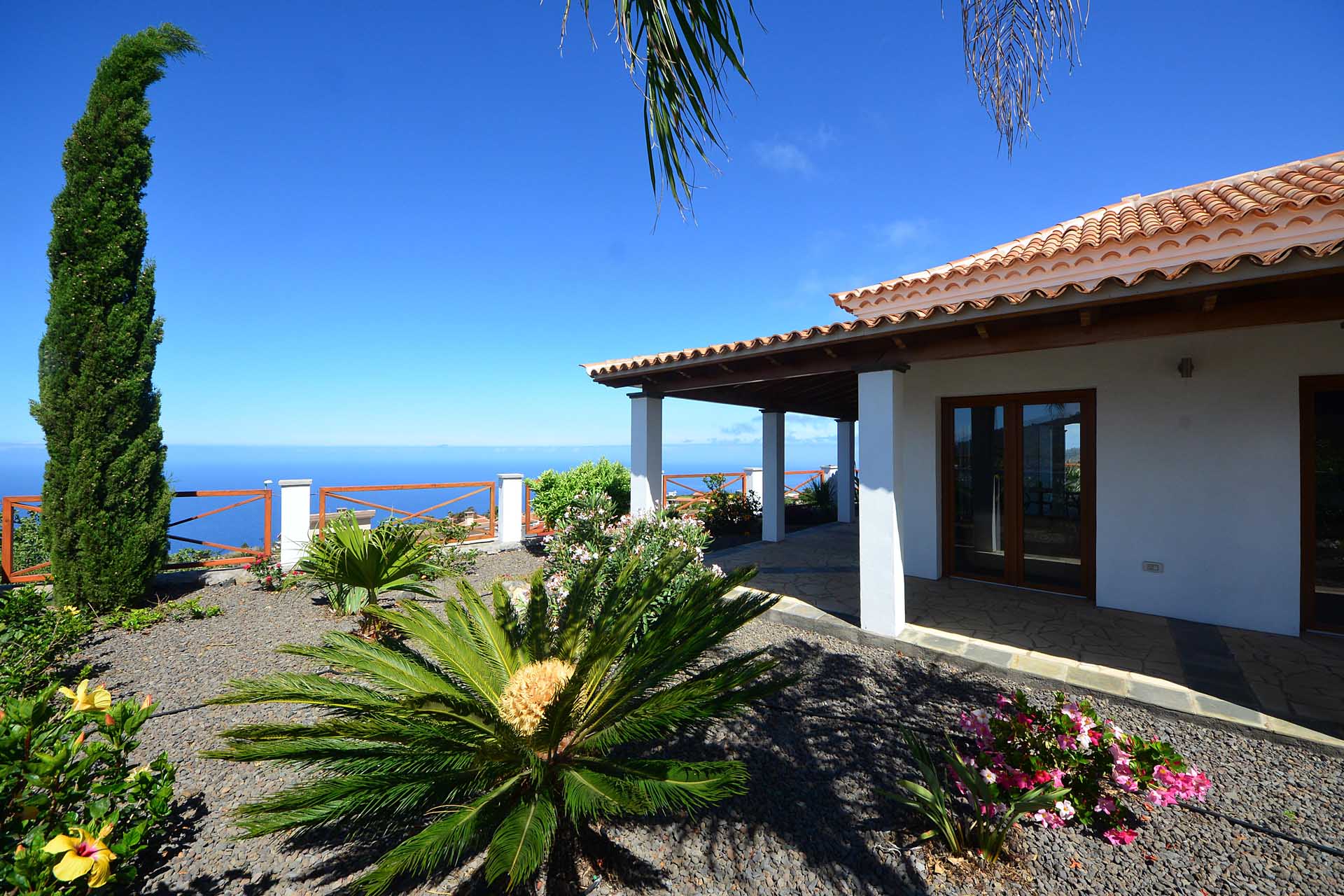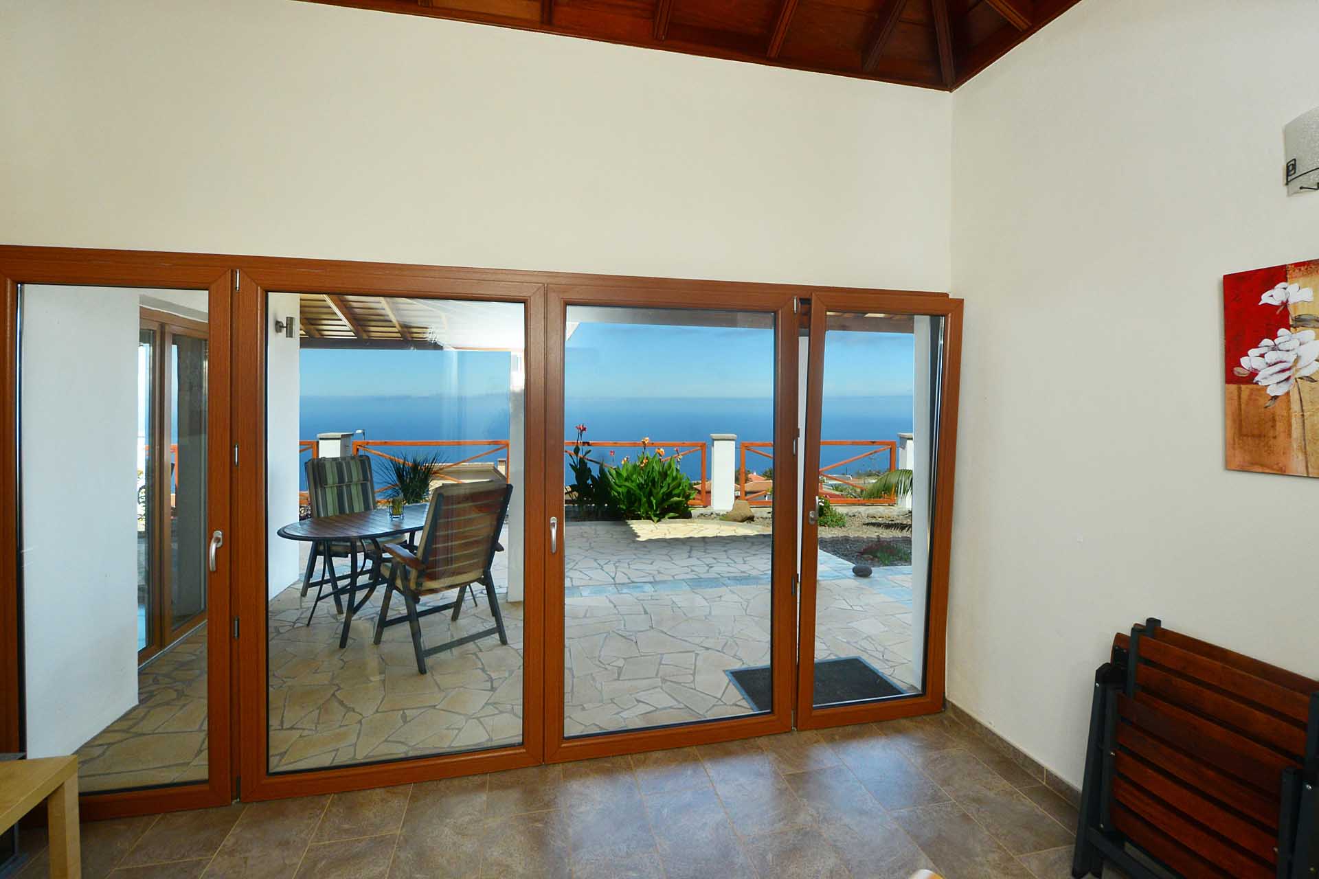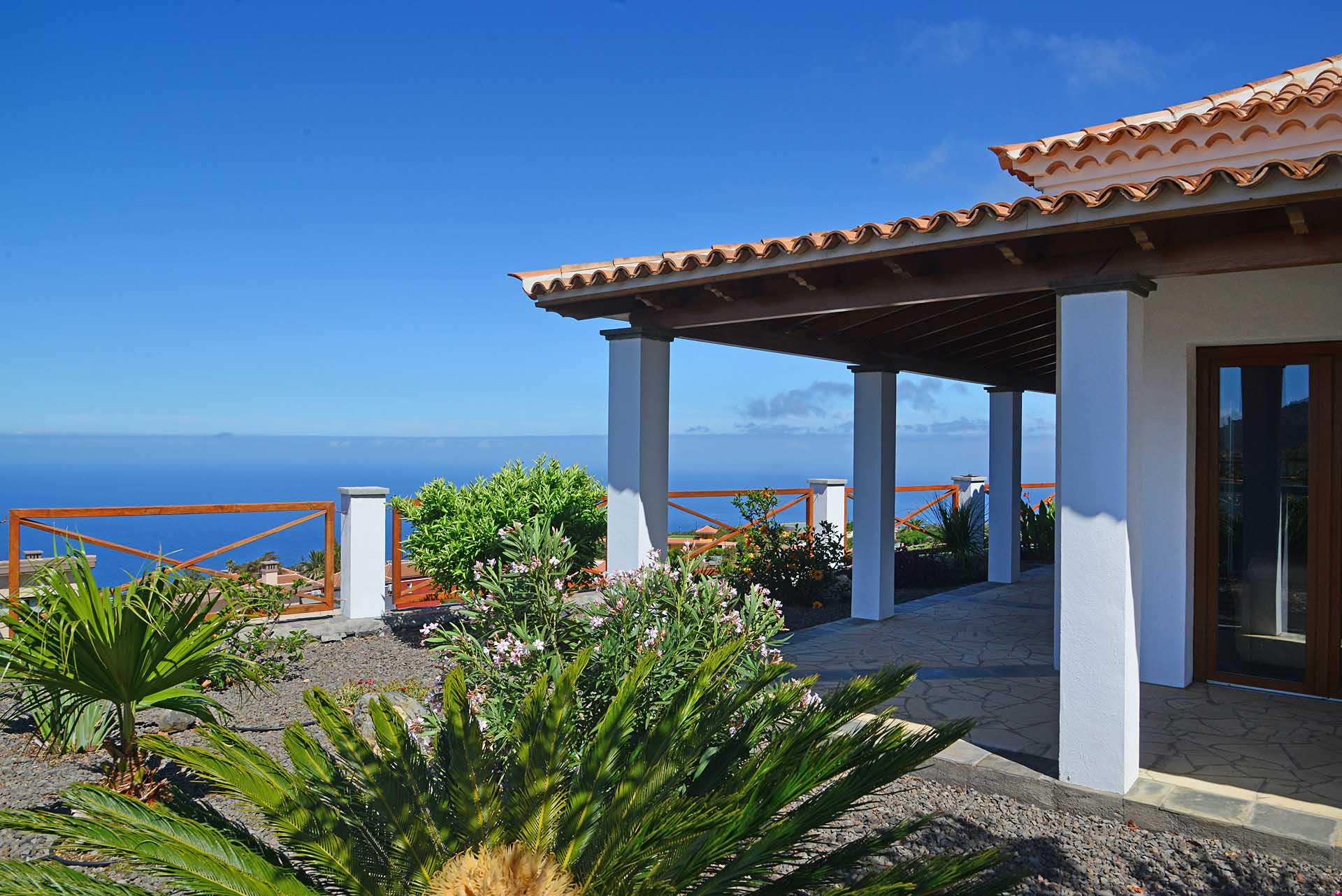 Die 2009 fertig gestellt Villa kombiniert nordeuropäische Wohnbedürfnisse nach hellen und großzügigen Räumen mit sowohl kanarischen Stilelementen als auch mediterranem Flair. Auf 190 m² Grundfläche beherbergt sie eine sehr große Wohnküche mit fantastischem Blick durch die bodengleichen, großen, aus Deutschland importierten Qualitätsfenster, einen anschließenden Hauswirtschaftsraum, zwei Schlafzimmer, ein Arbeits- oder weiteres Schlafzimmer und zwei Bäder und einen hellen Eingangsbereich mit Flur. Bis auf ein Schlafzimmer haben alle Räume herrlichen Meerblick; die bodentiefen Fenster wurden mit einem breiten, ziegelgedeckten Vordach beschattet, so dass sie angenehm temperiert bleiben und Sie von fast allen Räumen unmittelbar auf die Terrasse treten und im Schatten oder in der Sonne sitzen können.