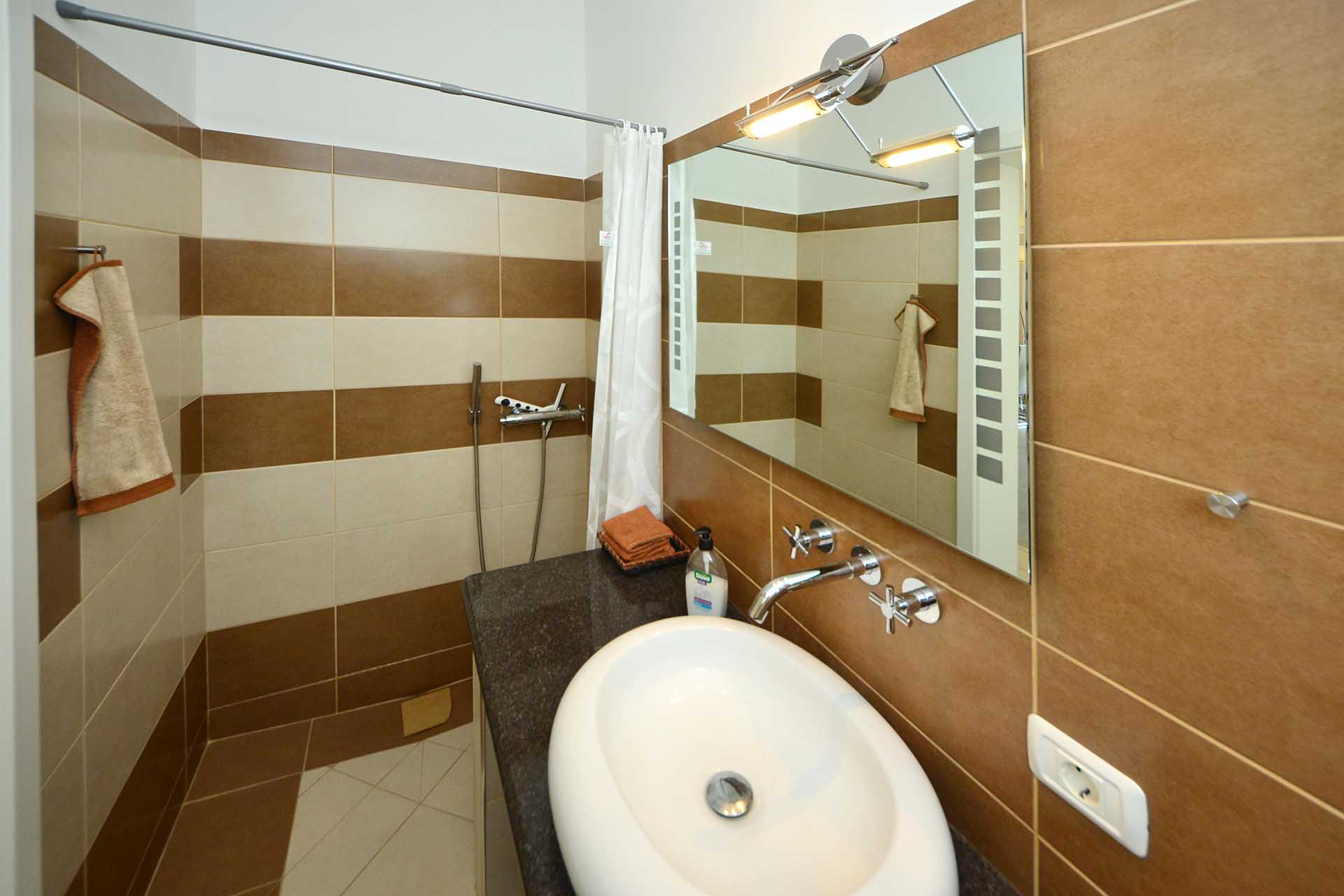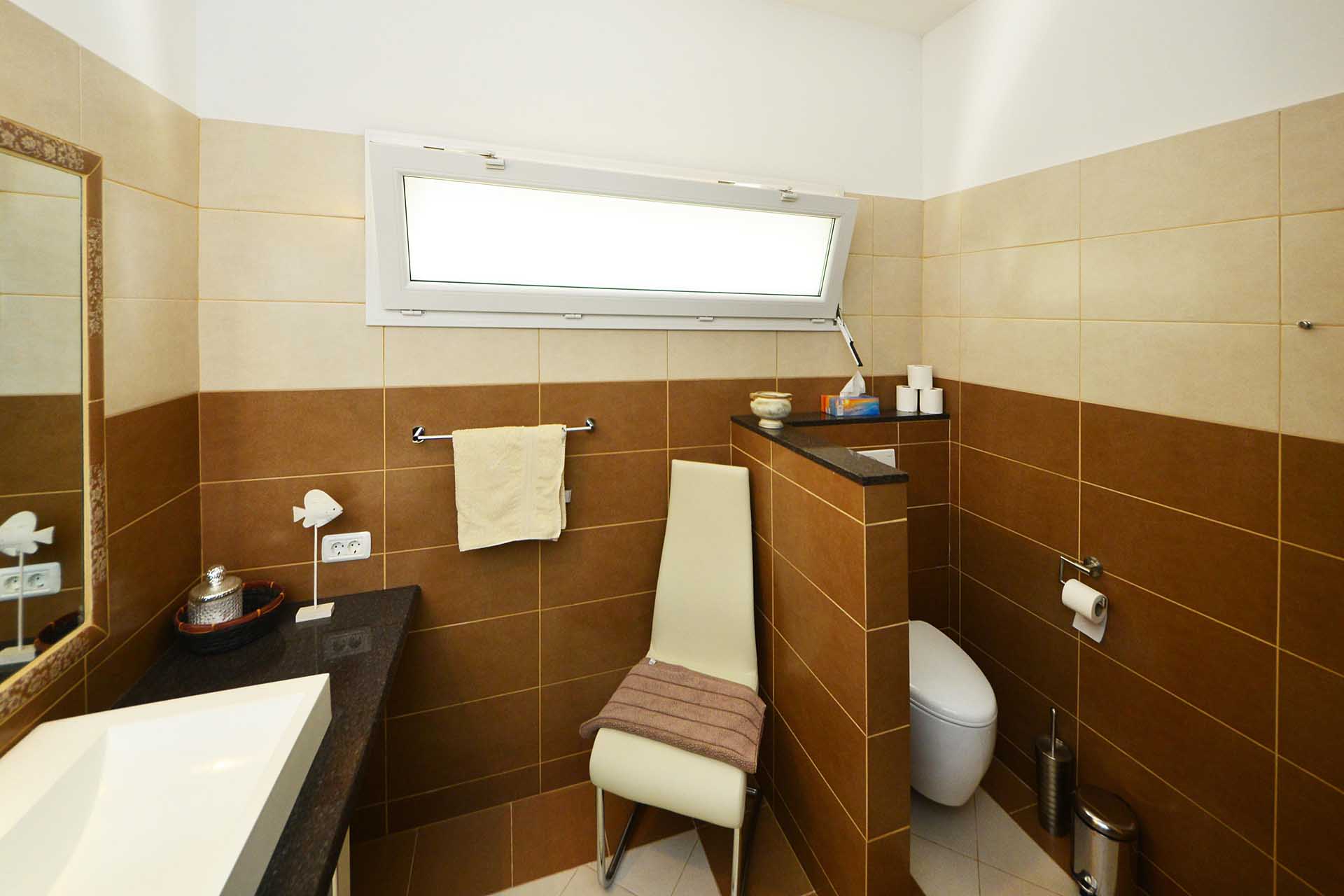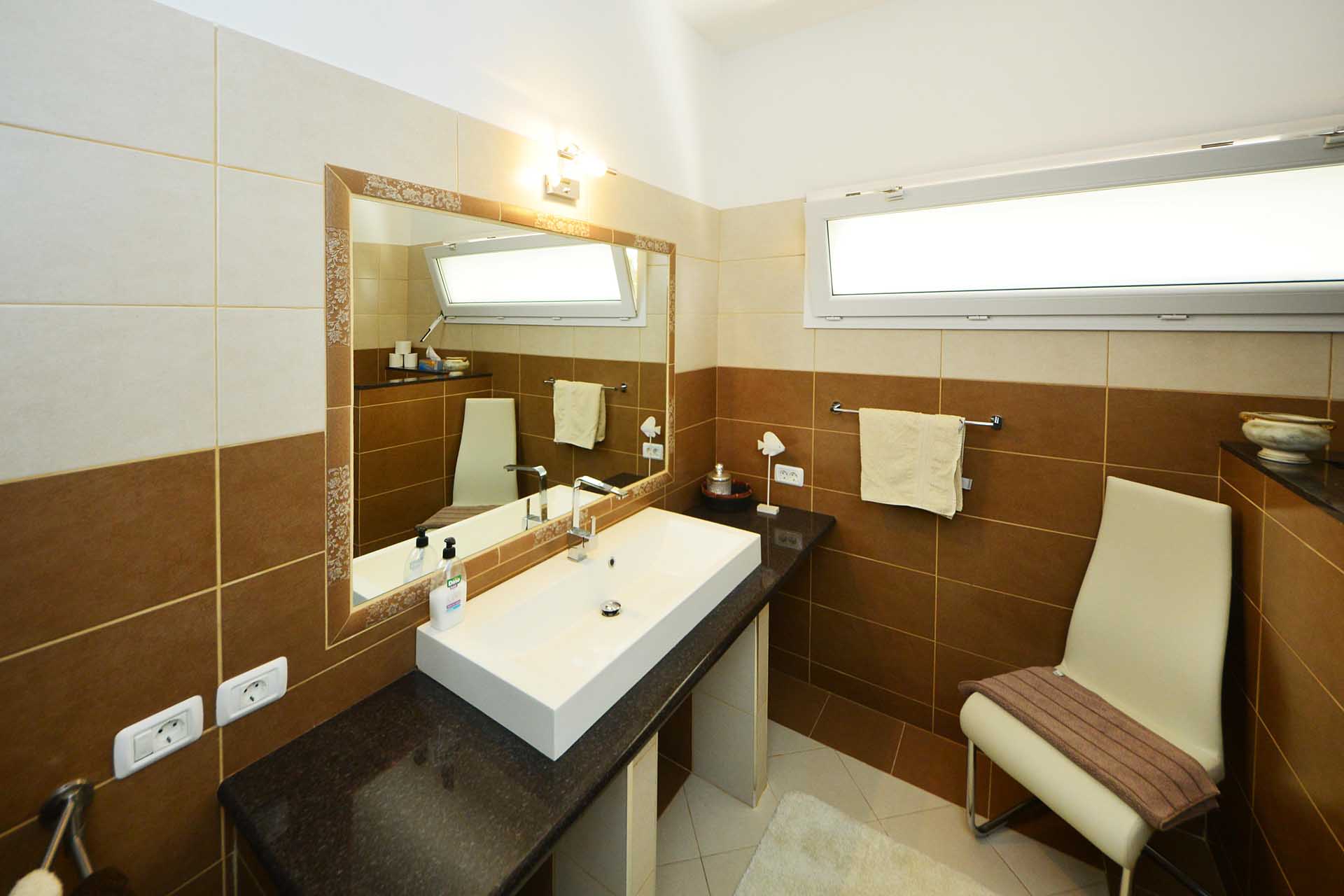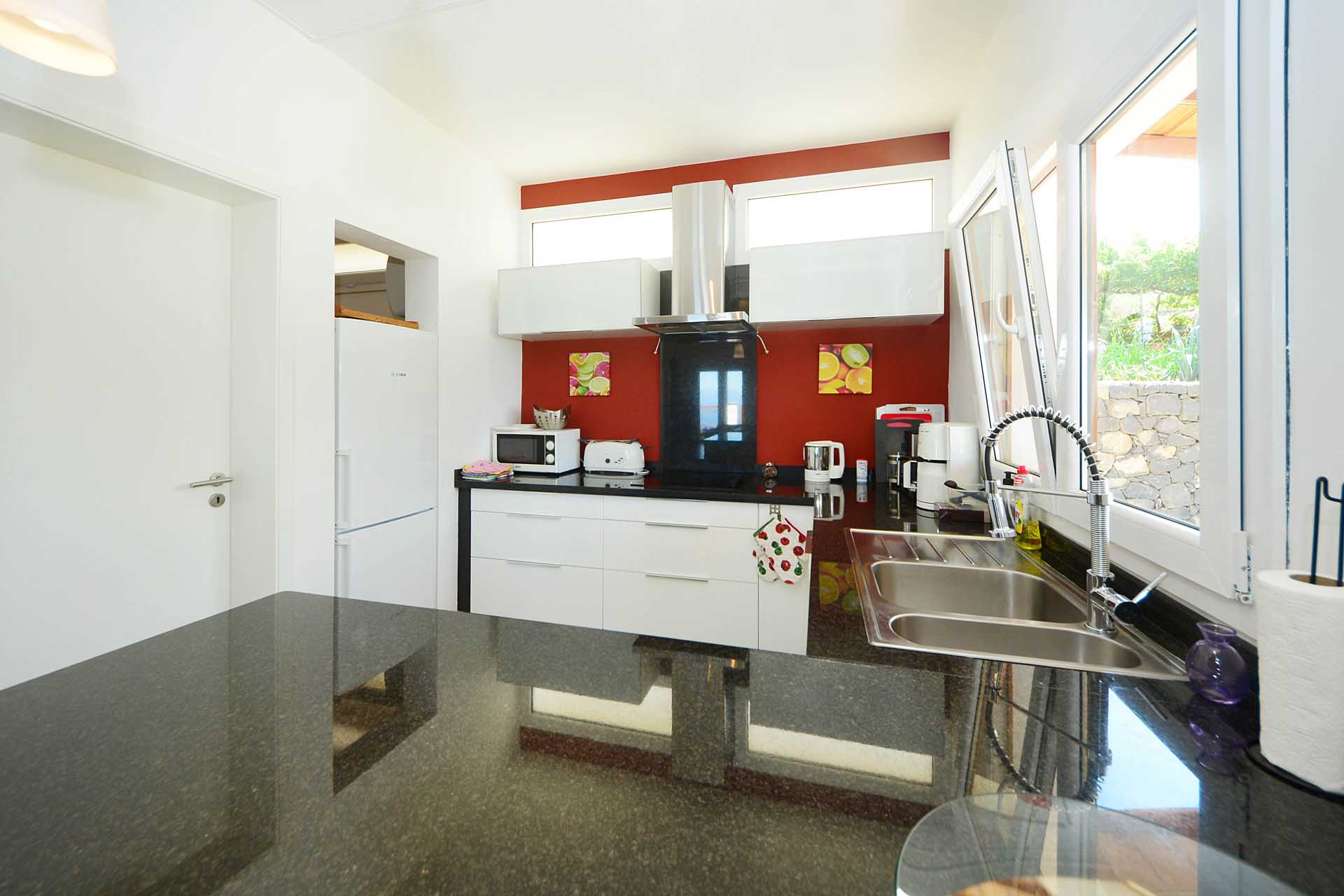 Bei der Bauausführung unter Leitung einer deutschen Architektin kamen nur beste Baumaterialien zum Einsatz, die Wände wurden aus Bimsstein errichtet; die Küche wurde nicht nur mit einer Arbeitsfläche, sondern auch mit Spritzschutz am Kochfeld und den Seitenwangen in hochwertigem und unvergänglichem Granit ausgeführt und alle Böden mit durchgefärbten Keramikfliesen belegt.