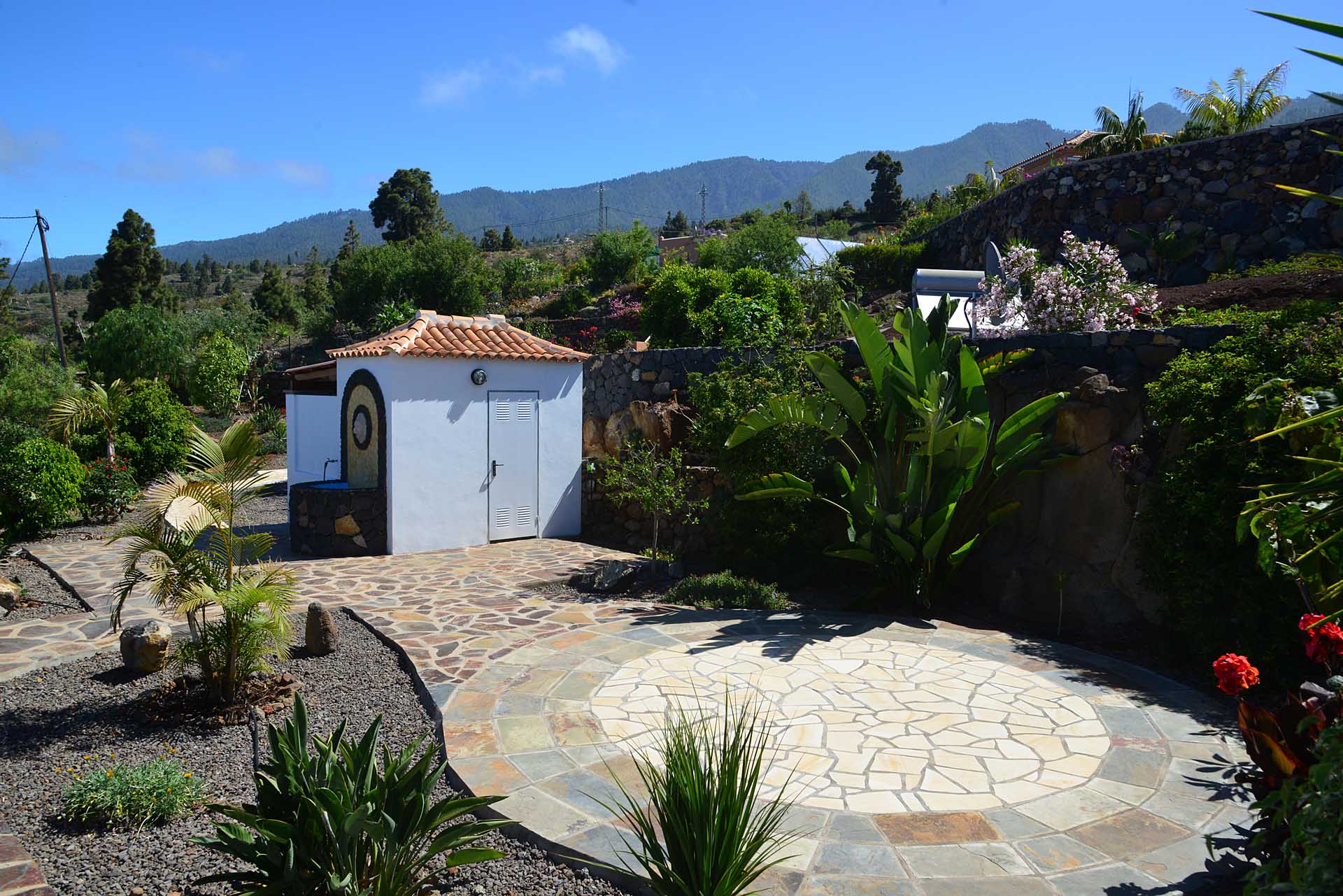 Der große Garten wurde sehr gut mit befestigten Wegen erschlossen und pflegeleicht angelegt sowie mit Zier- und Fruchtbäumen bepflanzt und einem automatischen Bewässerungssystem versorgt. In ihm befindet sich ein unterirdischer Wassertank, der mit gemietetem Aktienwasser für die Gartenbewässerung gespeist wird sowie ein Technikhaus, das auch Gartengeräte aufnehmen kann.