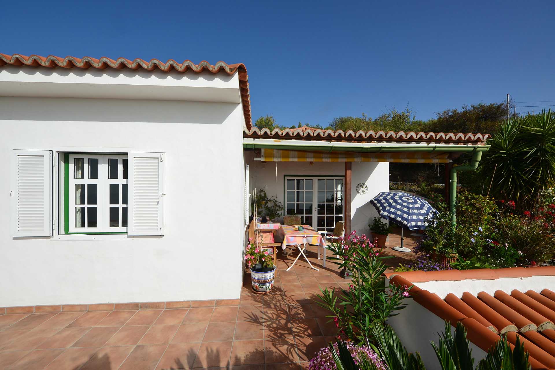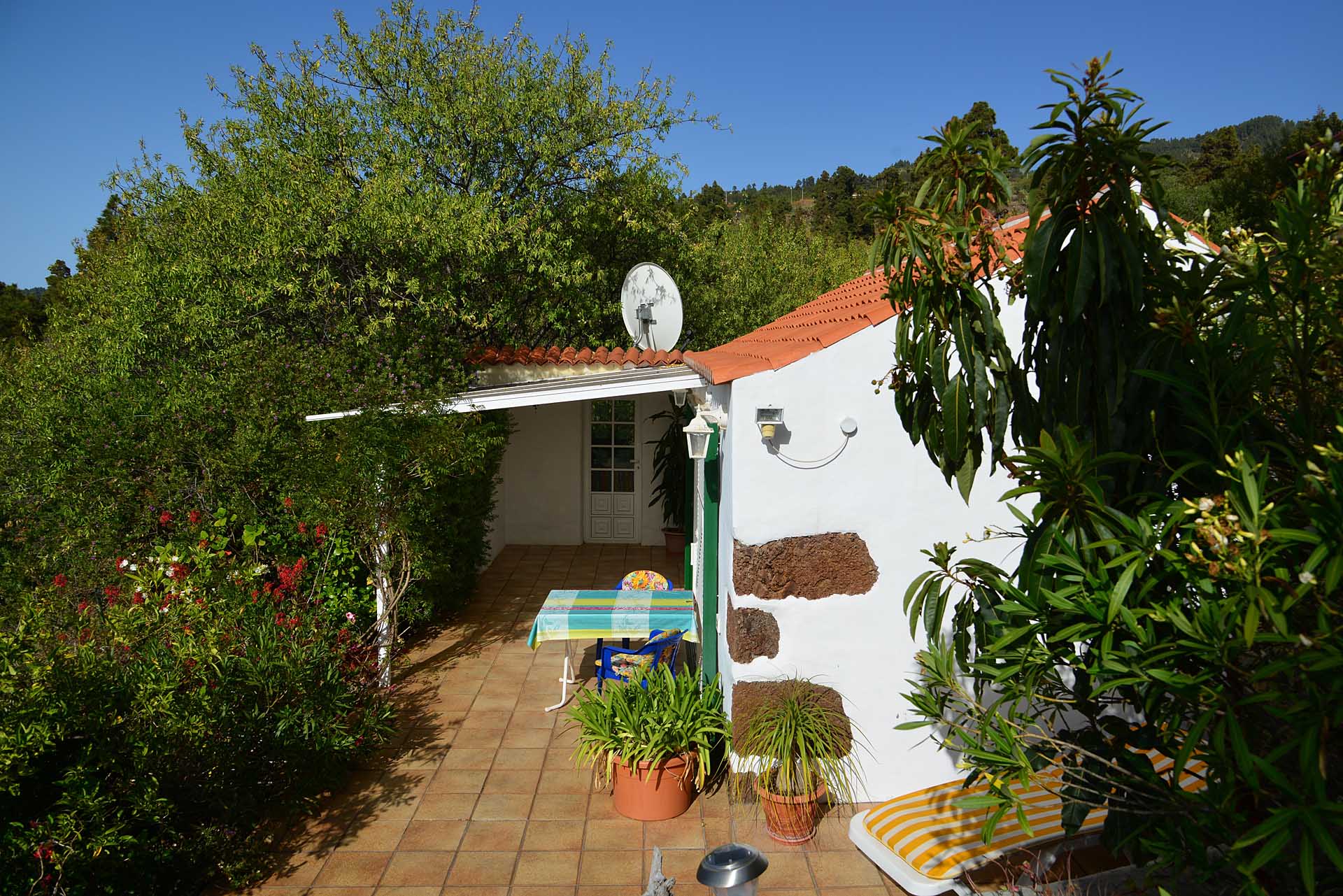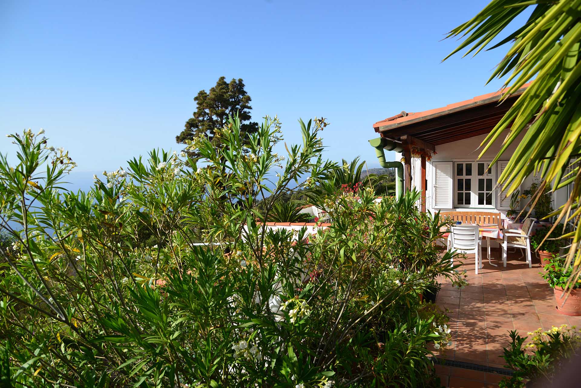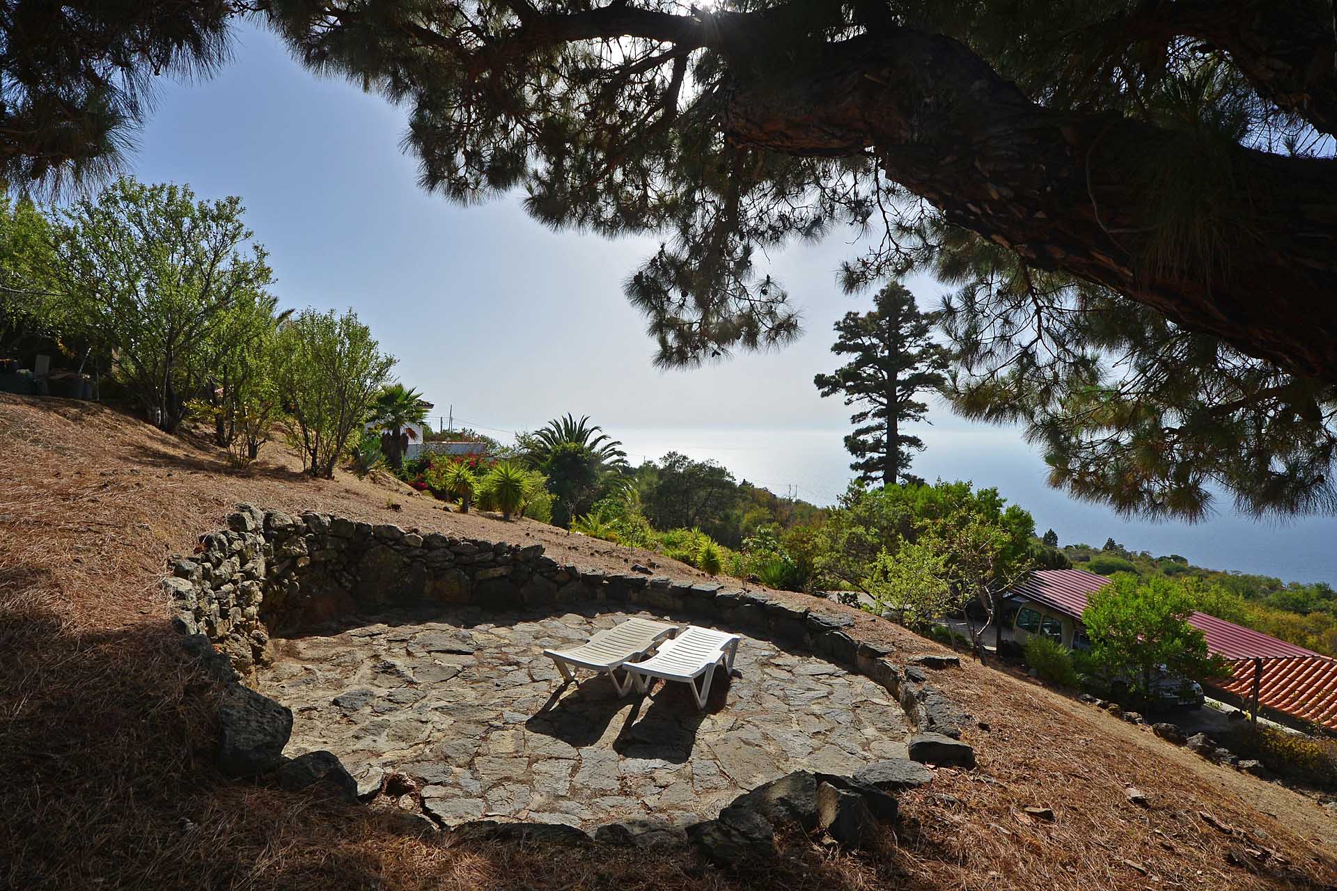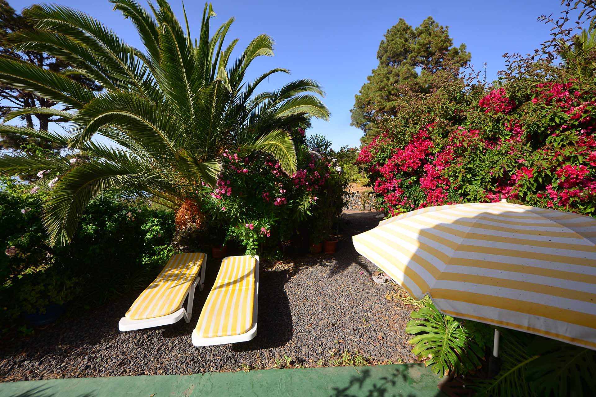 Der schön angelegte und gepflegte Garten bietet Obst und Gemüse sowie eine Vielzahl subtropischer Zierpflanzen und eine riesige kanarische Kiefer, die einen historischen Dreschplatz beschattet, der heute als Sonnenterrasse mit fantastischem Meerblick genutzt wird. Ebenso finden sich ein Gartenhäuschen für die Gartenwerkzeuge und ein Carport, so dass für alles gesorgt ist.