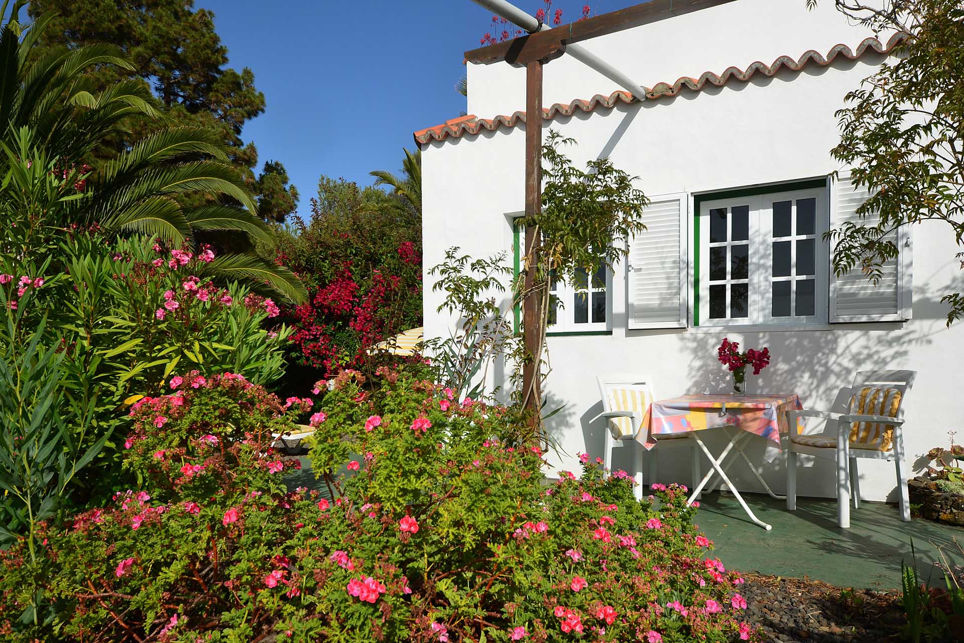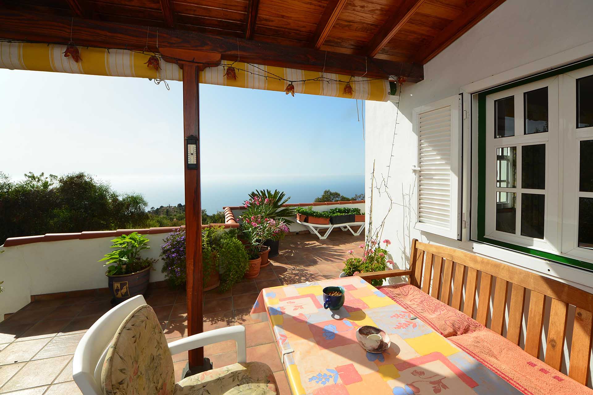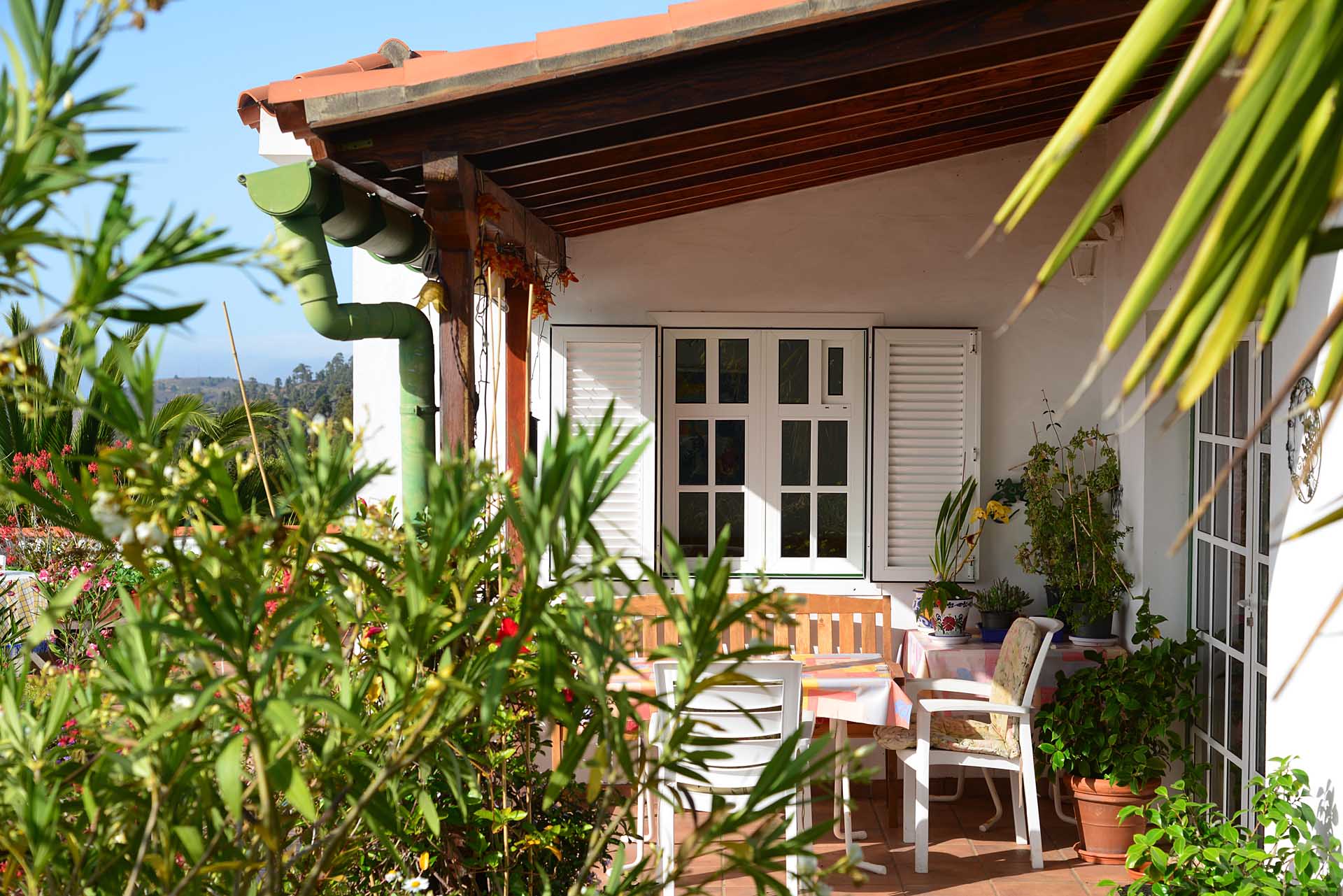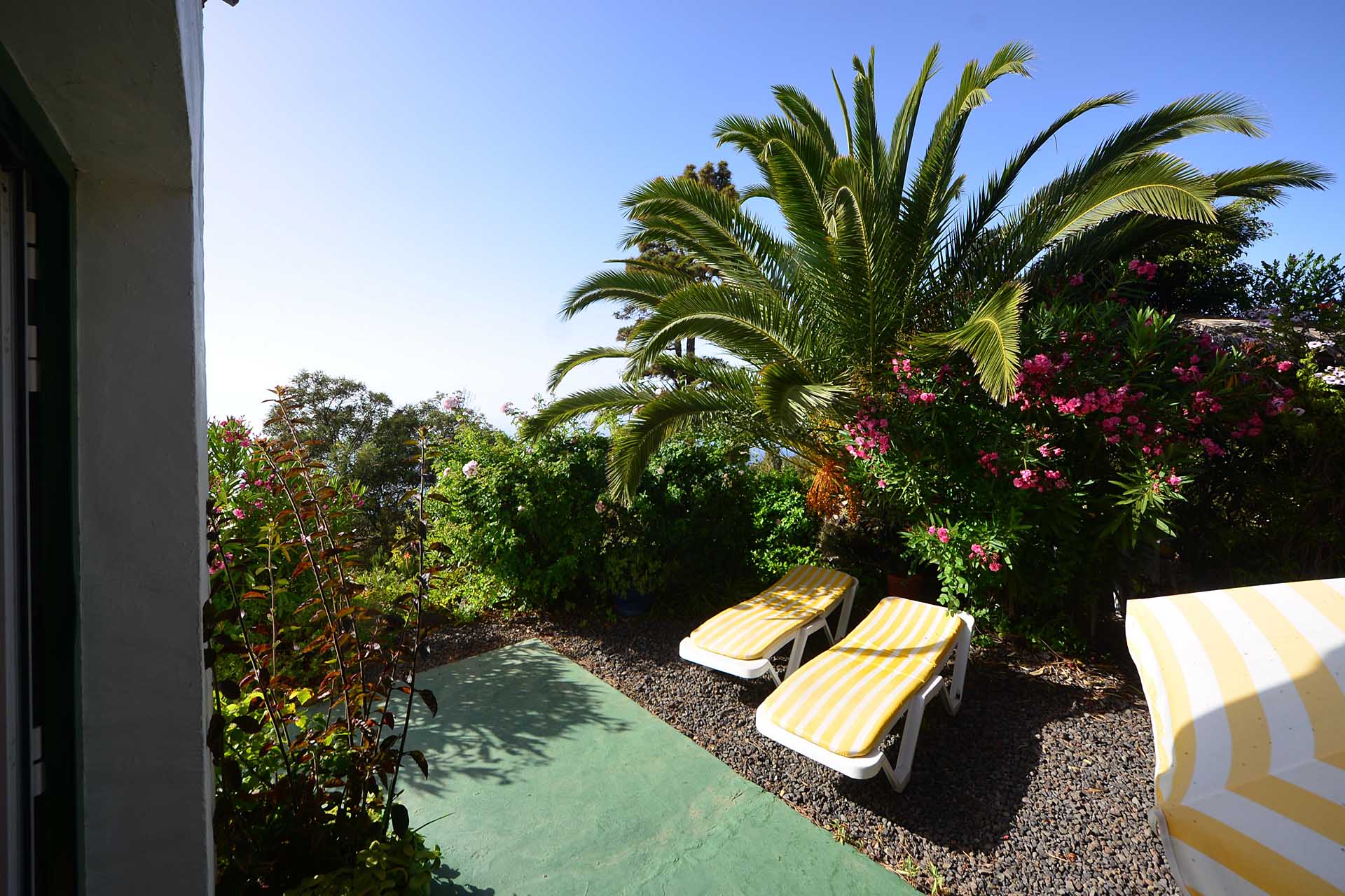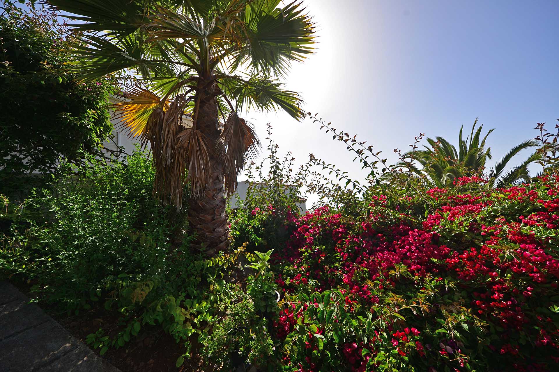 Der schön angelegte und gepflegte Garten bietet Obst und Gemüse sowie eine Vielzahl subtropischer Zierpflanzen und eine riesige kanarische Kiefer, die einen historischen Dreschplatz beschattet, der heute als Sonnenterrasse mit fantastischem Meerblick genutzt wird. Ebenso finden sich ein Gartenhäuschen für die Gartenwerkzeuge und ein Carport, so dass für alles gesorgt ist.
