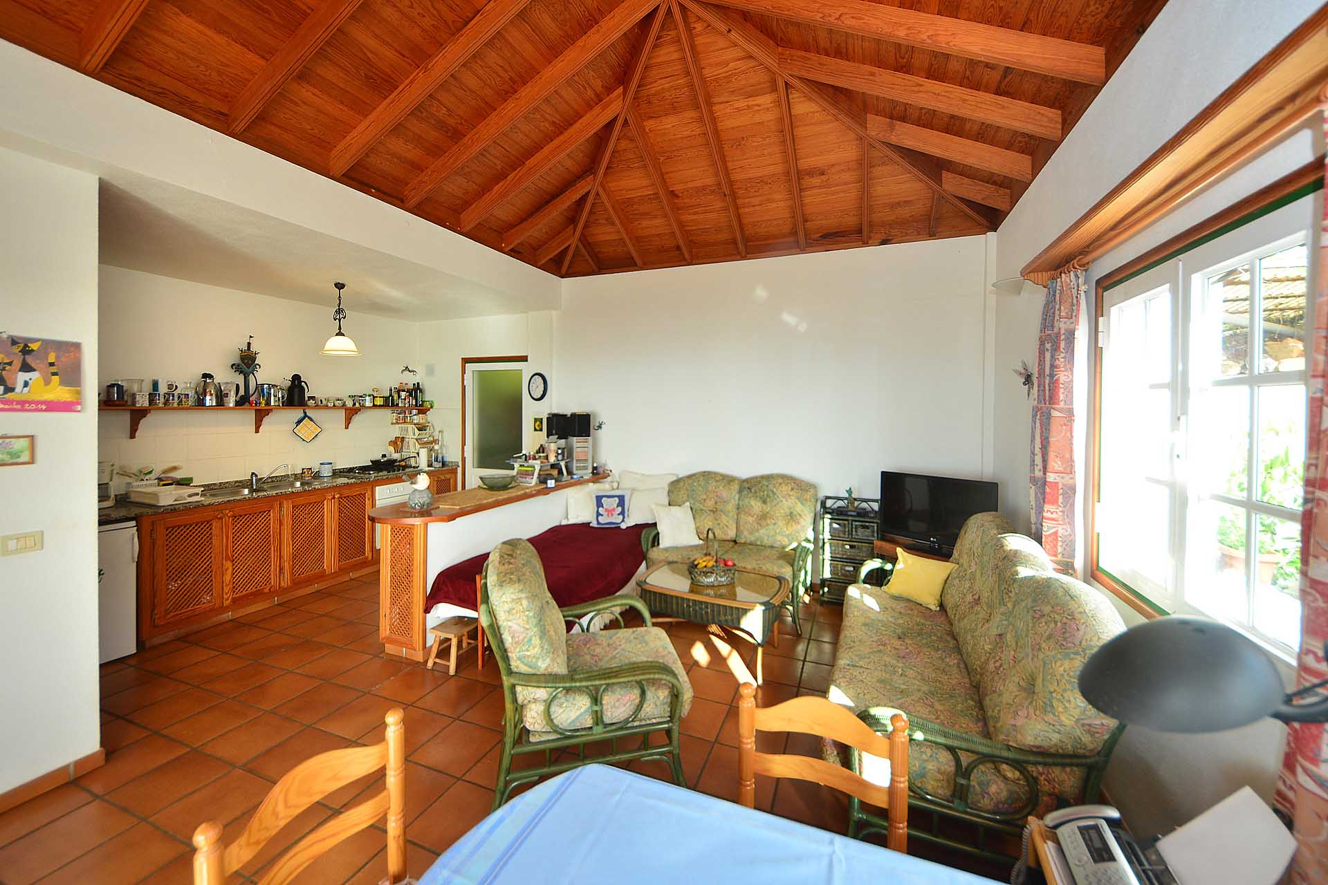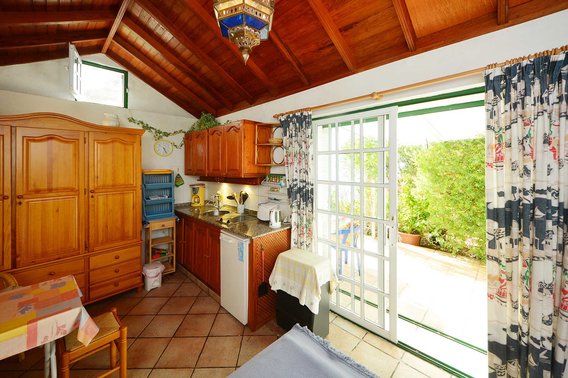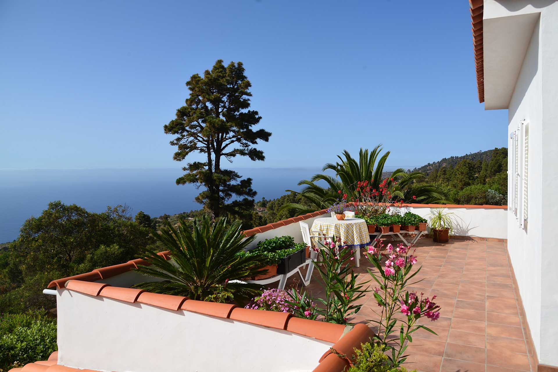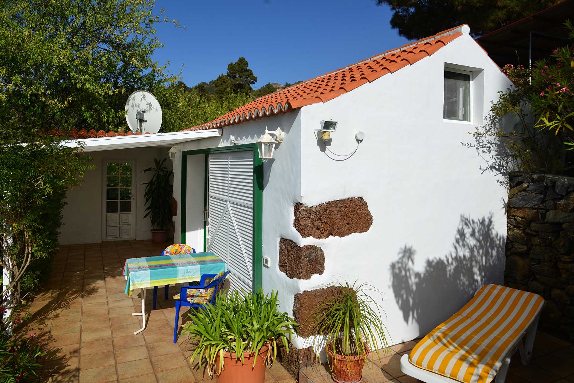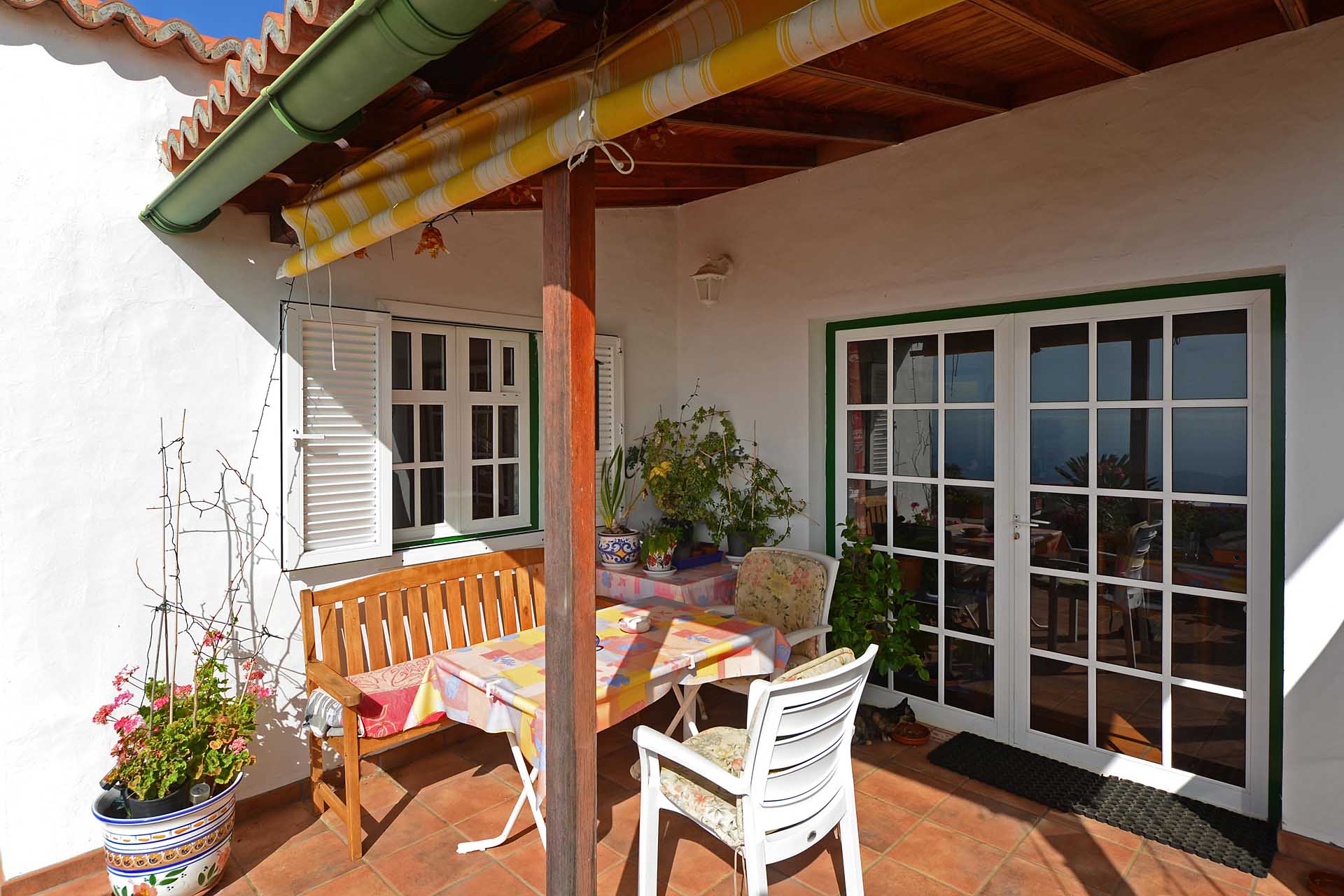 Der schön angelegte und gepflegte Garten bietet Obst und Gemüse sowie eine Vielzahl subtropischer Zierpflanzen und eine riesige kanarische Kiefer, die einen historischen Dreschplatz beschattet, der heute als Sonnenterrasse mit fantastischem Meerblick genutzt wird. Ebenso finden sich ein Gartenhäuschen für die Gartenwerkzeuge und ein Carport, so dass für alles gesorgt ist.