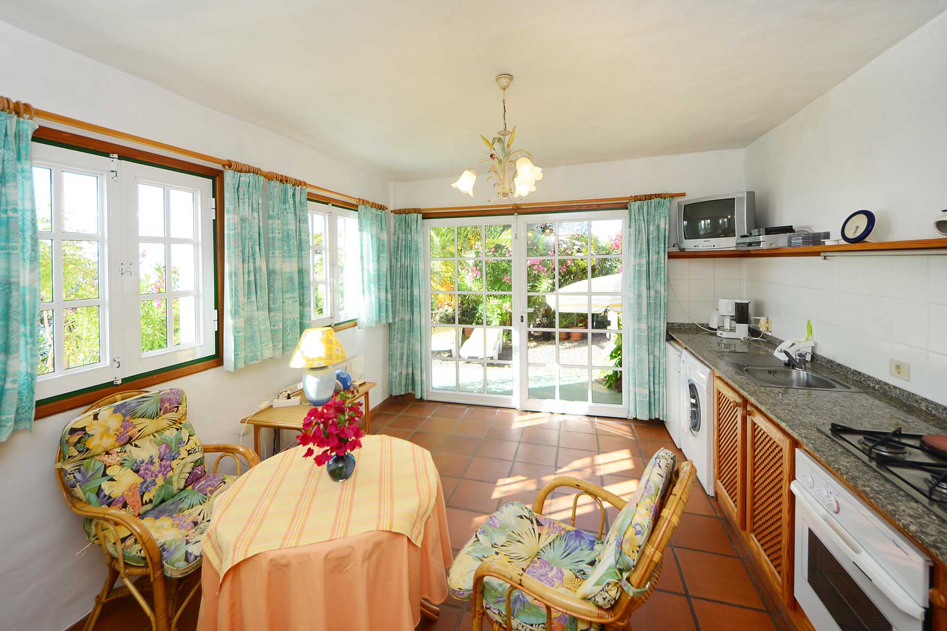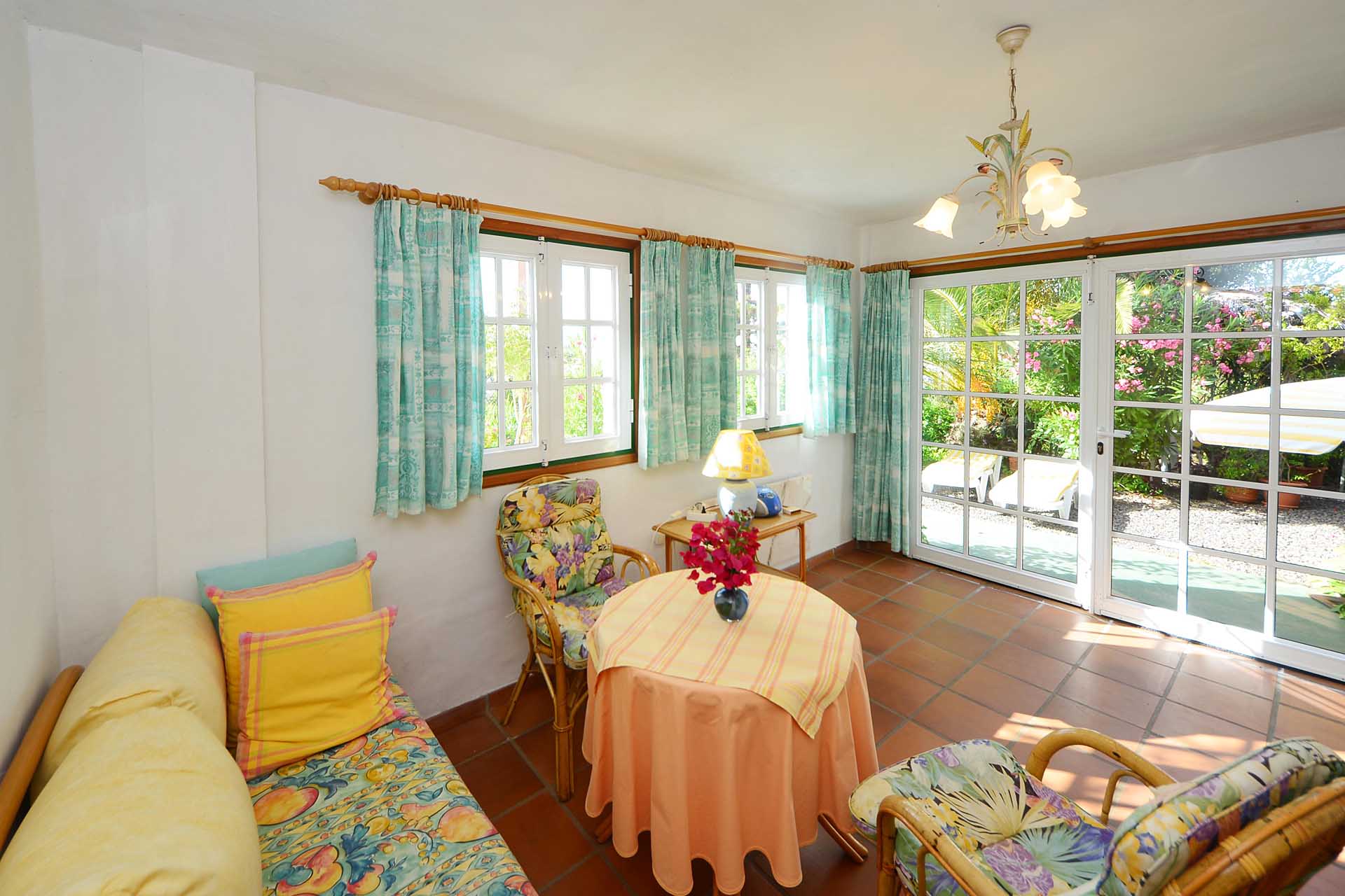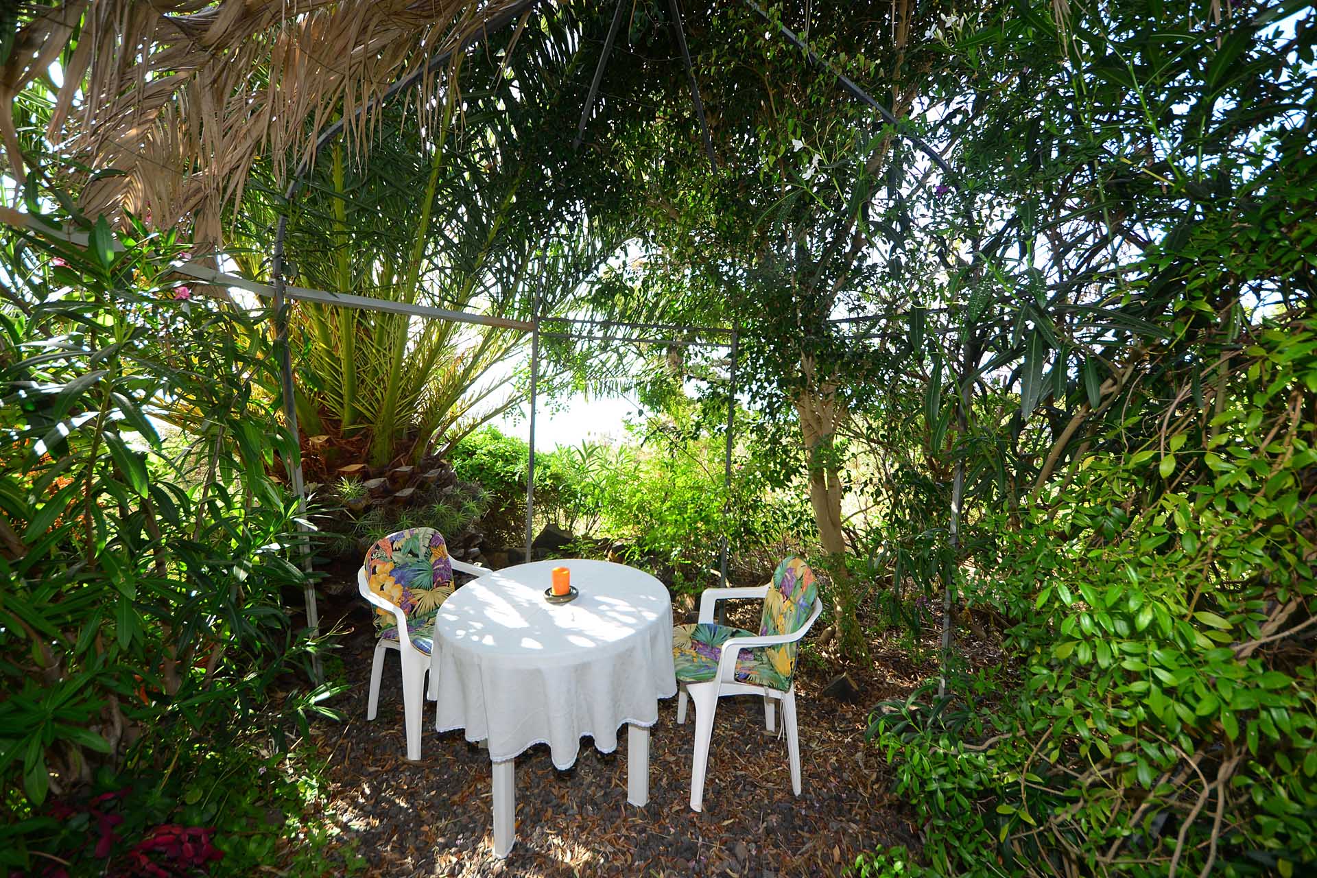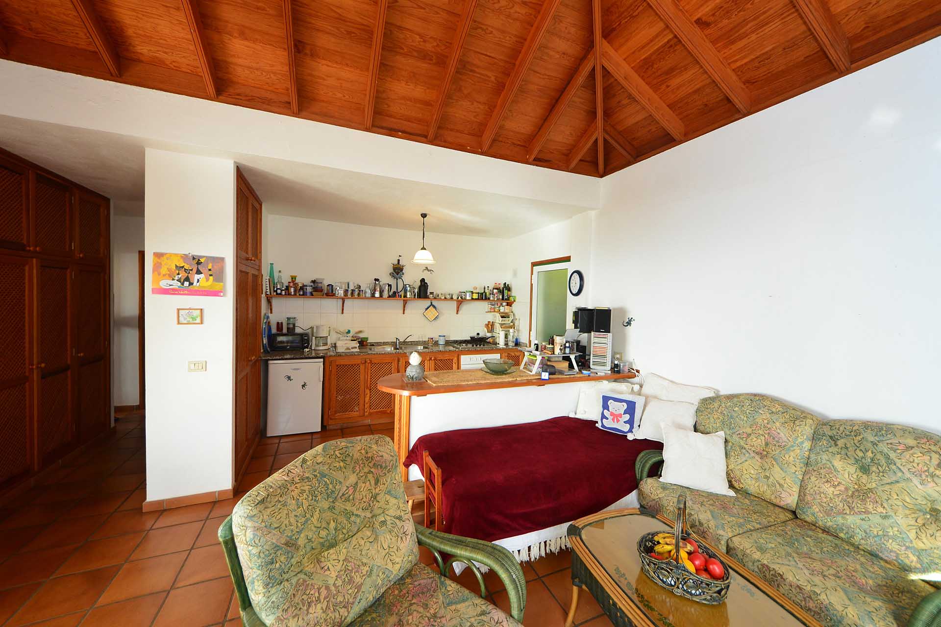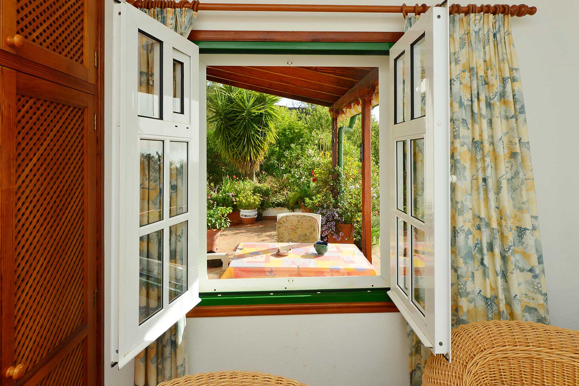 Der schön angelegte und gepflegte Garten bietet Obst und Gemüse sowie eine Vielzahl subtropischer Zierpflanzen und eine riesige kanarische Kiefer, die einen historischen Dreschplatz beschattet, der heute als Sonnenterrasse mit fantastischem Meerblick genutzt wird. Ebenso finden sich ein Gartenhäuschen für die Gartenwerkzeuge und ein Carport, so dass für alles gesorgt ist.