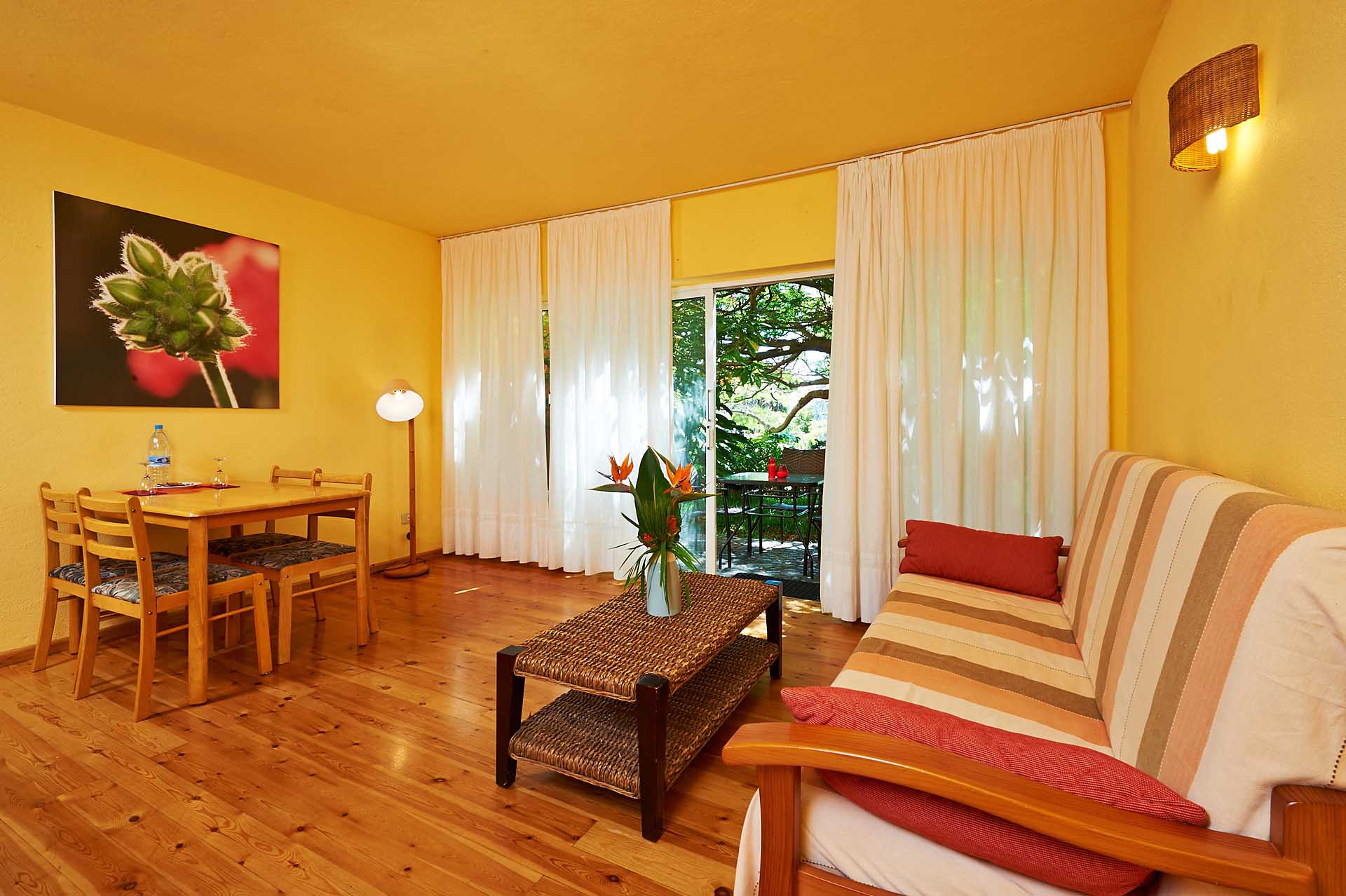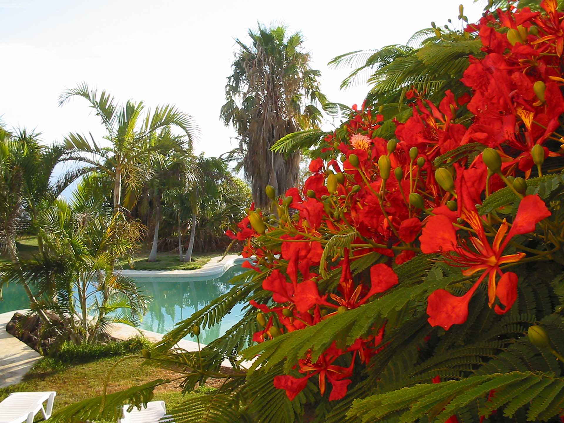 Die fünf Häuser mit insgesamt 14 Apartments wurden mit reichlich Platz in der Parkanlage verteilt, so dass der Gast Privatsphäre und absolute Ruhe in tropisch anmutender Umgebung genießen kann. Ein rund 150 m² großer, organisch geformter Pool lädt, eingebettet in sattgrüne Rasenflächen und umgeben von subtropischen, großen Bäumen und Palmen zur Abkühlung ein.