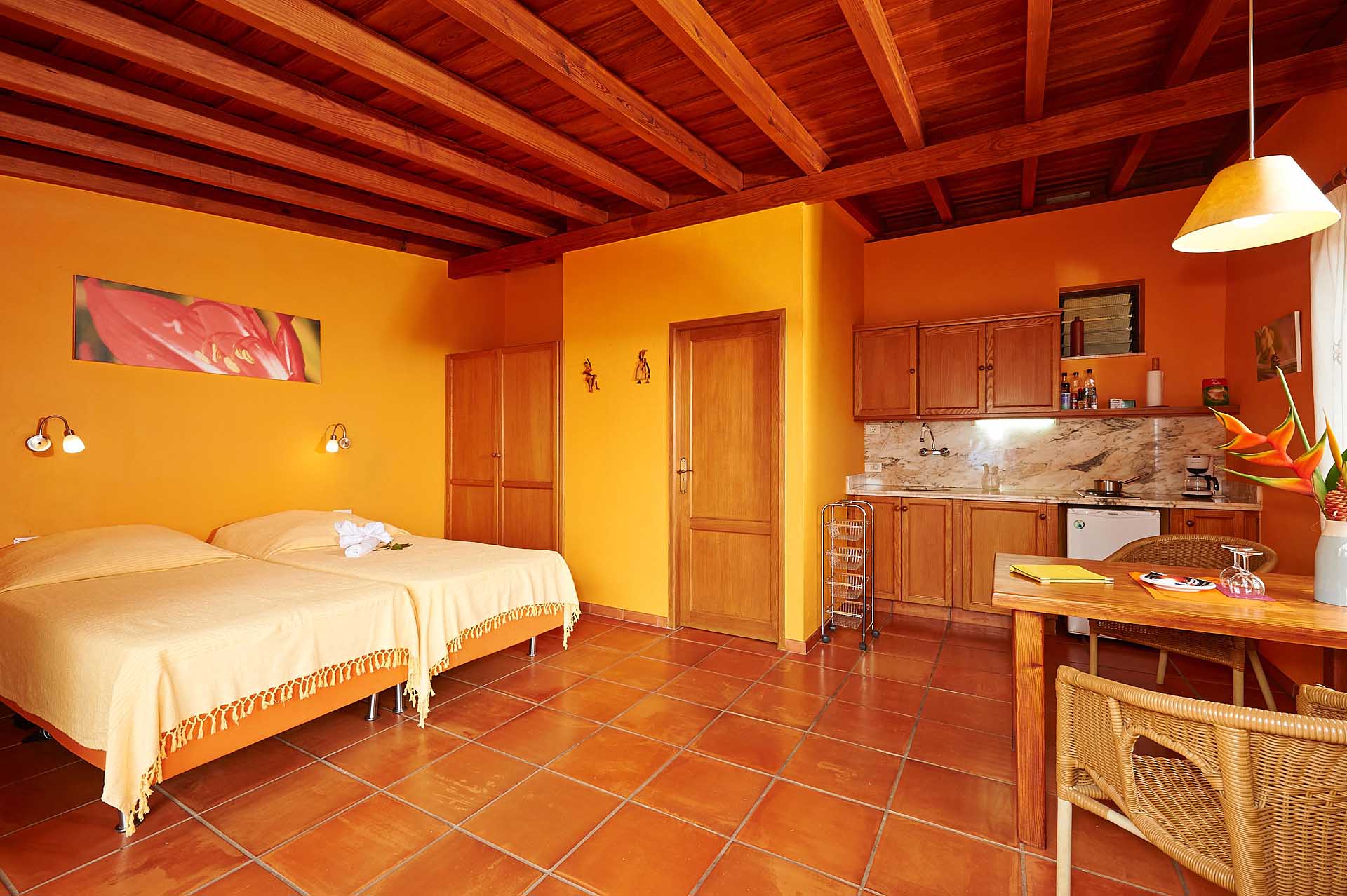 Diese Apartmentanlage für bis zu 29 Personen wird seit Jahrzehnten erfolgreich betrieben und befindet sich unterhalb von Las Norias auf einer Höhe von nur 150 m über dem Meer mit fantastischem Atlantikblick inmitten eines prächtigen botanischen Gartens.